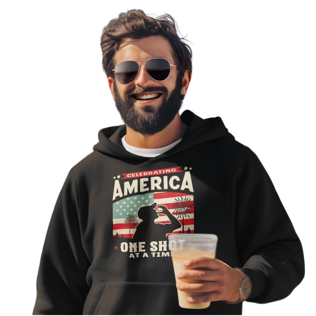 Celebrating America One Shot at a Time 4th of July Hoodie