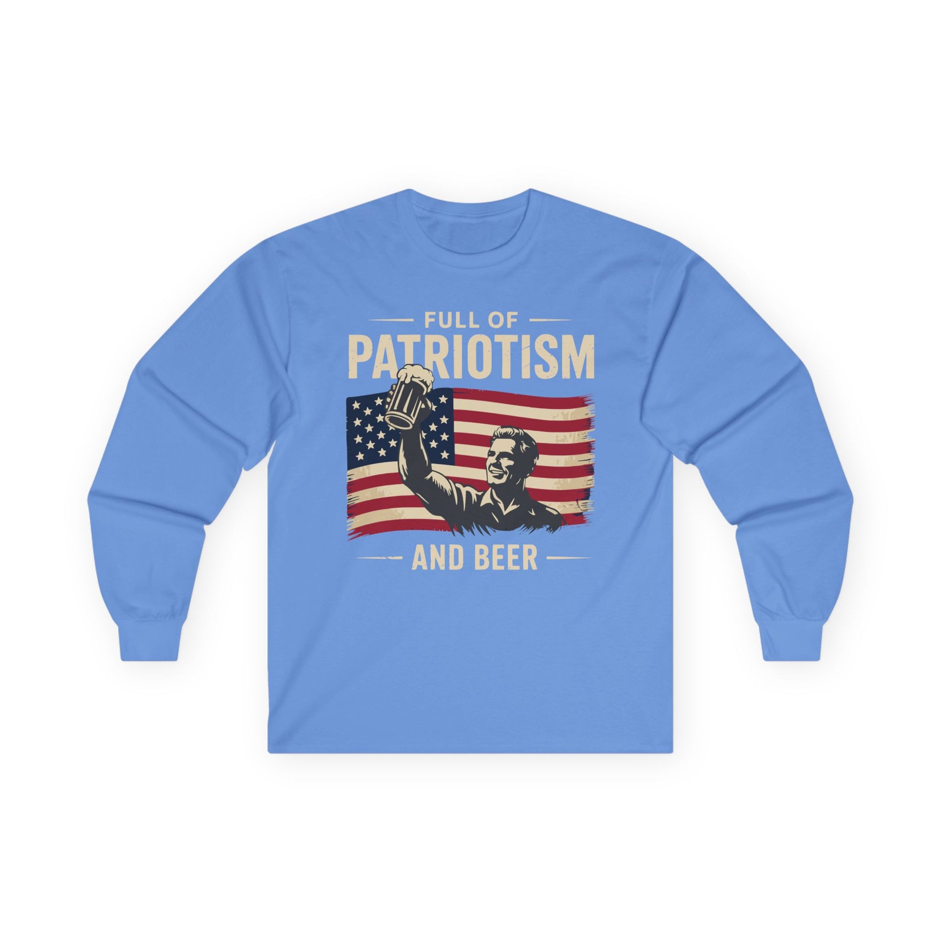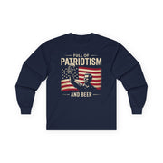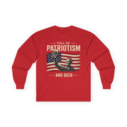 4th of July – Full of Patriotism and Beer – Patriotic Heavy Cotton Long Sleeve Tee