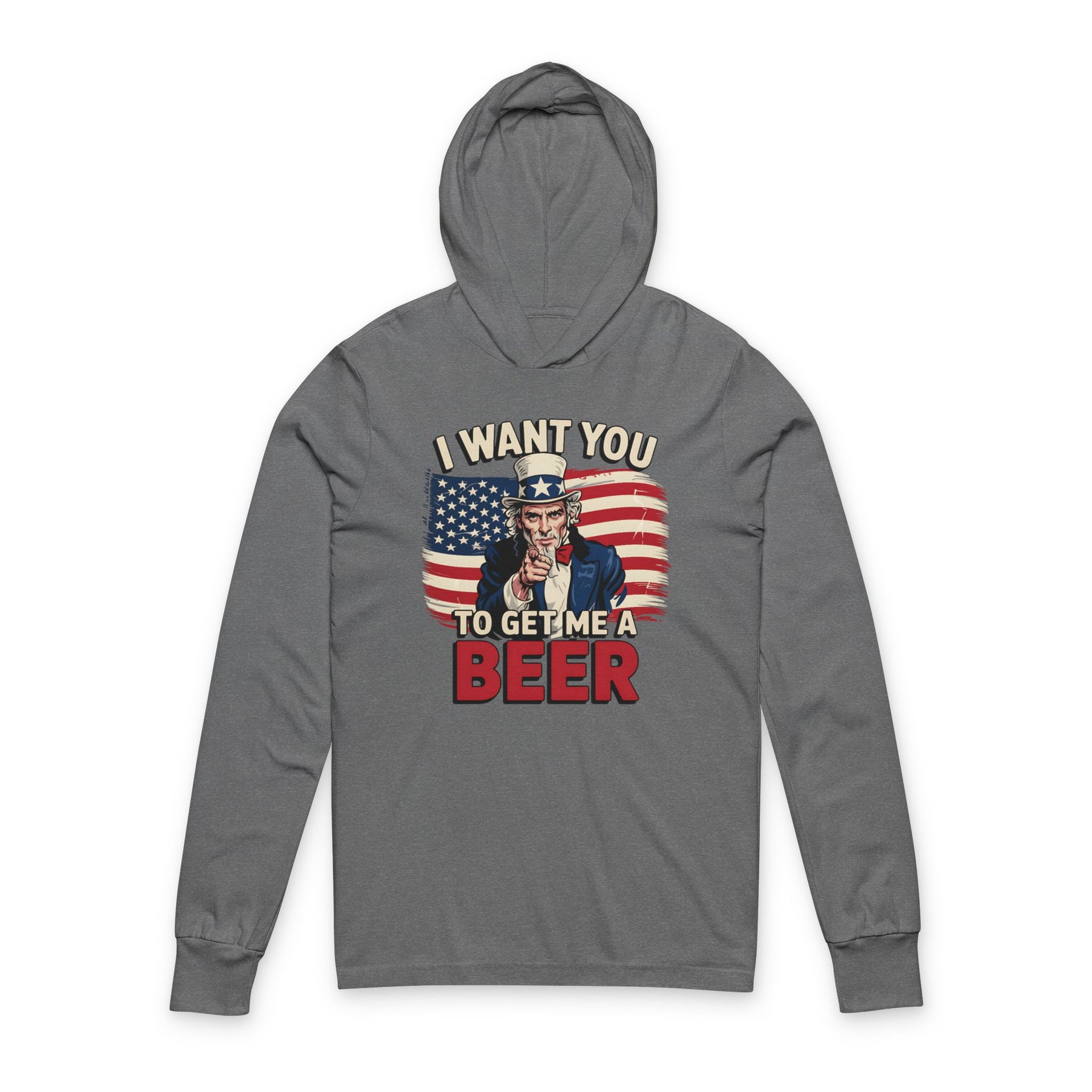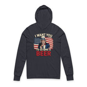 4th of July β I Want You to Get Me a Beer β Patriotic Soft Cotton Jersey Hooded Long-Sleeve Tee