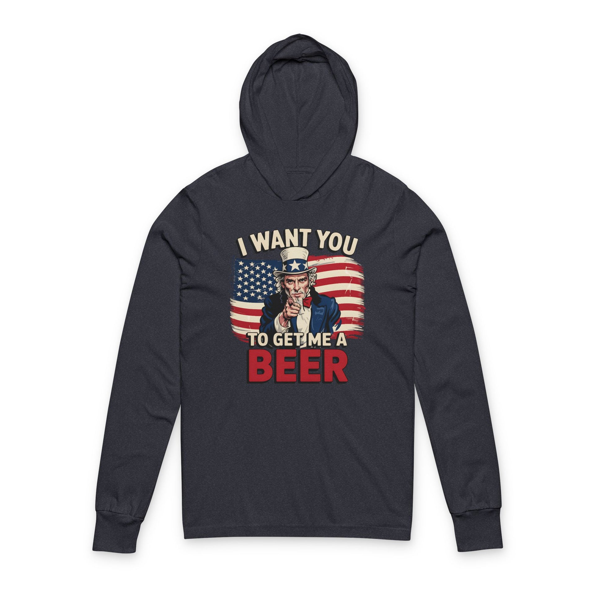Celebrate Independence Day in a lightweight hooded long-sleeve tee featuring bold Uncle Sam pointing and the phrase I Want You to Get Me a Beer. Crafted for easy layering and lasting comfort, itβs your go-to for fireworks, cook-outs, and late-night bonfires.