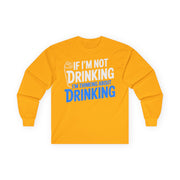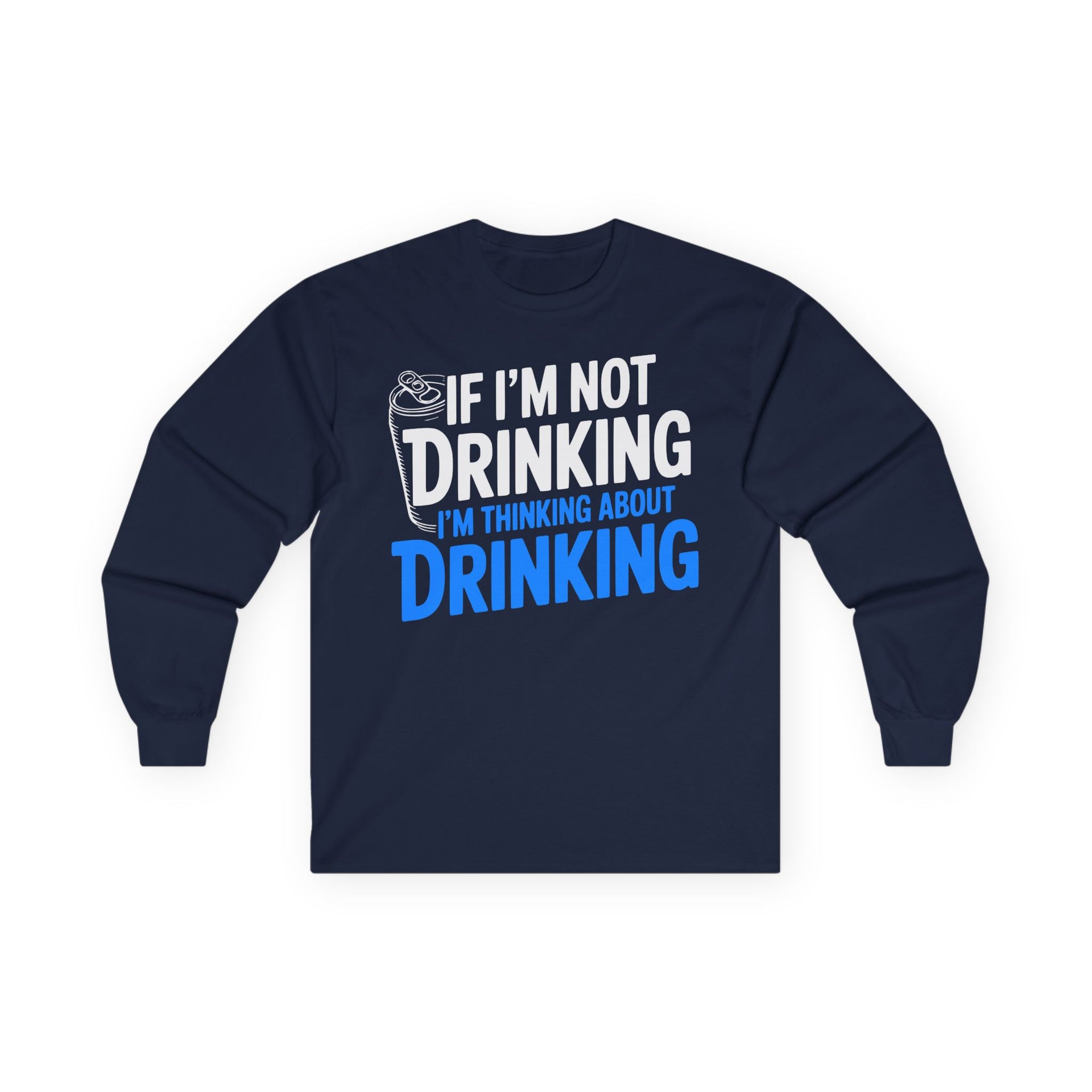 Set the tone this Independence Day with bold typography proclaiming If Im Not Drinking Im Thinking About Drinking on a heavyweight long-sleeve tee built for structure and durability.