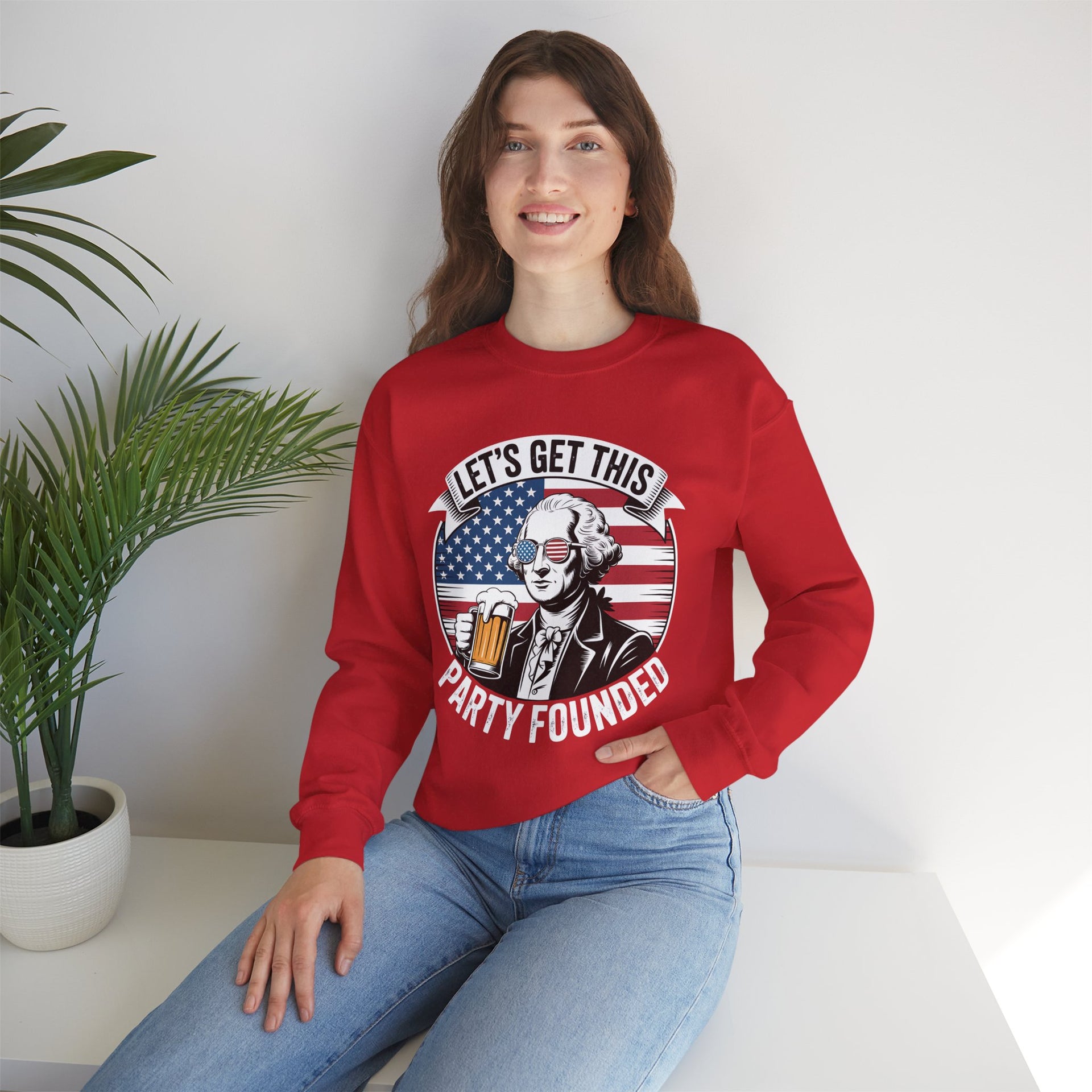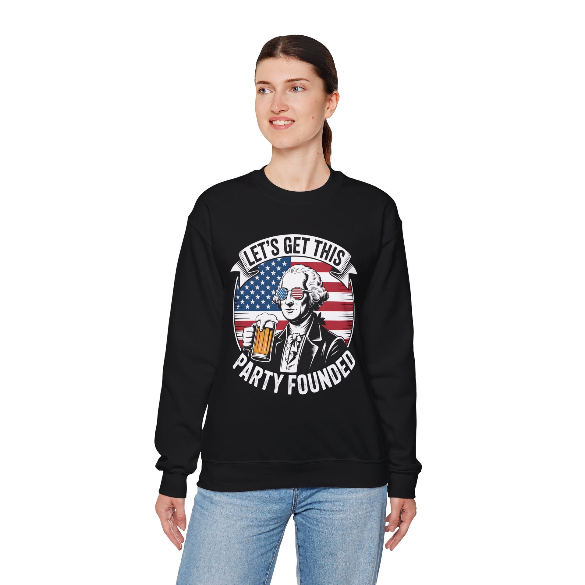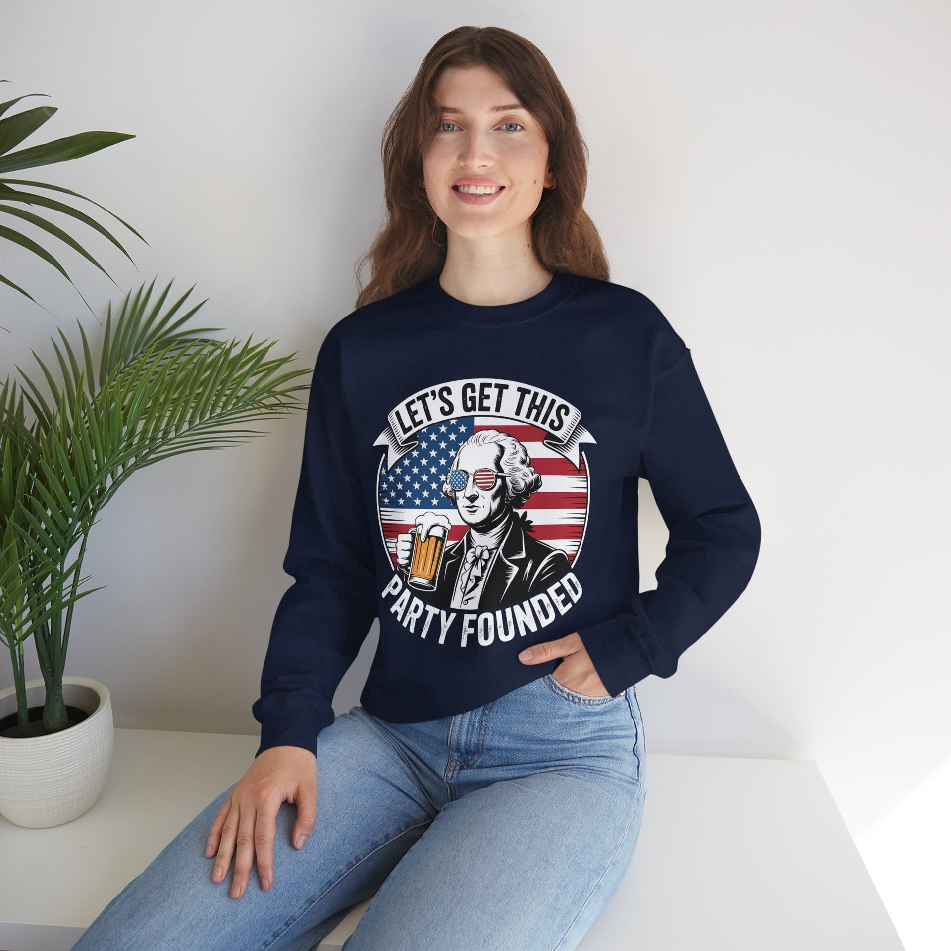 4th of July β Lets Get This Party Founded β Patriotic Soft Cotton Blend Sweatshirt