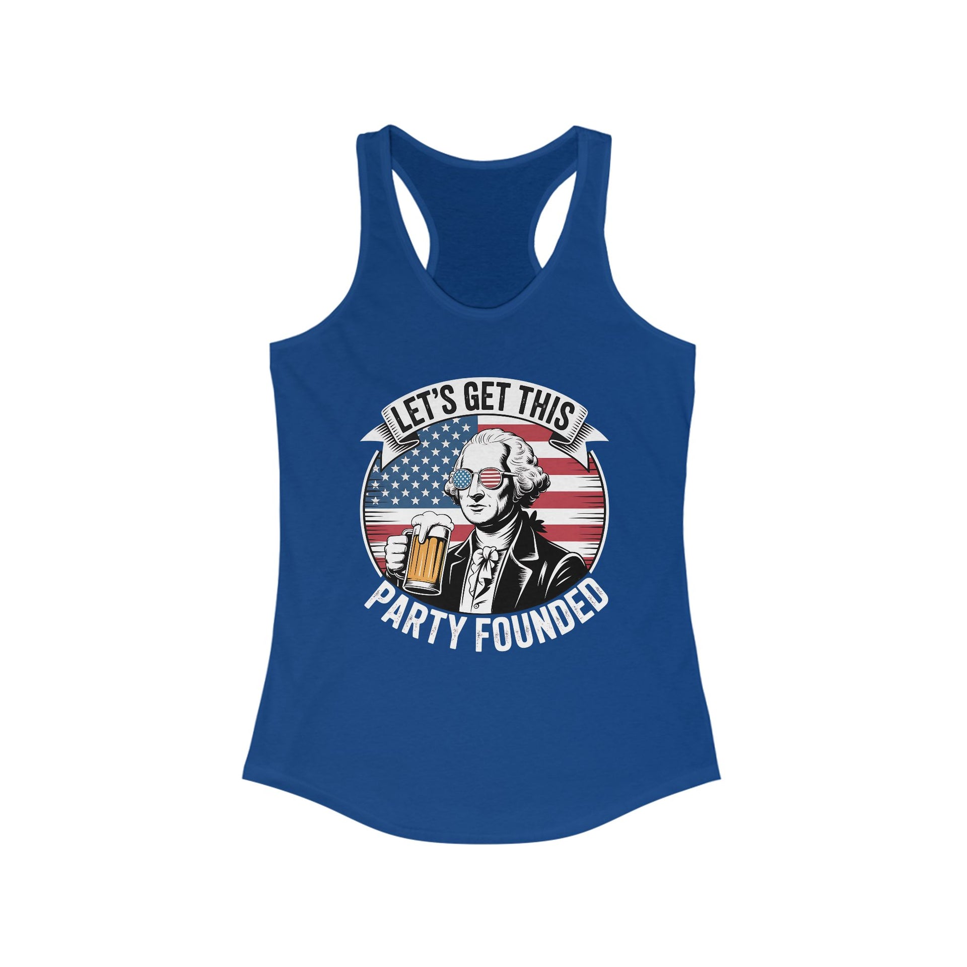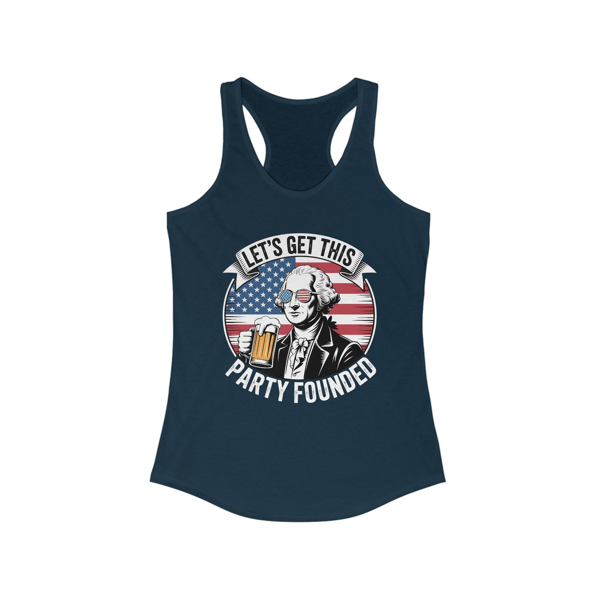 4th of July – Lets Get This Party Founded – Patriotic Soft Racerback Tank Top