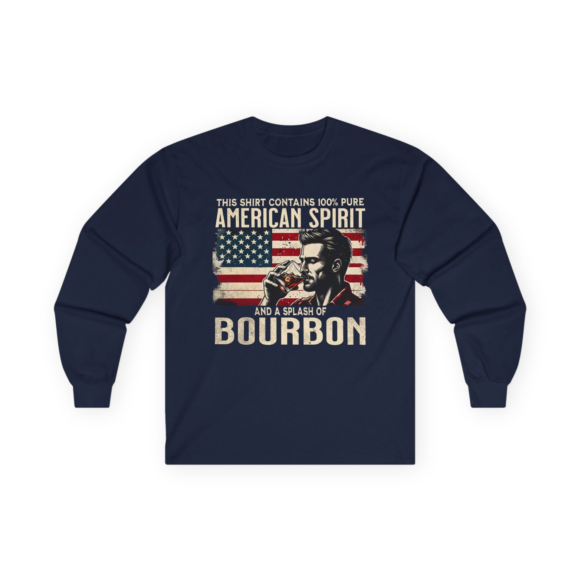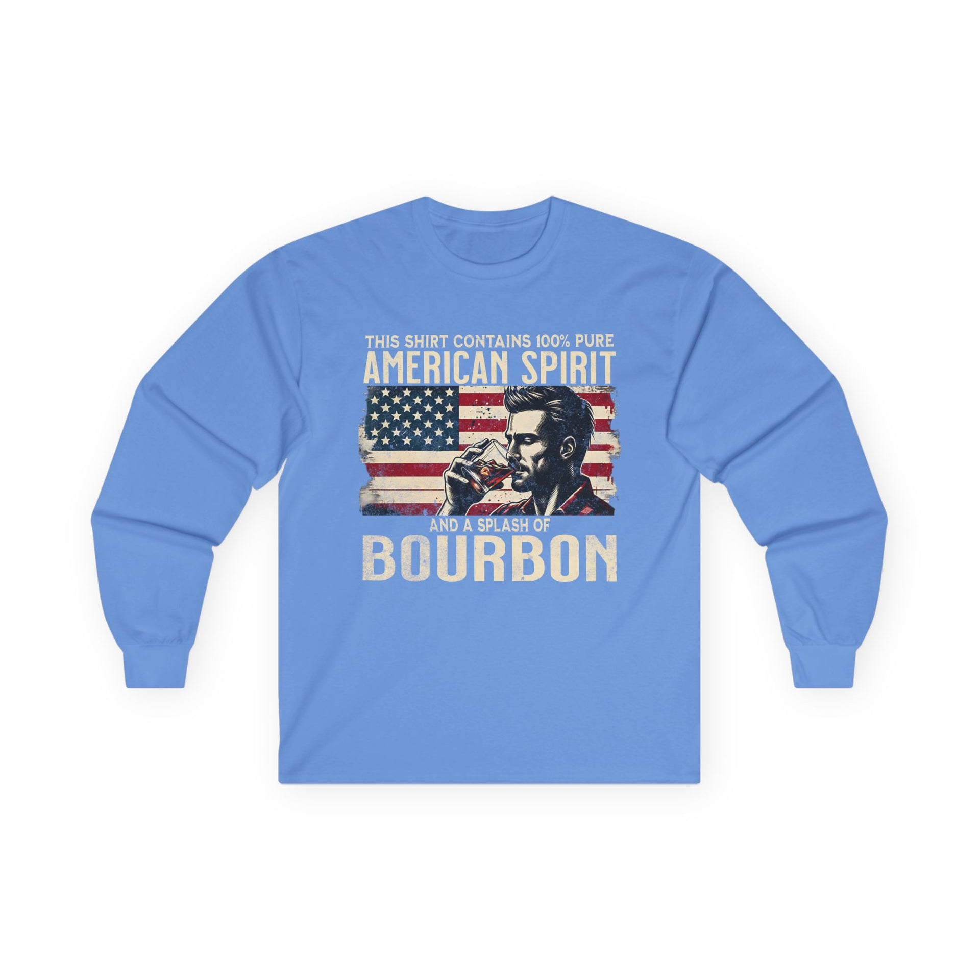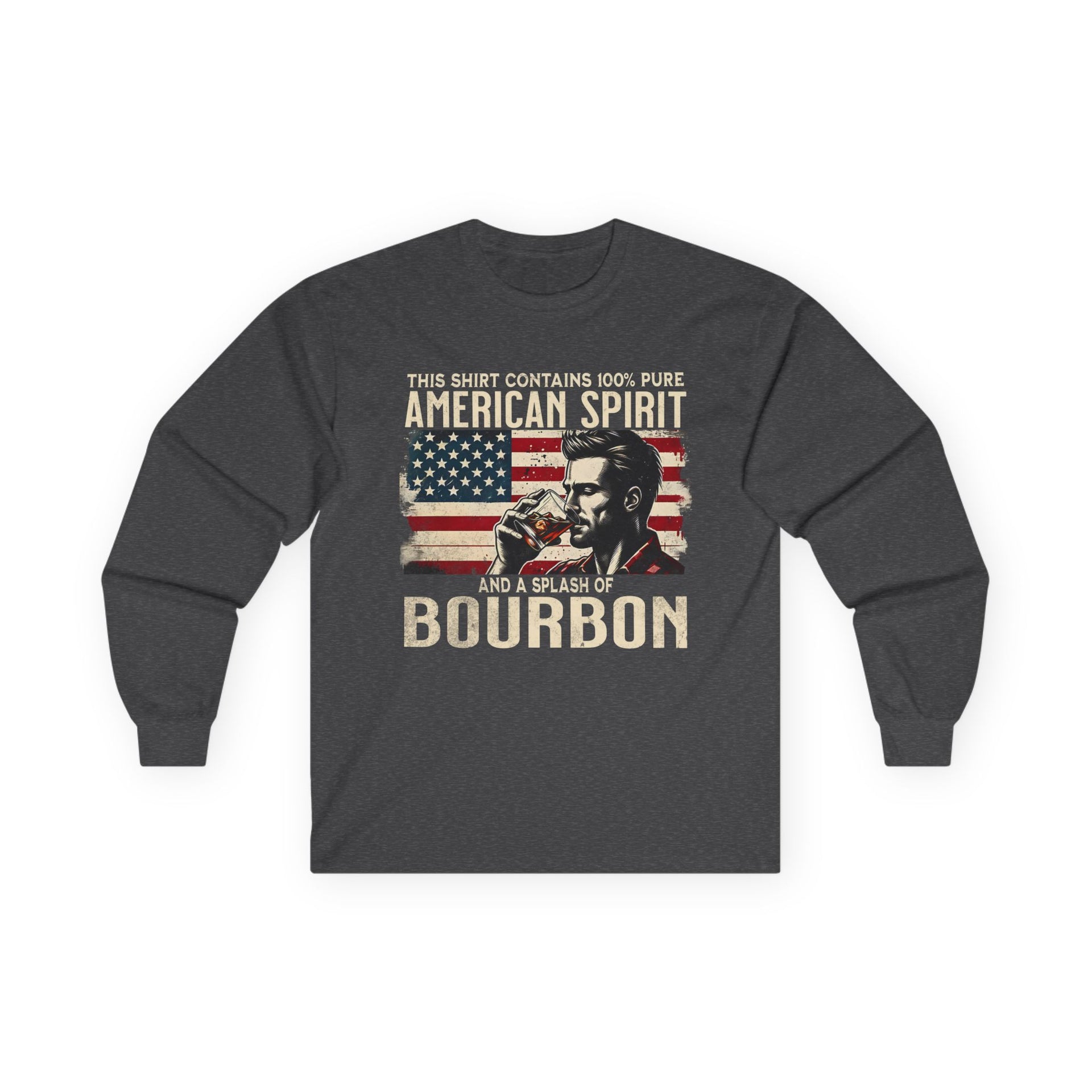 4th of July β This Shirt Contains 100% American Spirit and a Splash of Bourbon β Patriotic Heavy Cotton Long Sleeve Tee