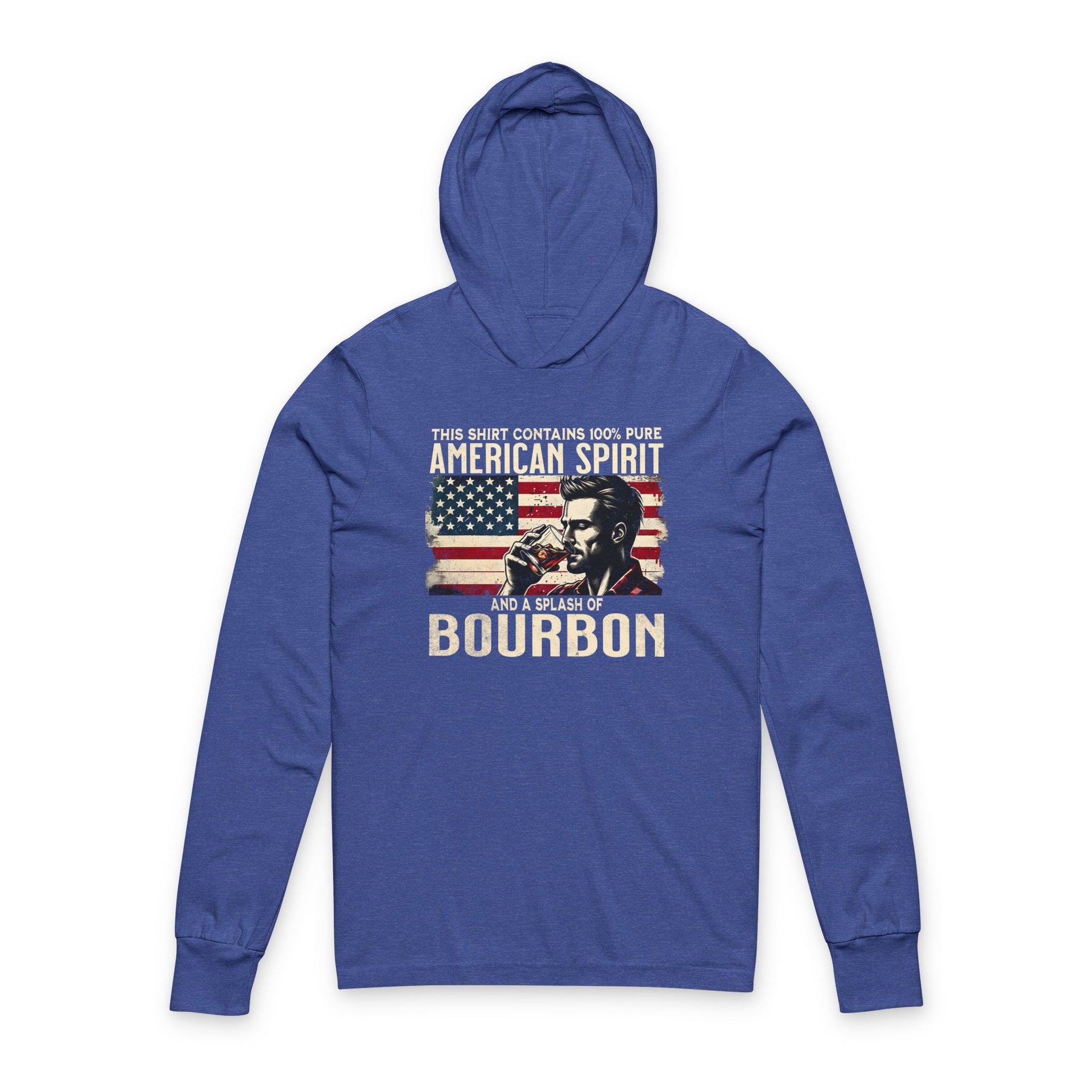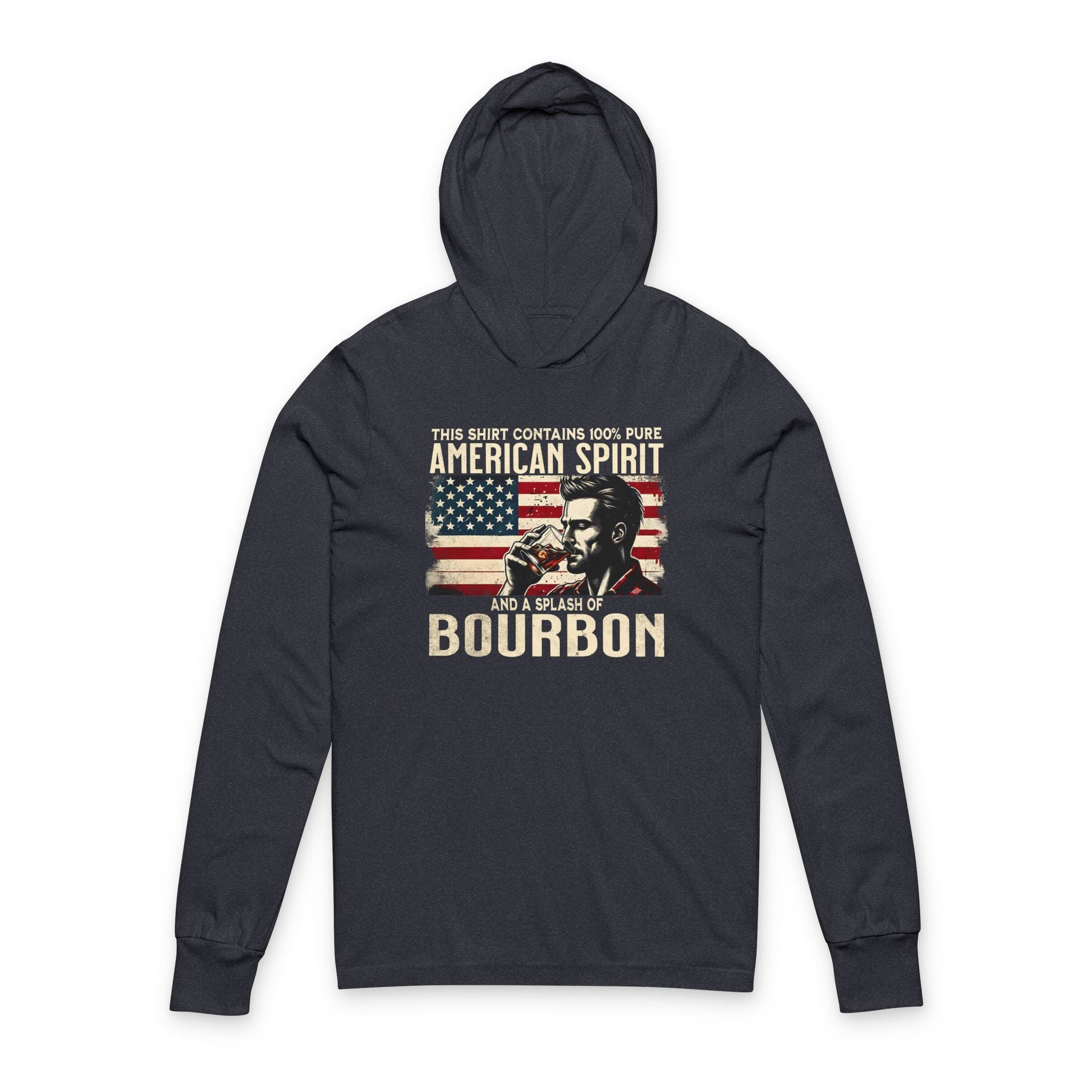 4th of July β This Shirt Contains 100% American Spirit and a Splash of Bourbon β Patriotic Soft Jersey Hooded Long-Sleeve Tee