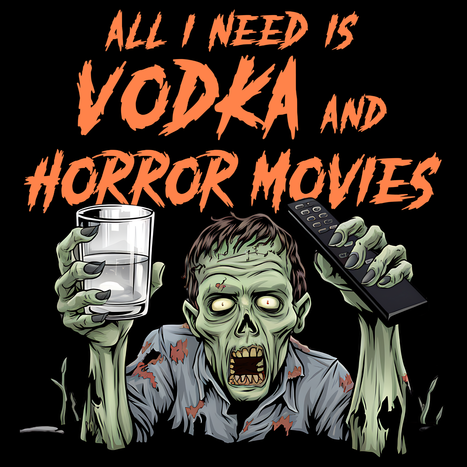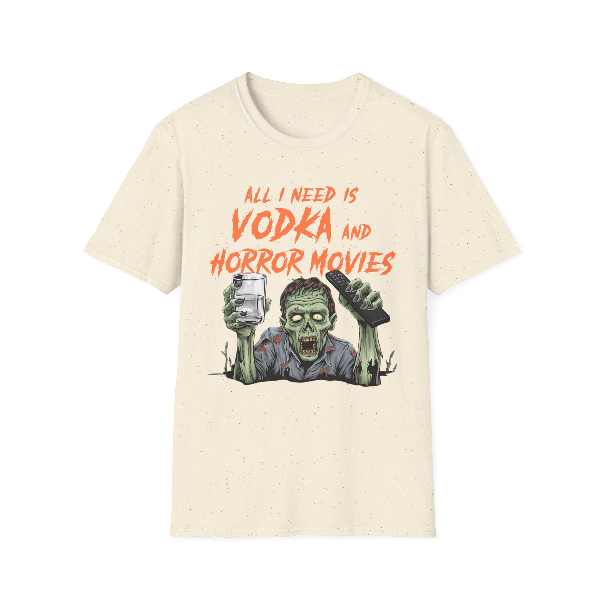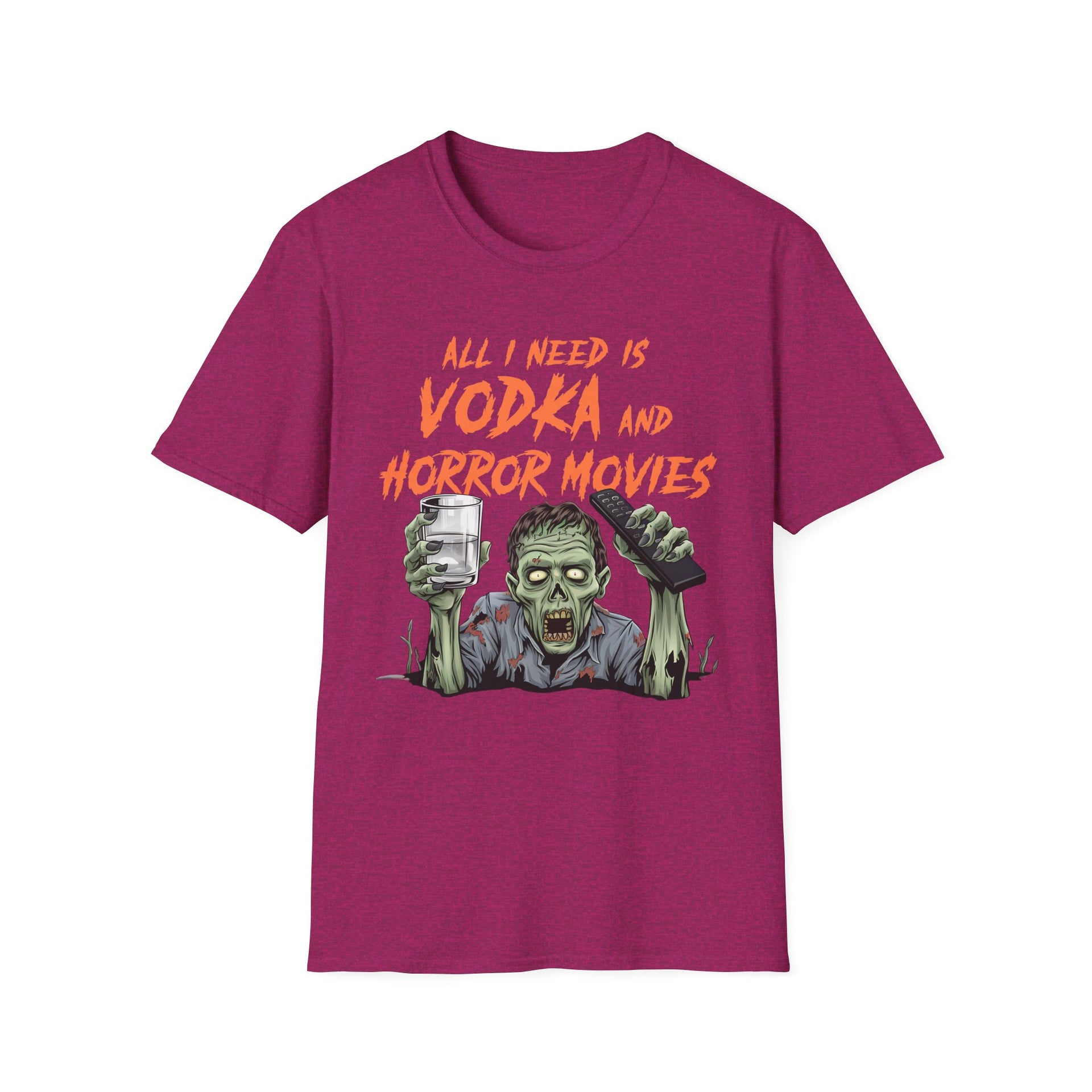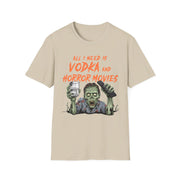 Get ready for a frightfully good time with this Halloween tee—because all you need is vodka and horror movies!