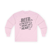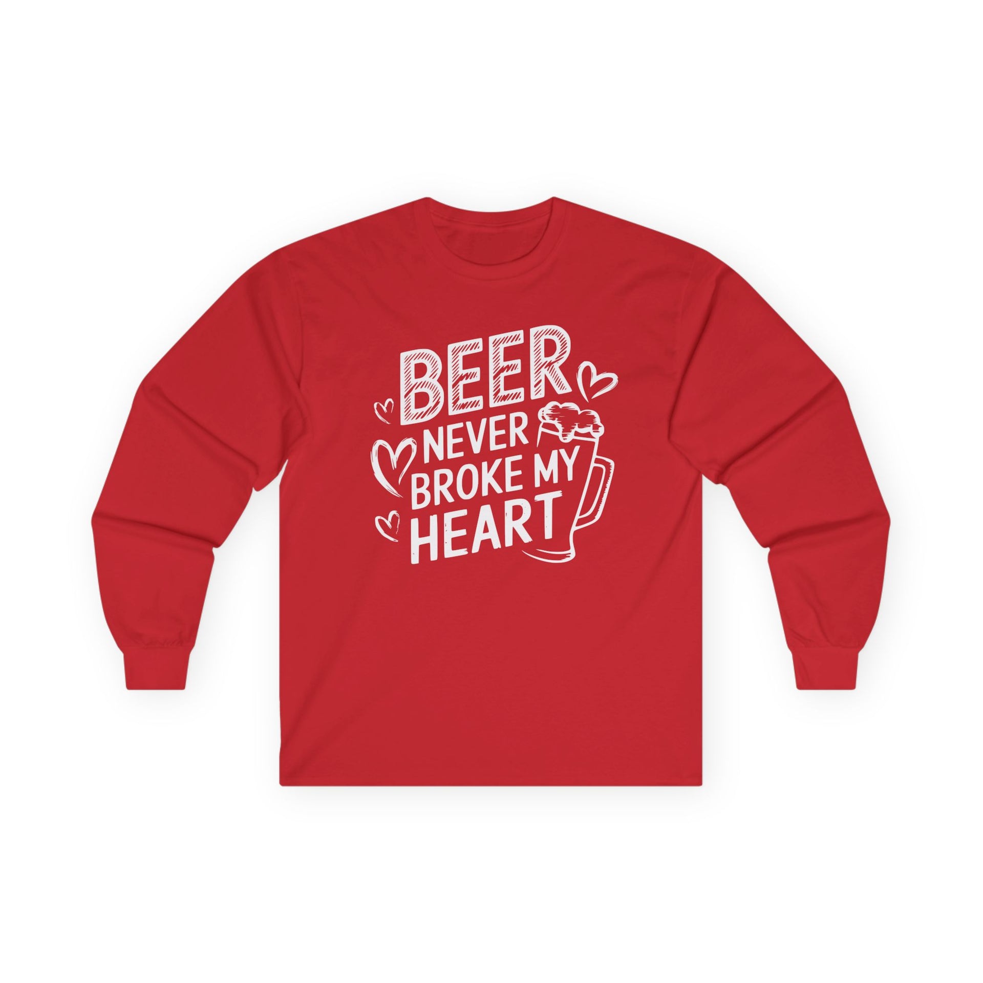 Beer Never Broke My Heart Funny Valentine’s Long-Sleeve Shirt - Perfect Gift for Beer Lovers
