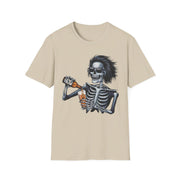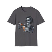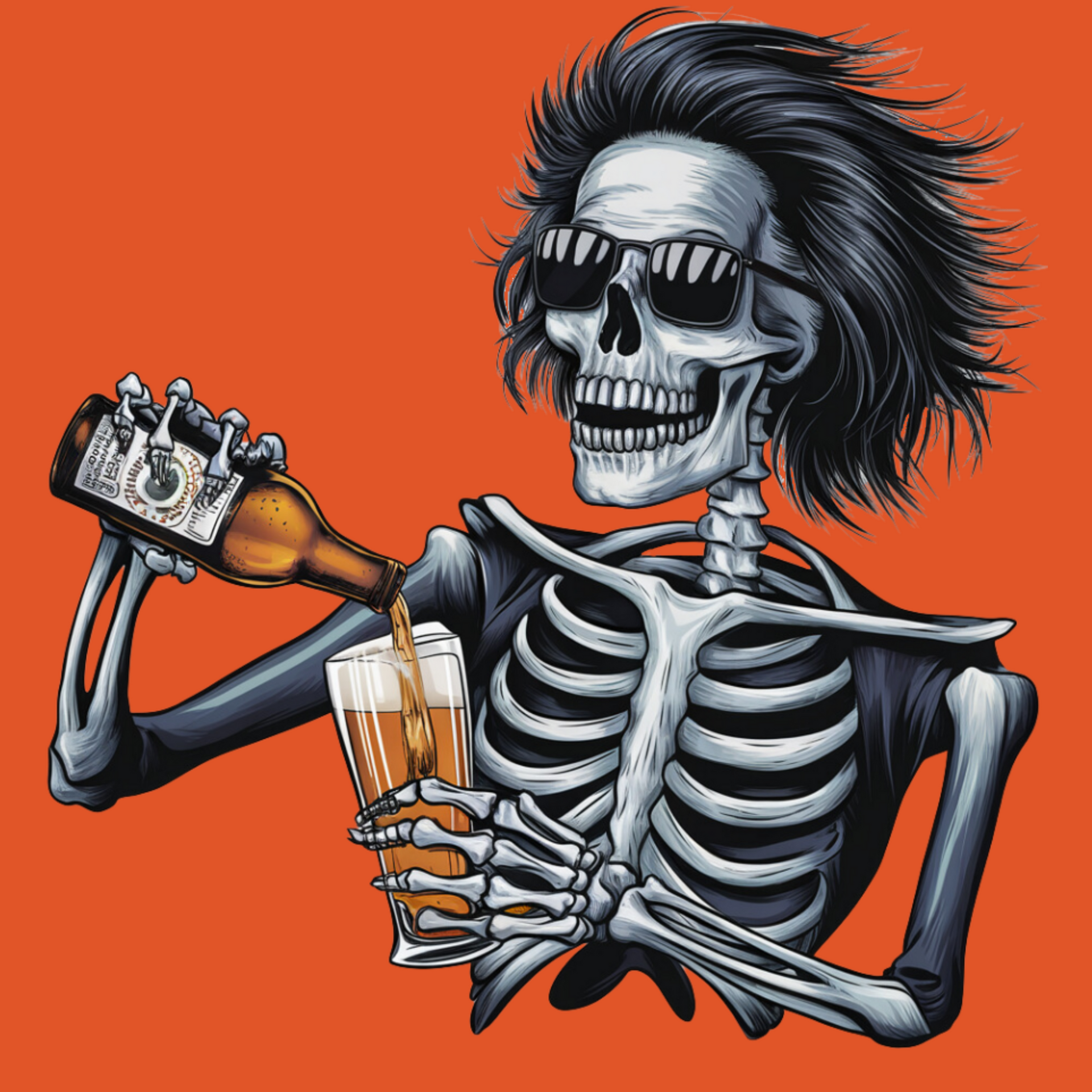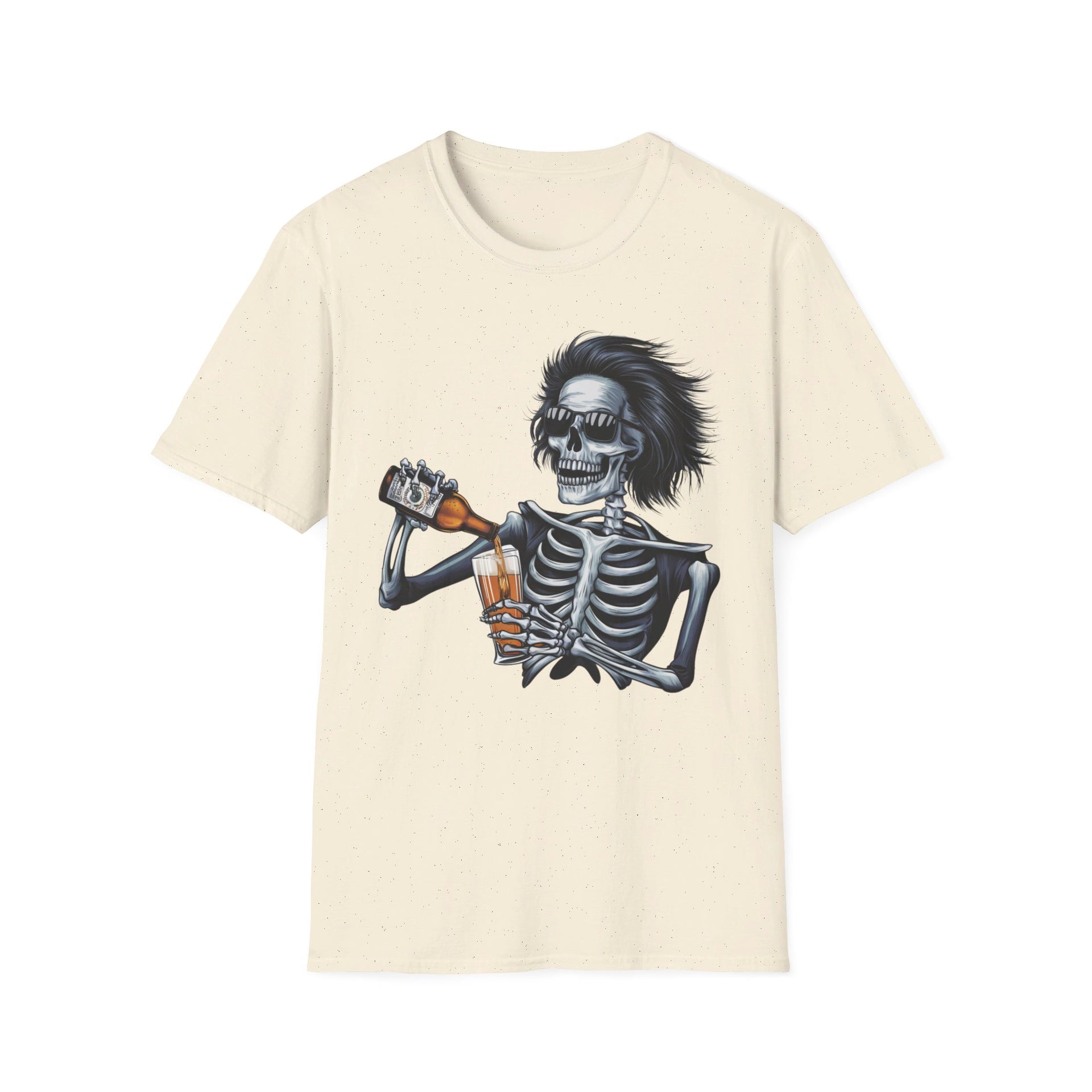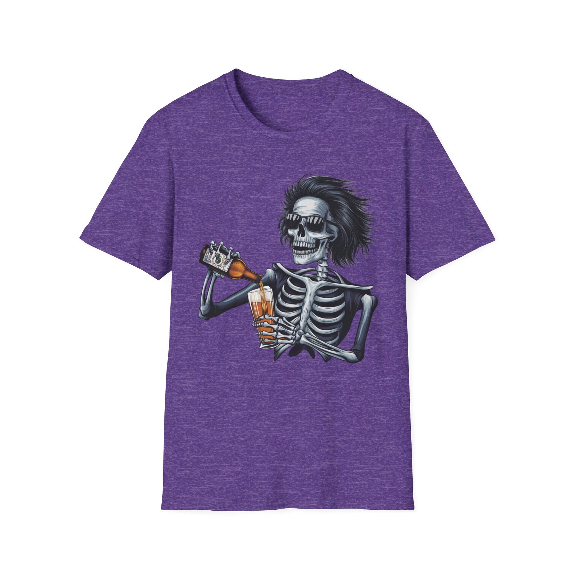 Embrace the chill vibes of Halloween with this cool skeleton tee—perfect for those who like their style laid-back and their beer cold.