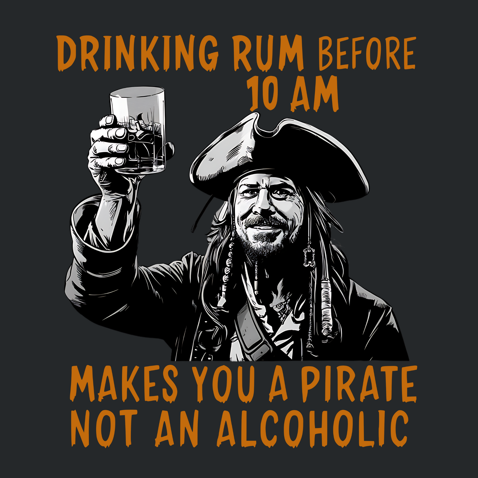 Embrace your inner pirate with our "Drinking Rum Before 10 AM Makes You a Pirate, Not an Alcoholic" t-shirt! Perfect for those who enjoy a cheeky sense of humor and a love for rum, this fun and bold design is sure to be a hit at Halloween parties, beach days, or any casual gathering. The playful phrase adds a dash of rebellious charm, making it an ideal choice for anyone who likes to start the day with a bit of adventure (and a splash of rum). Whether you're sailing the high seas or just enjoying some early morning fun, this tee is your go-to for a laugh and a good time.