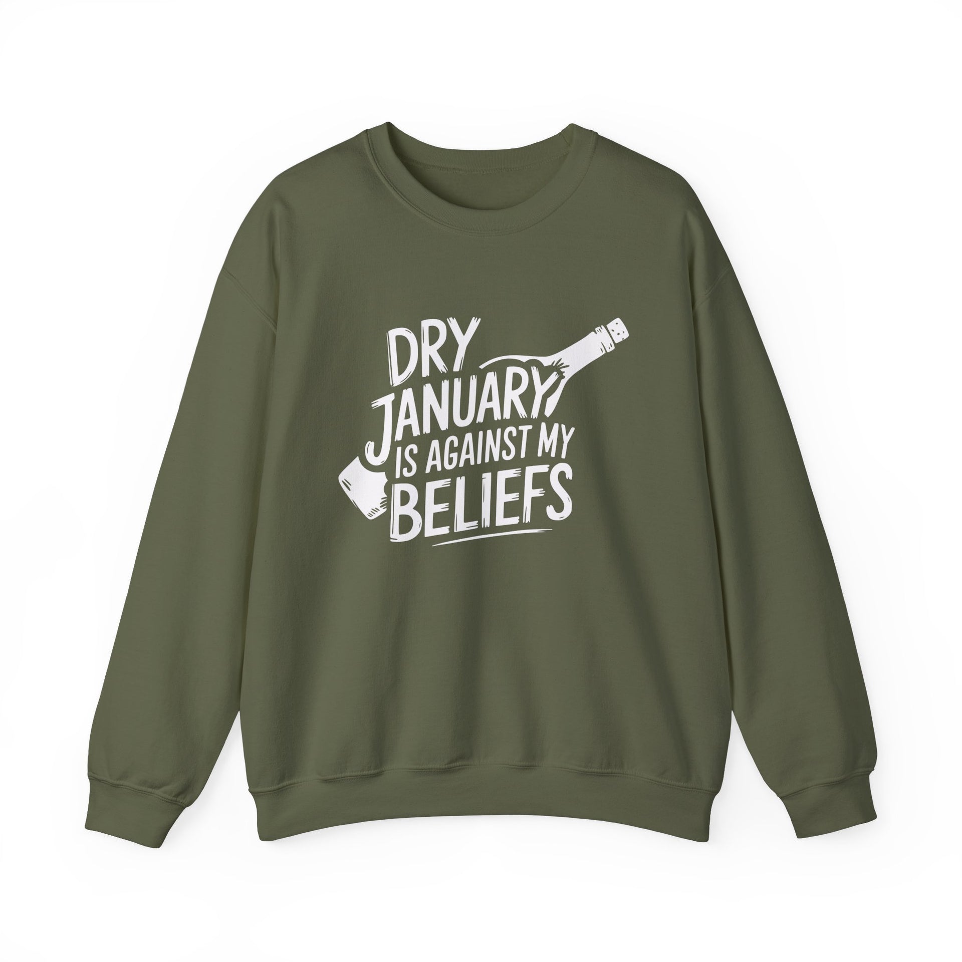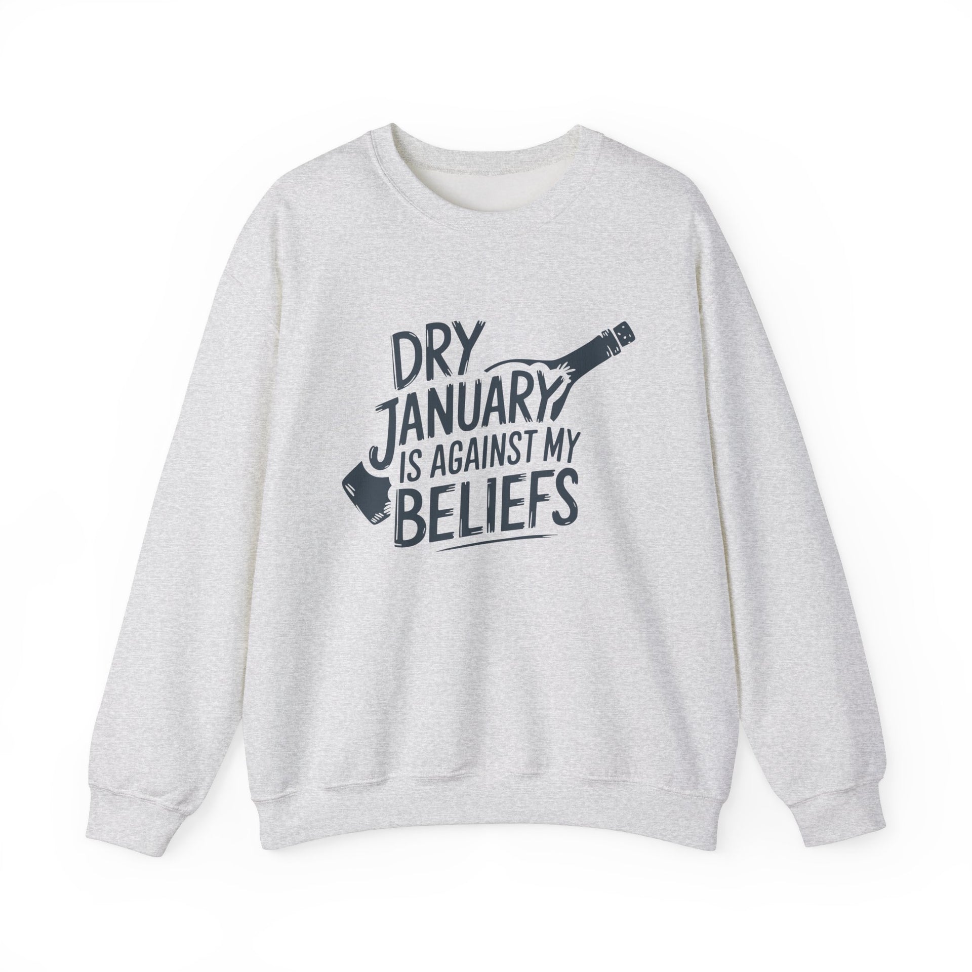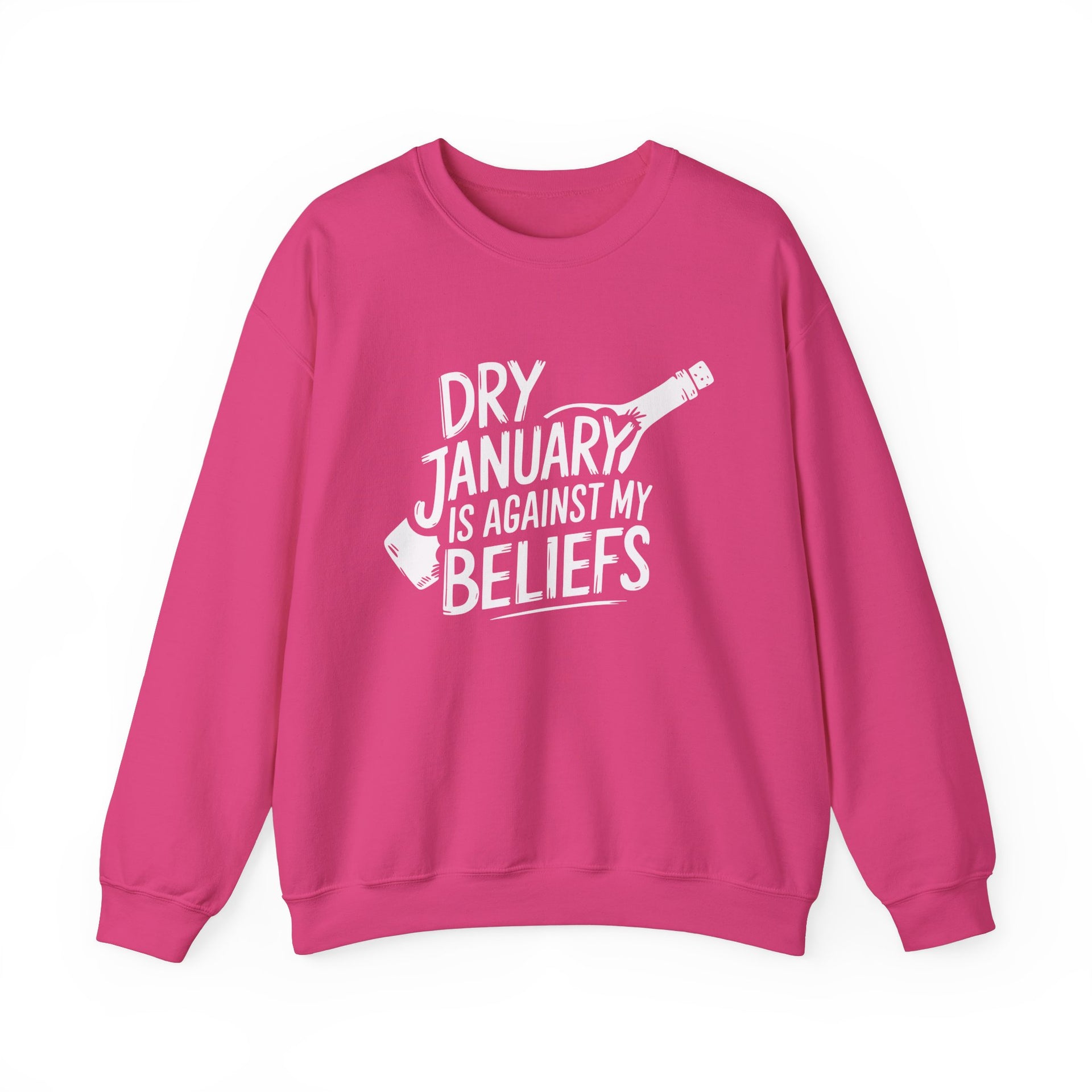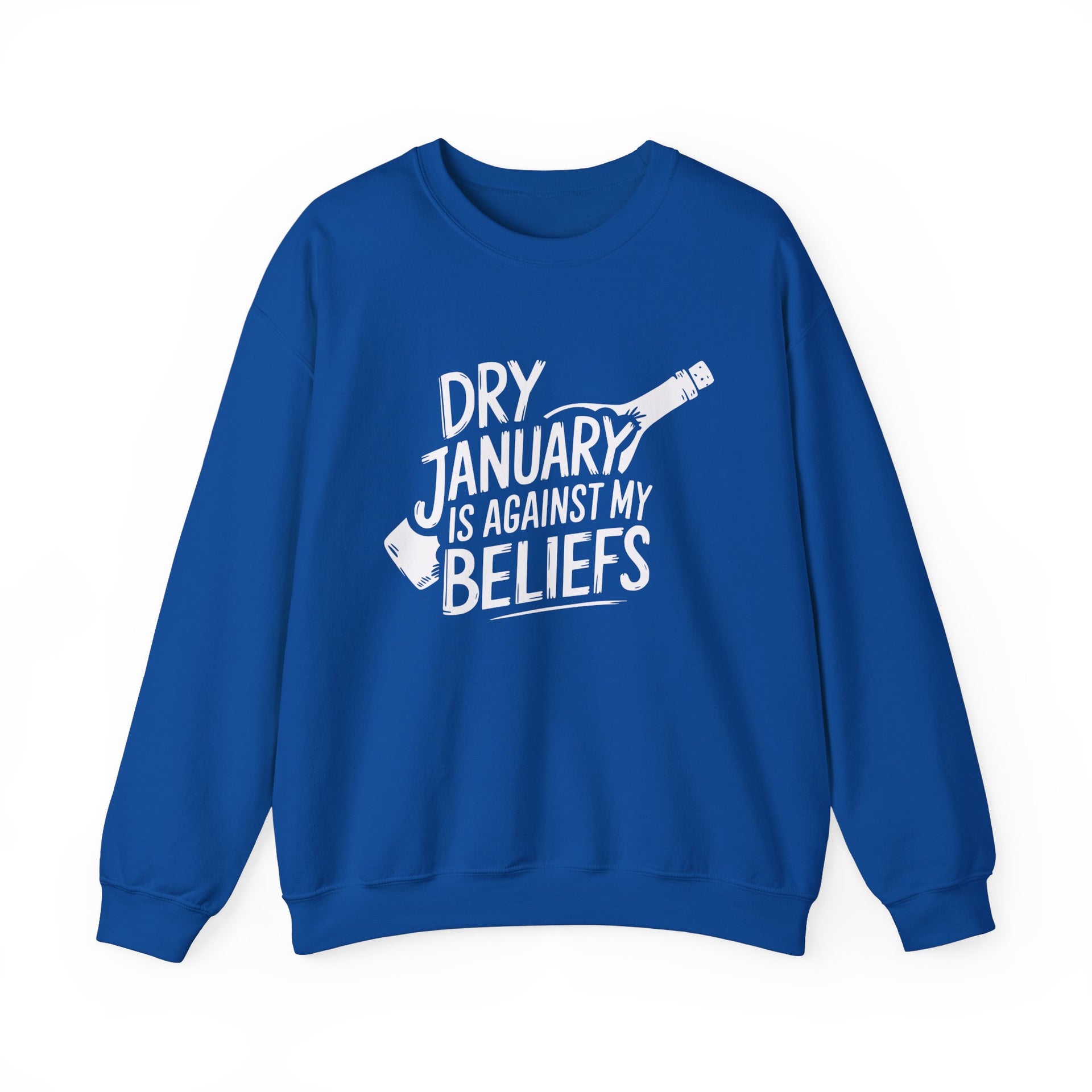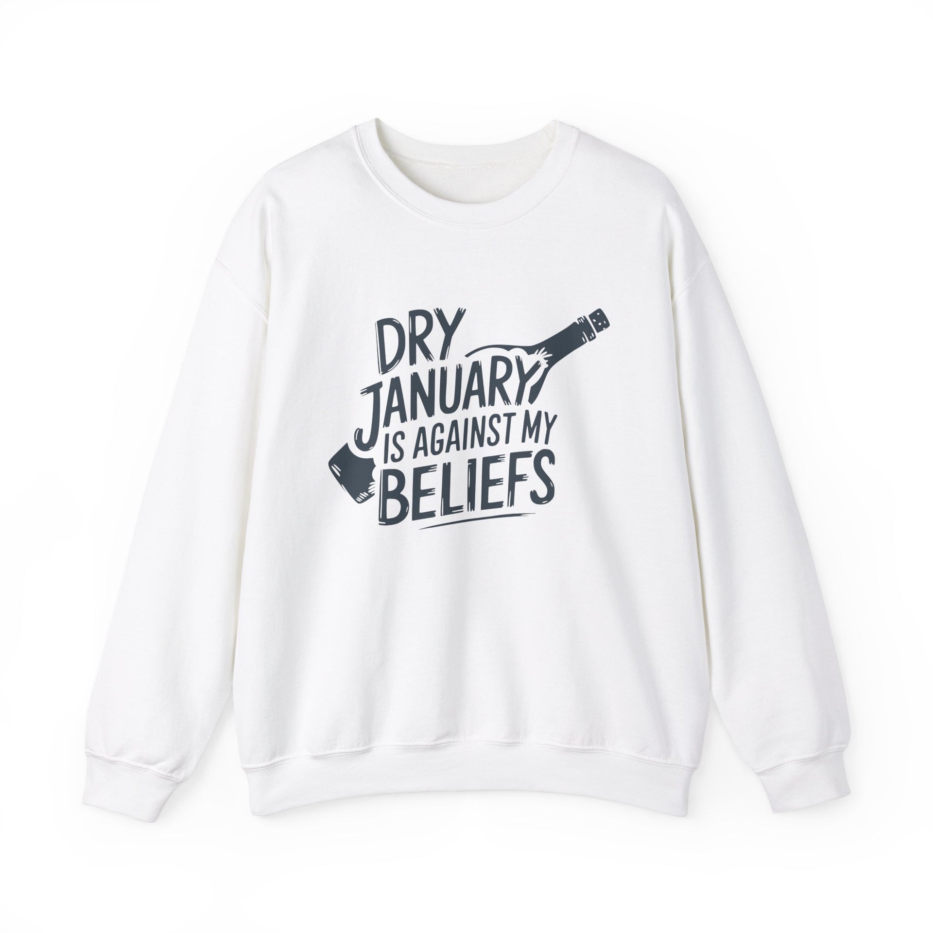 Dry January Is Against My Beliefs Funny Sweatshirt - Humor Pullover for Wine and Bourbon Lovers, Sarcastic Drinking Apparel