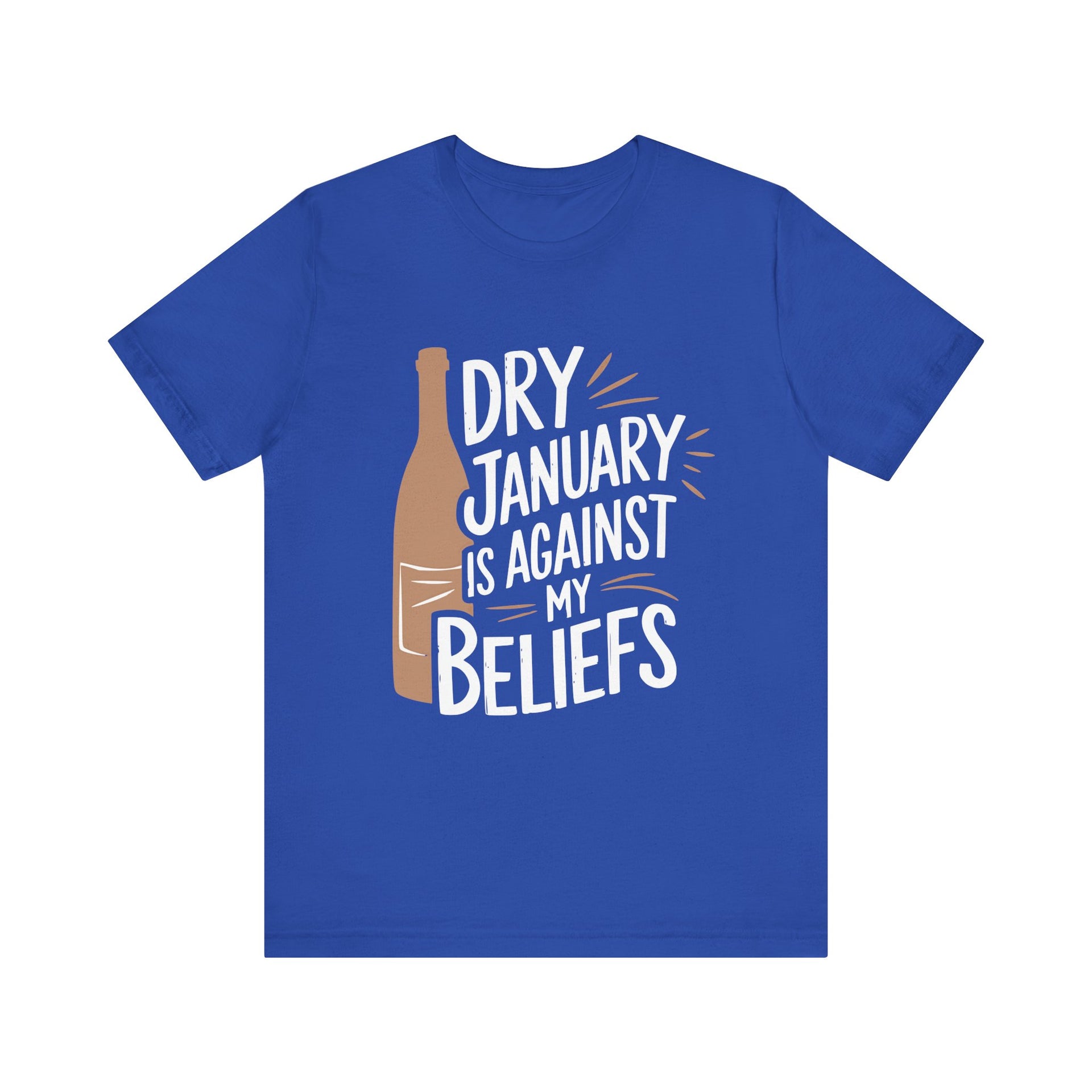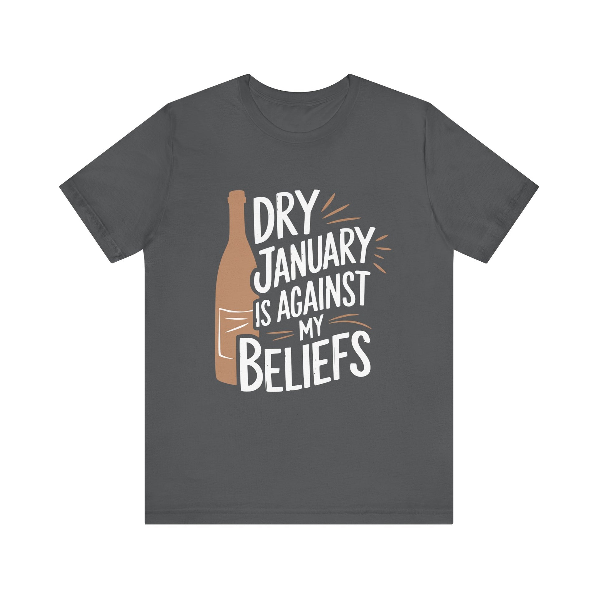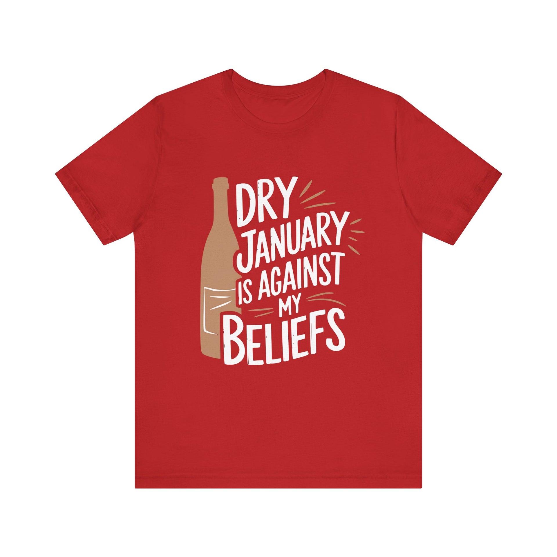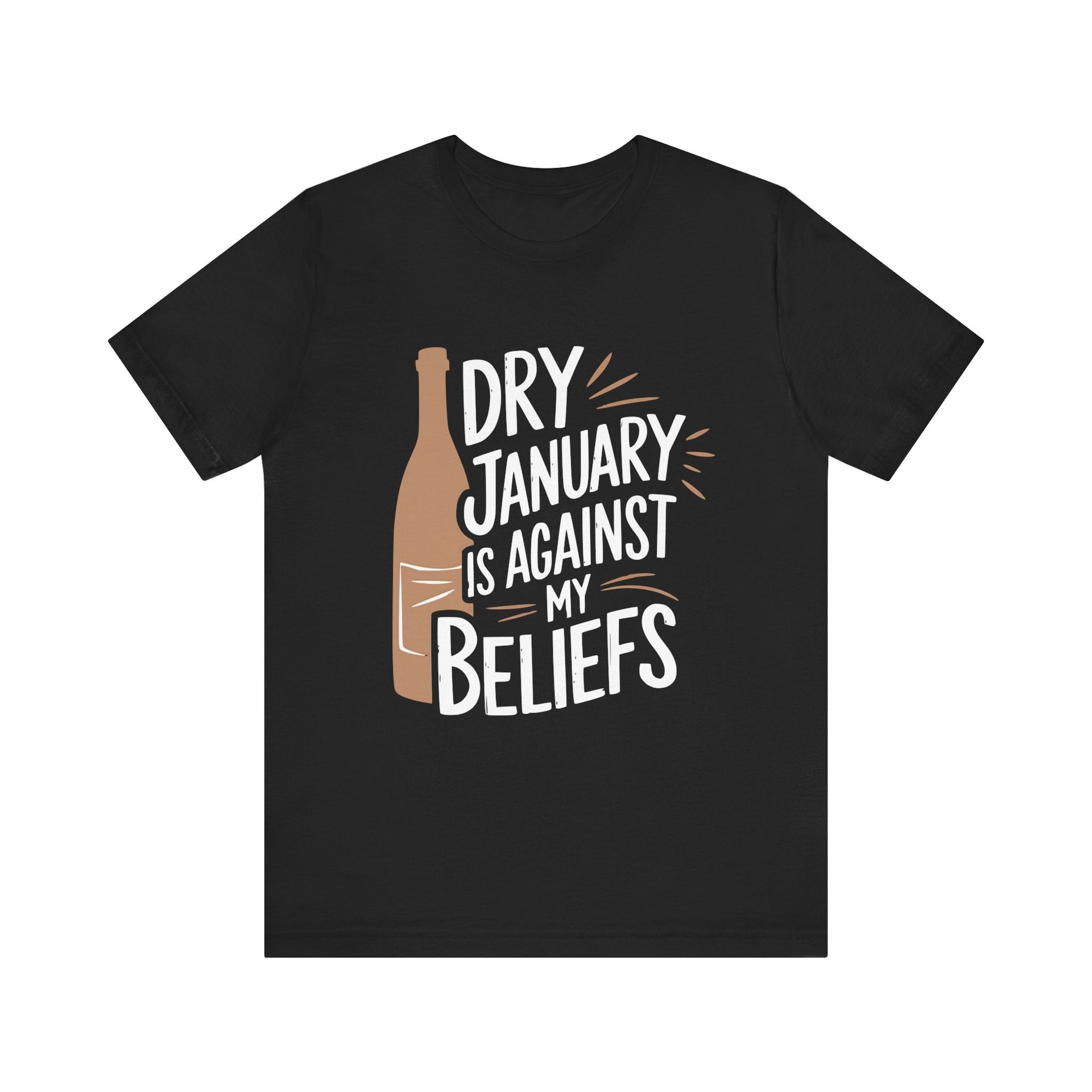 Dry January Is Against My Beliefs Funny T-Shirt - Drinking Humor Tee, Wine and Beer Lover Apparel, Gift for Beverage Enthusiasts
