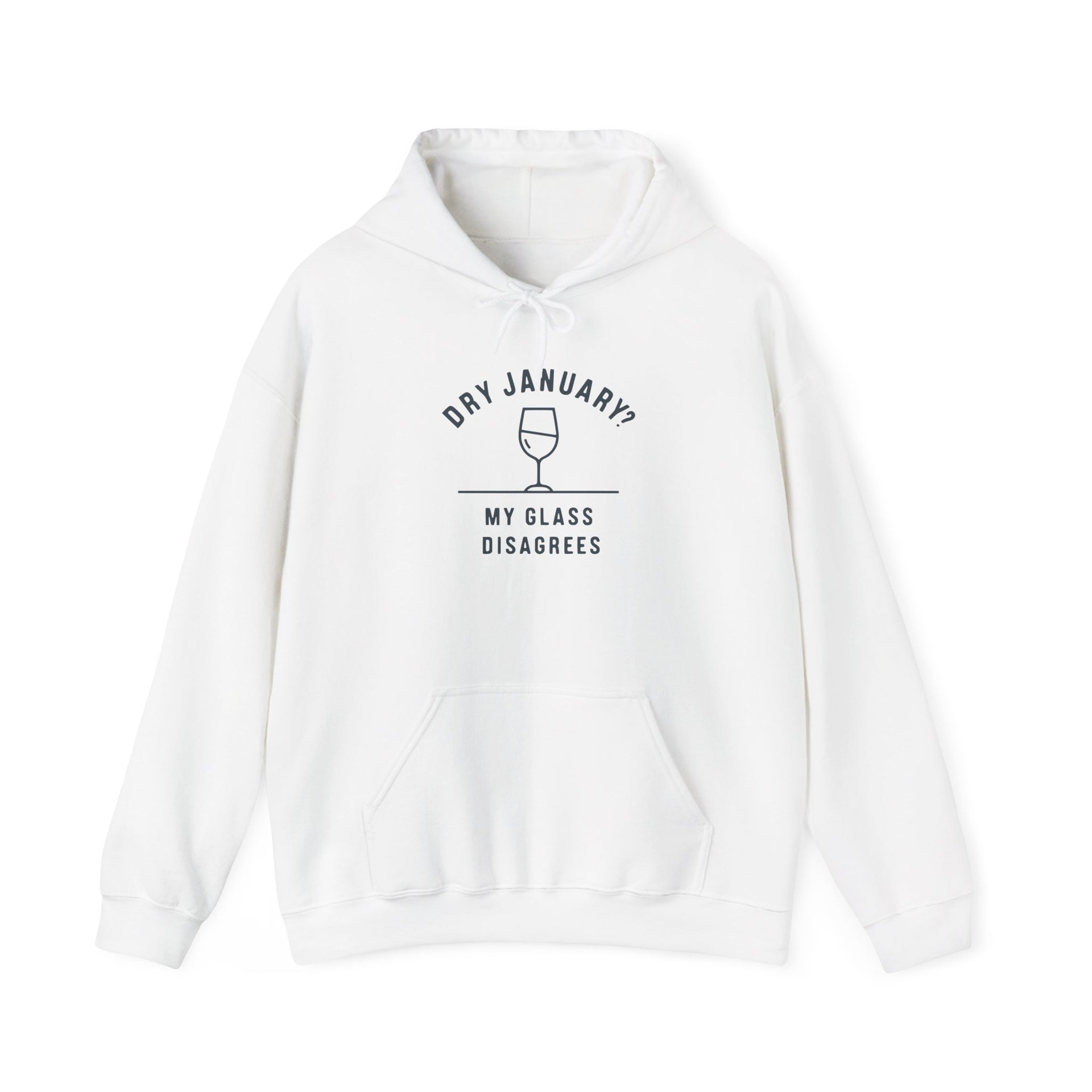 Dry January? My Glass Disagrees Funny Hoodie - Wine Lover Sweatshirt, Drinking Humor Pullover, Sarcastic Gift for Wine Enthusiasts