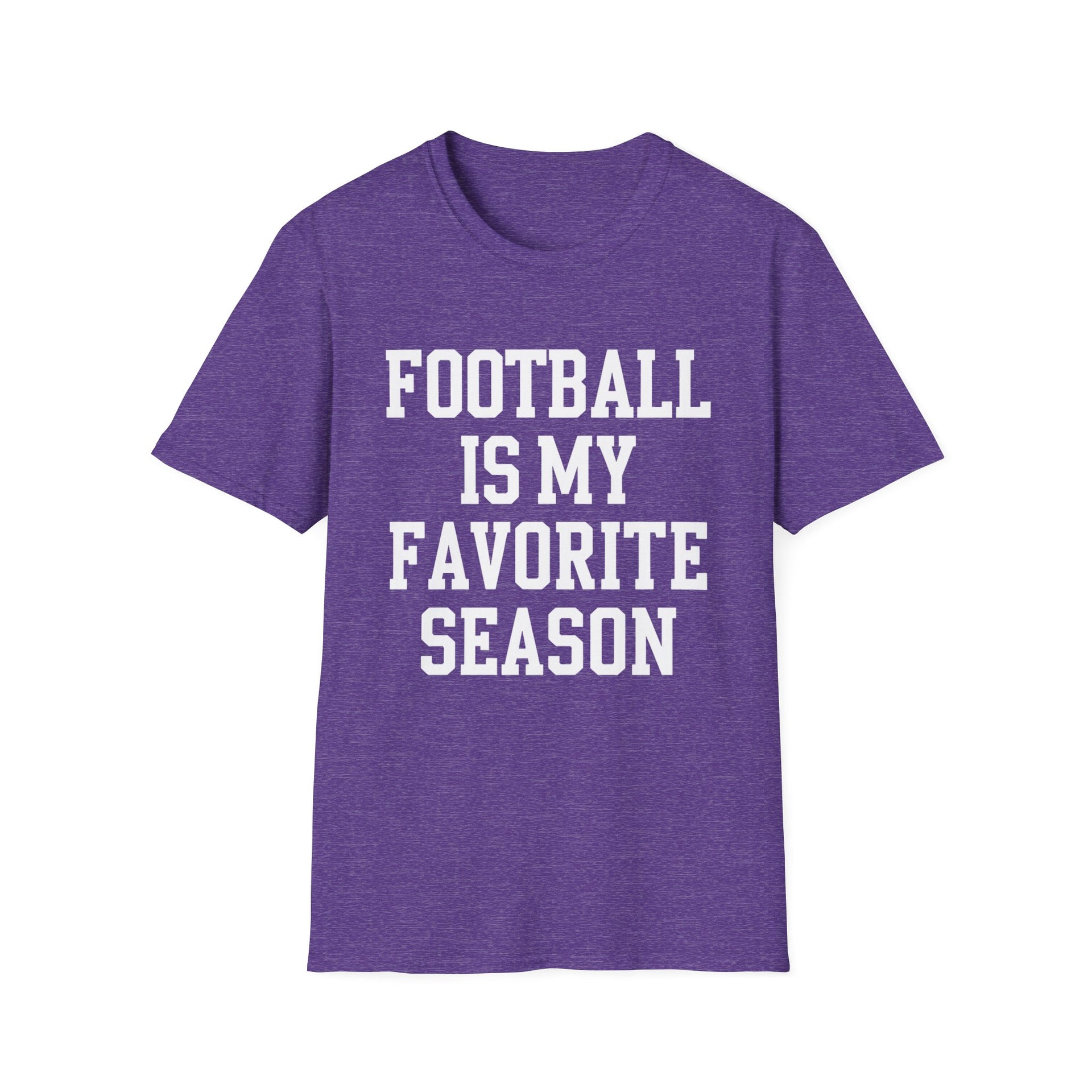 Celebrate the best time of the year with our "Football is My Favorite Season" tee! Designed for fans who live for game days, this shirt is the perfect way to express your passion for the sport. Whether you're tailgating, watching from the stands, or catching the game at home, this tee lets everyone know what season really matters. Comfortable, stylish, and easy to wear, it's a must-have for any football enthusiast who counts down the days until kickoff.