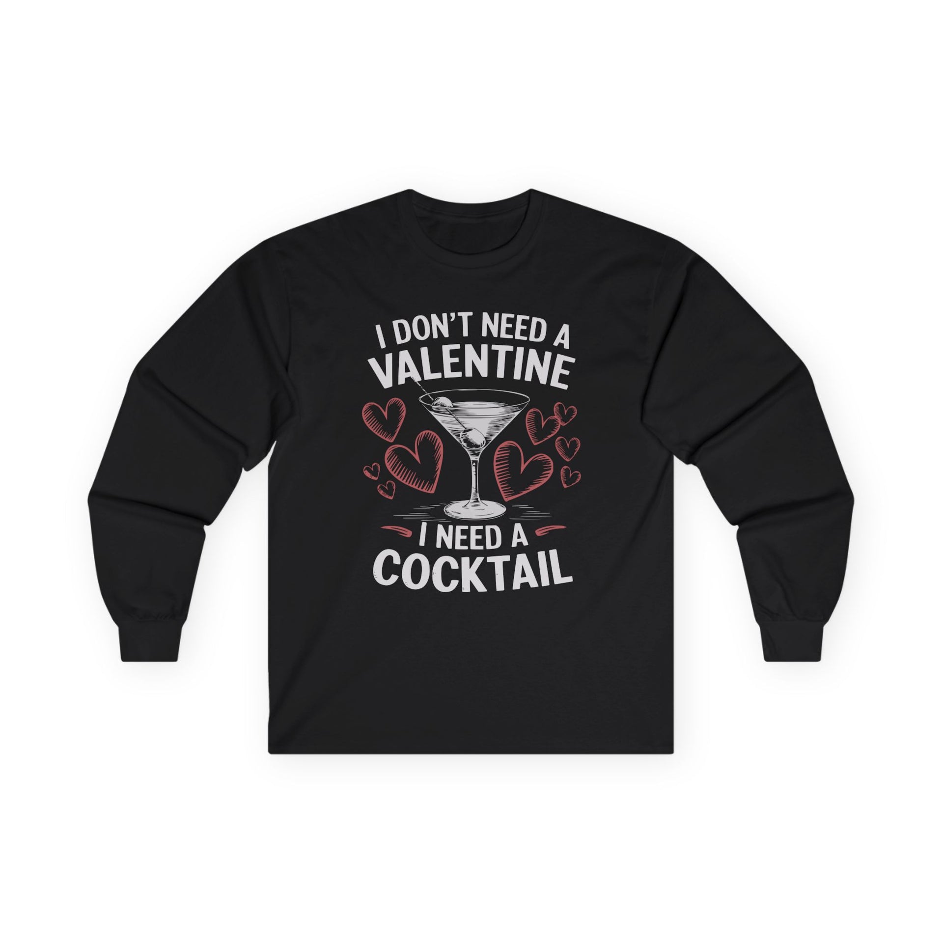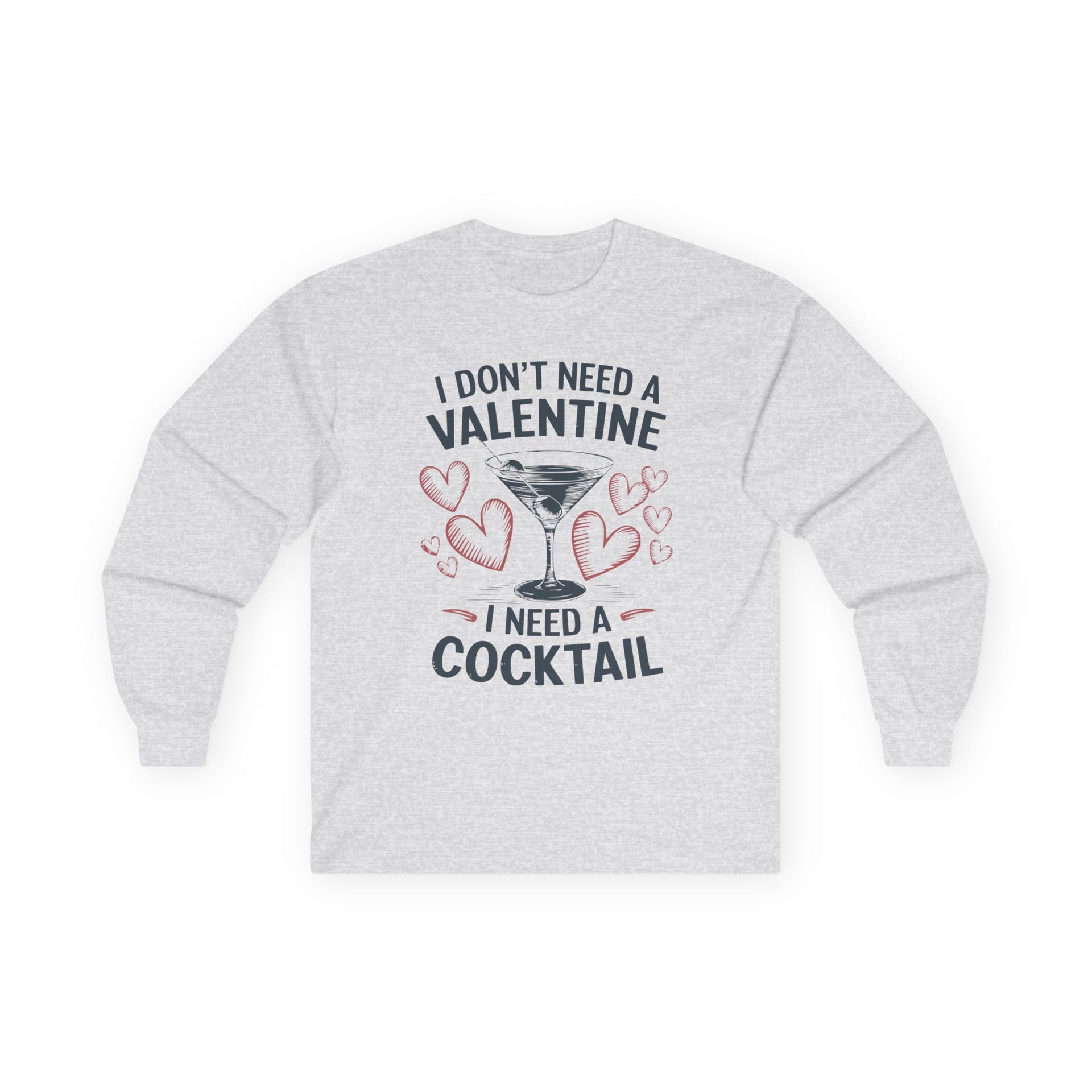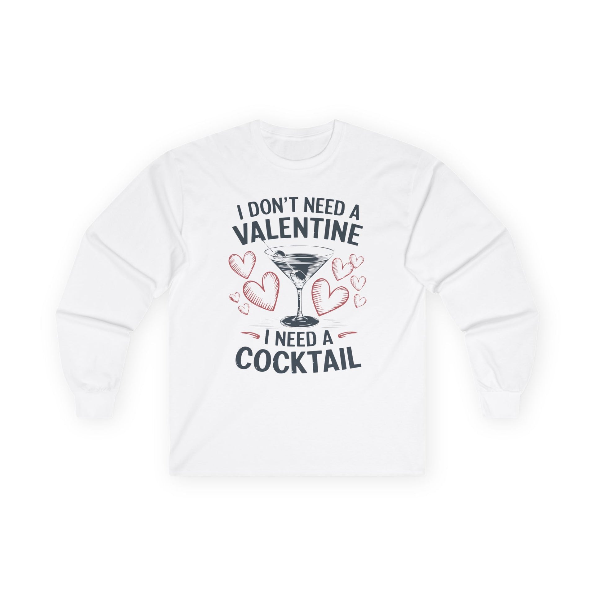 I Don’t Need a Valentine, I Need a Cocktail Funny Long-Sleeve Shirt - Cute Valentine’s Day Tee, Perfect Gift for Her or Him