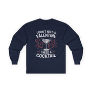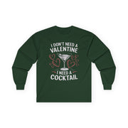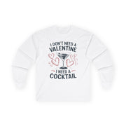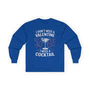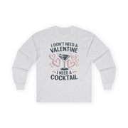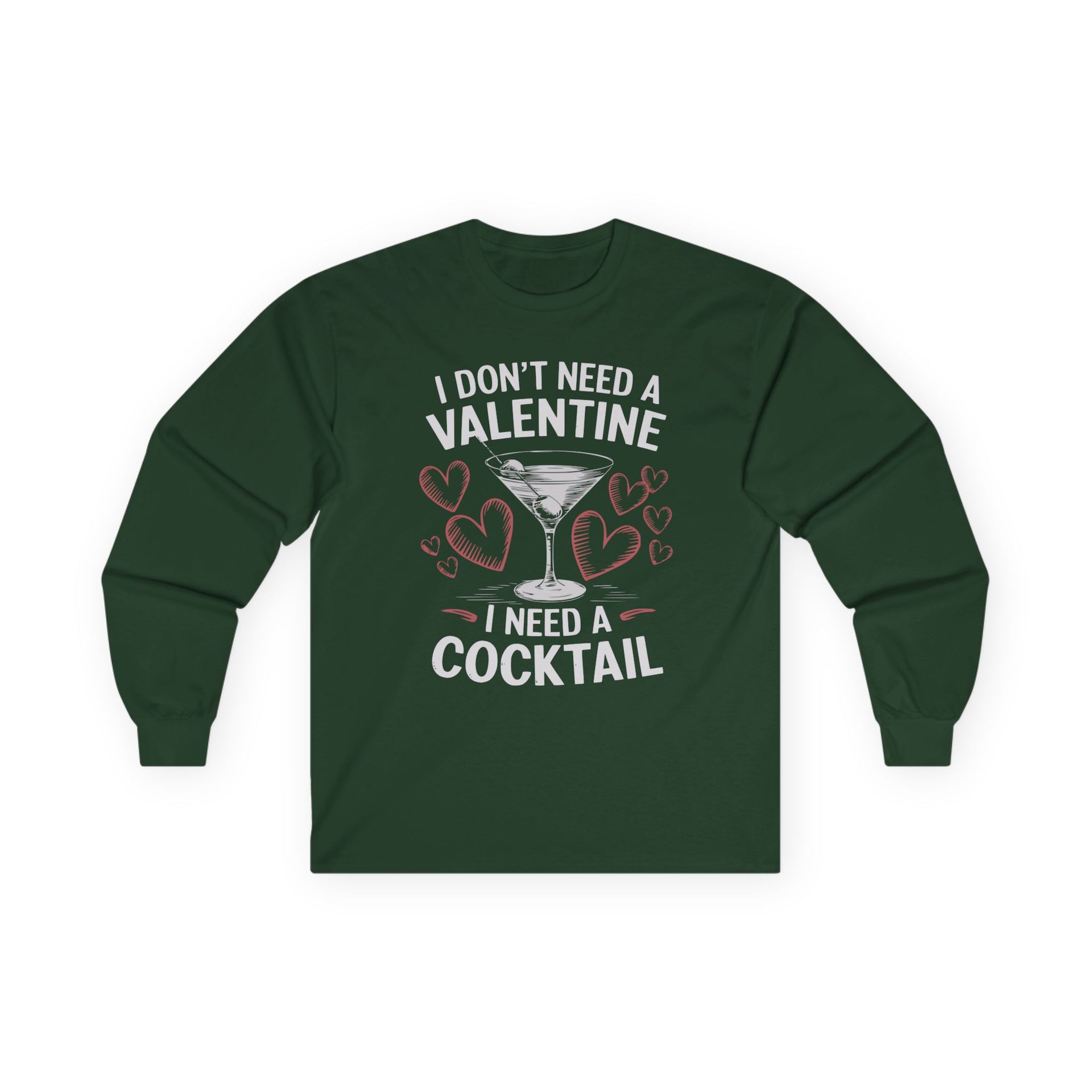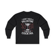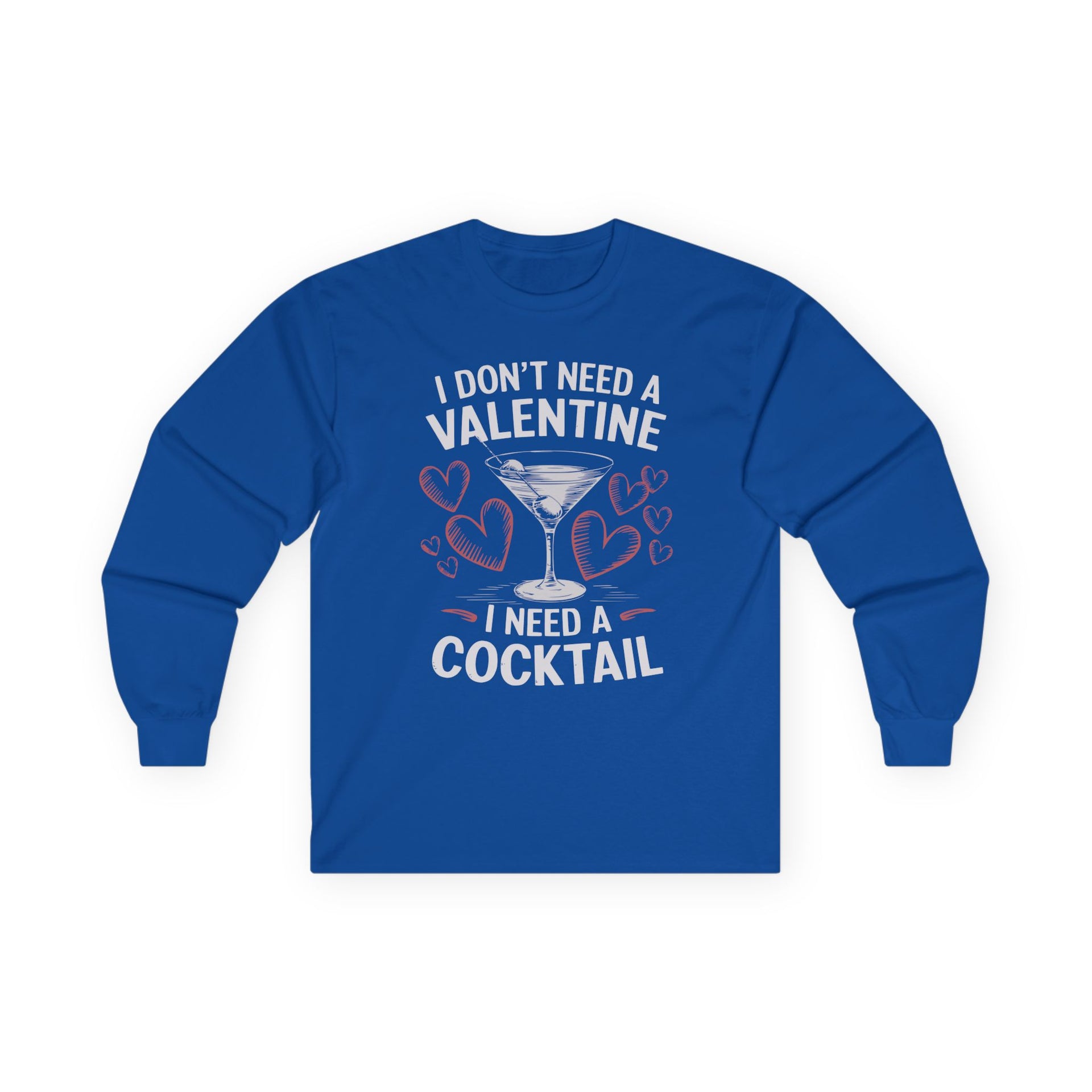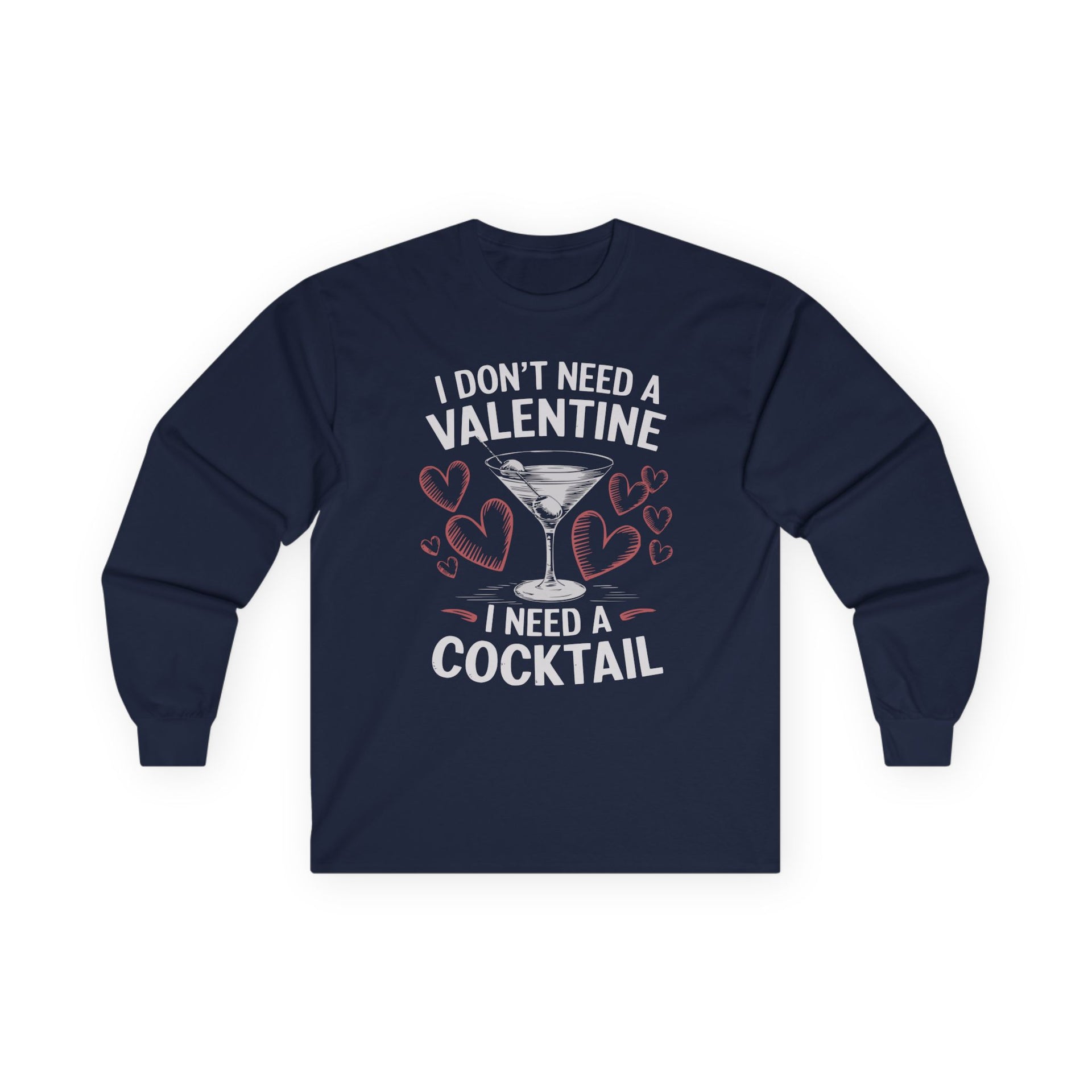 I Don’t Need a Valentine, I Need a Cocktail Funny Long-Sleeve Shirt - Cute Valentine’s Day Tee, Perfect Gift for Her or Him