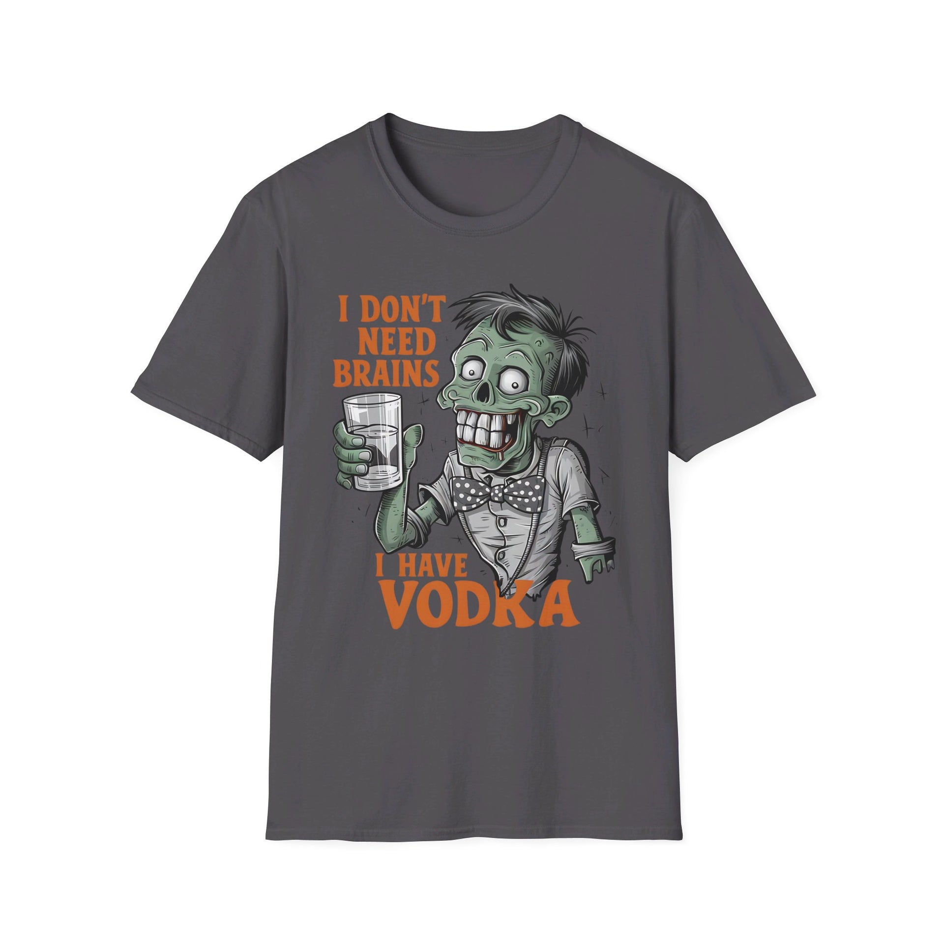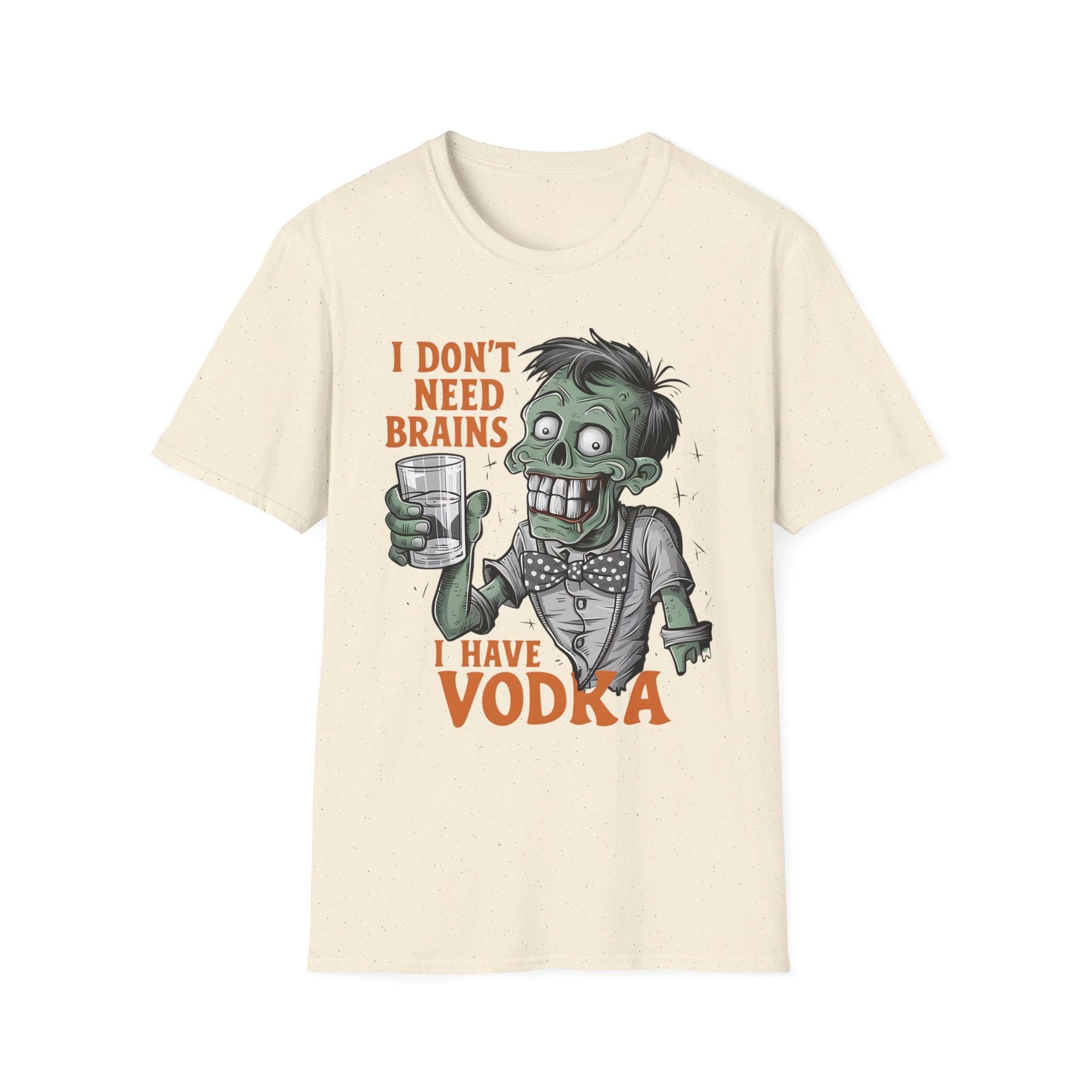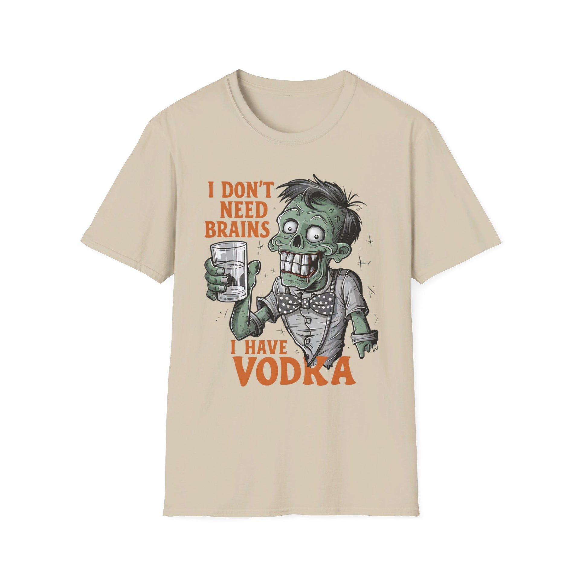 Get ready to party this Halloween with our "I Don't Need Brains, I Have Vodka" t-shirt! Perfect for vodka enthusiasts who appreciate a good laugh, this tee adds a playful twist to your spooky season wardrobe. Whether you're heading to a Halloween bash, enjoying a night out, or simply hanging with friends, this shirt is your go-to for mixing fun with a bit of mischief. The bold phrase lets everyone know that when it comes to having a good time, vodka is all the brains you need.