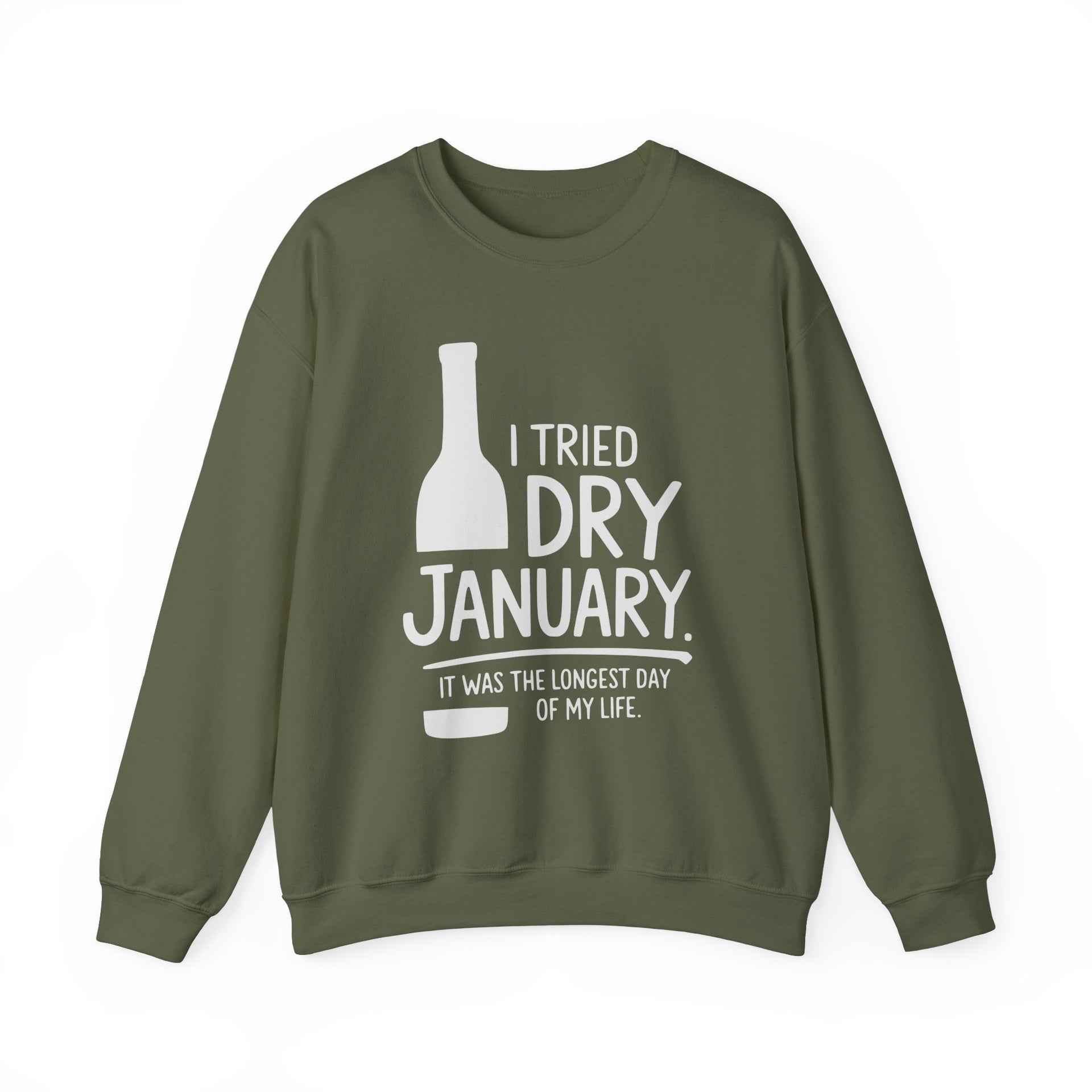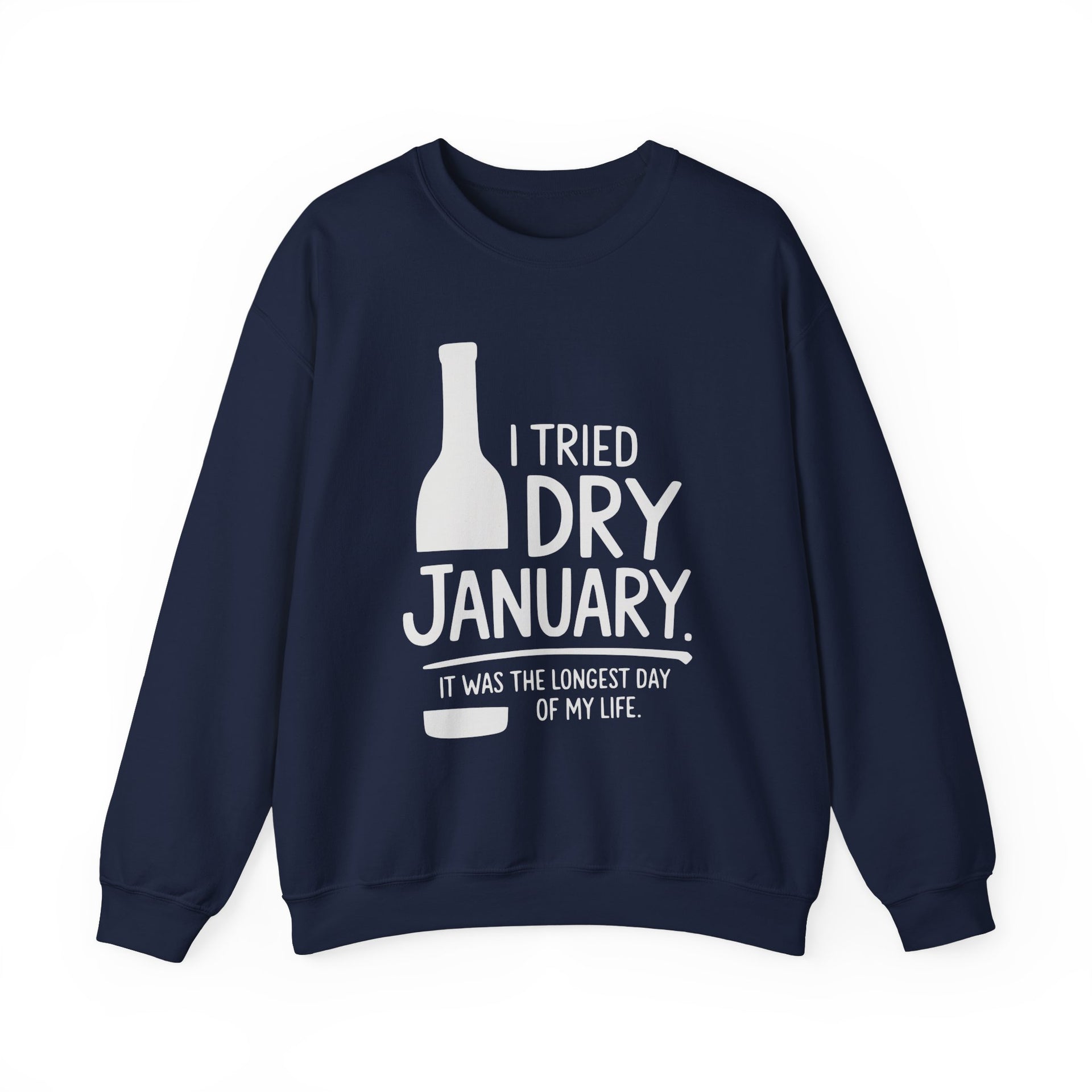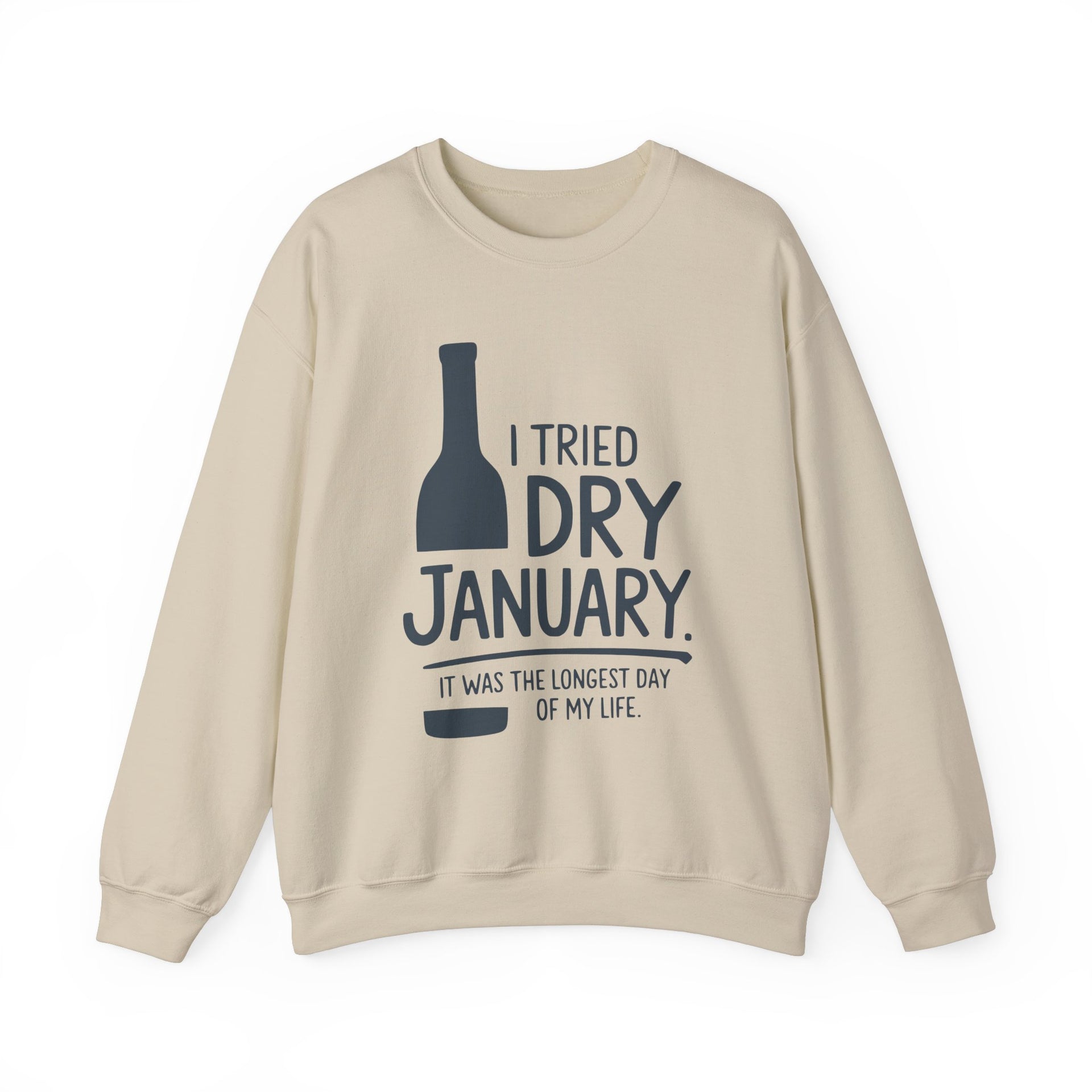 I Tried Dry January. It Was the Longest Day of My Life" Funny Sweatshirt - Humor Pullover for Wine and Bourbon Lovers