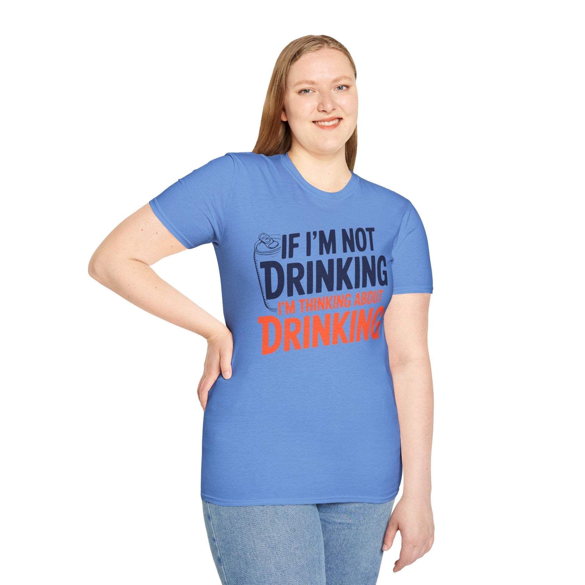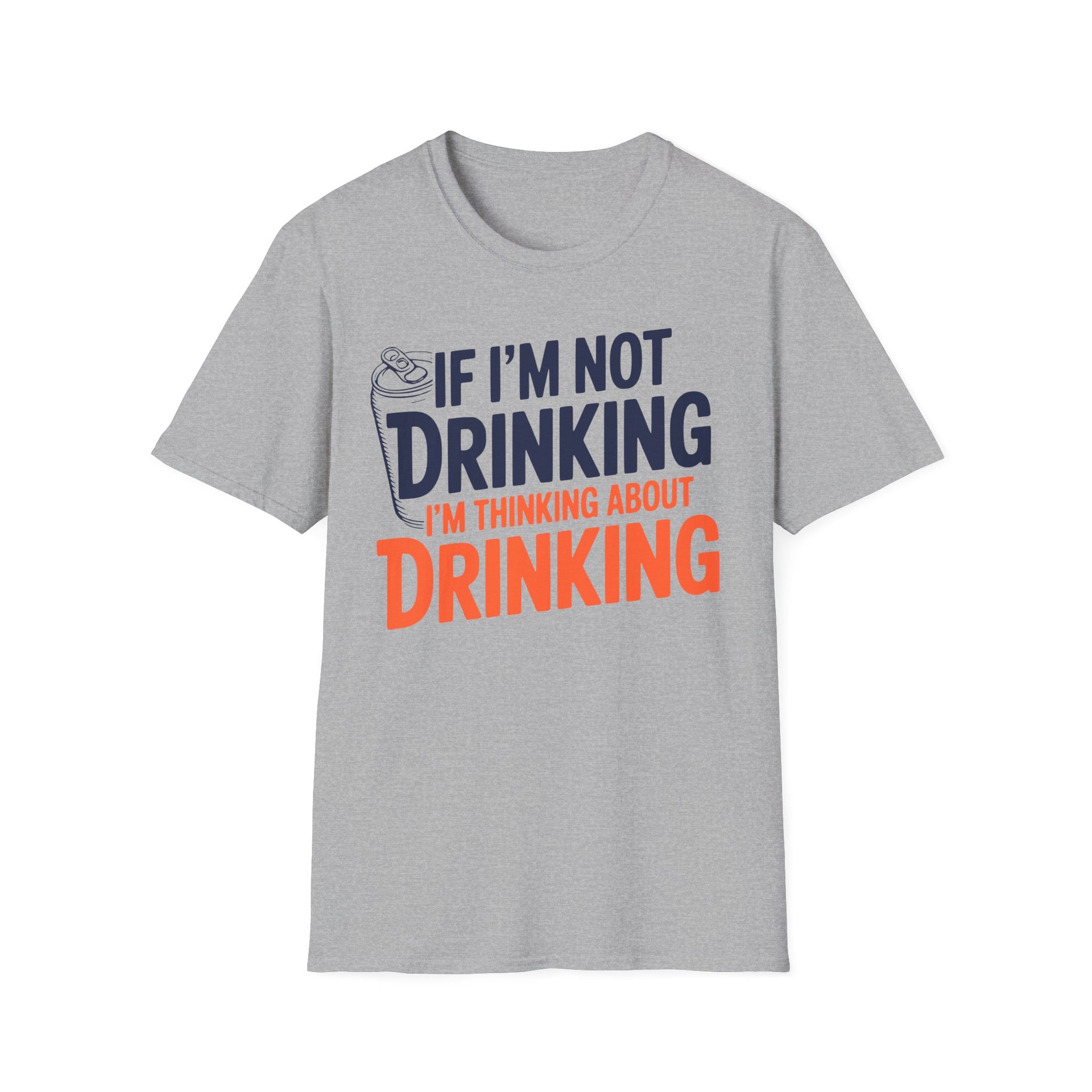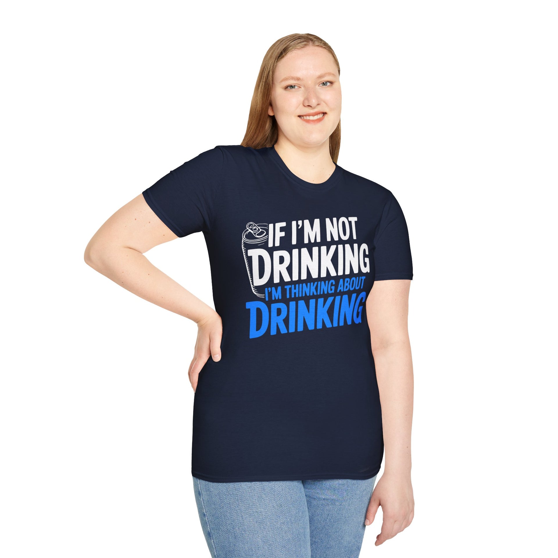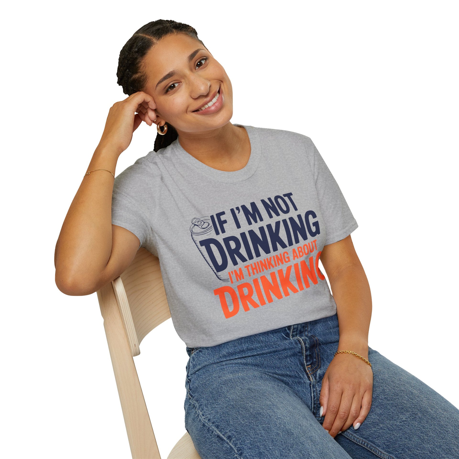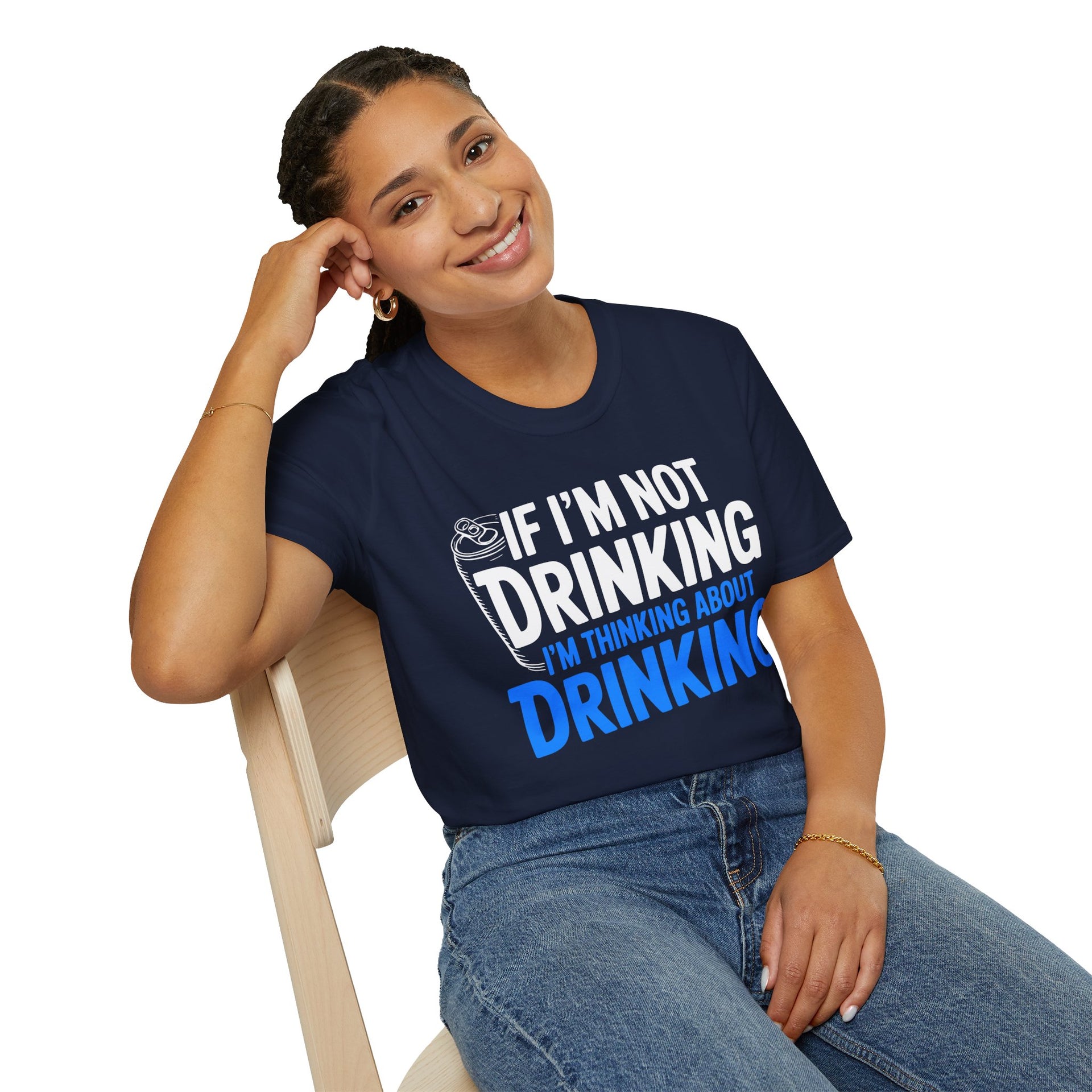 Declare your commitment to good times and great drinks with bold typography stating If Im Not Drinking Im Thinking About Drinking. This ultra-soft tee pairs perfectly with bar nights, backyard hangouts, and casual weekends.