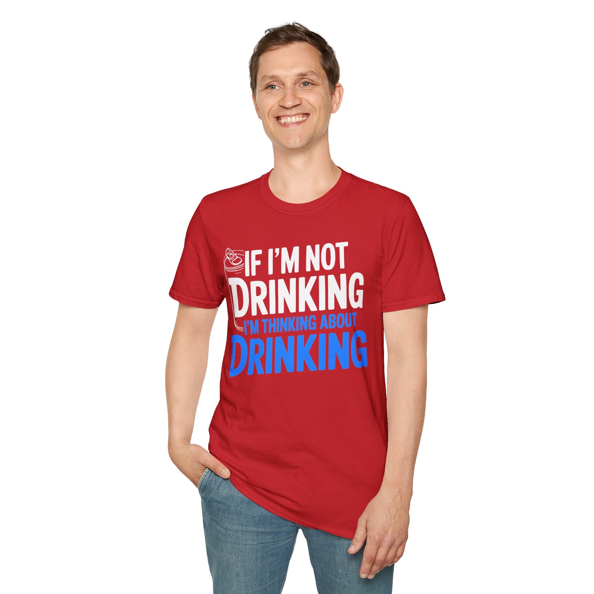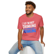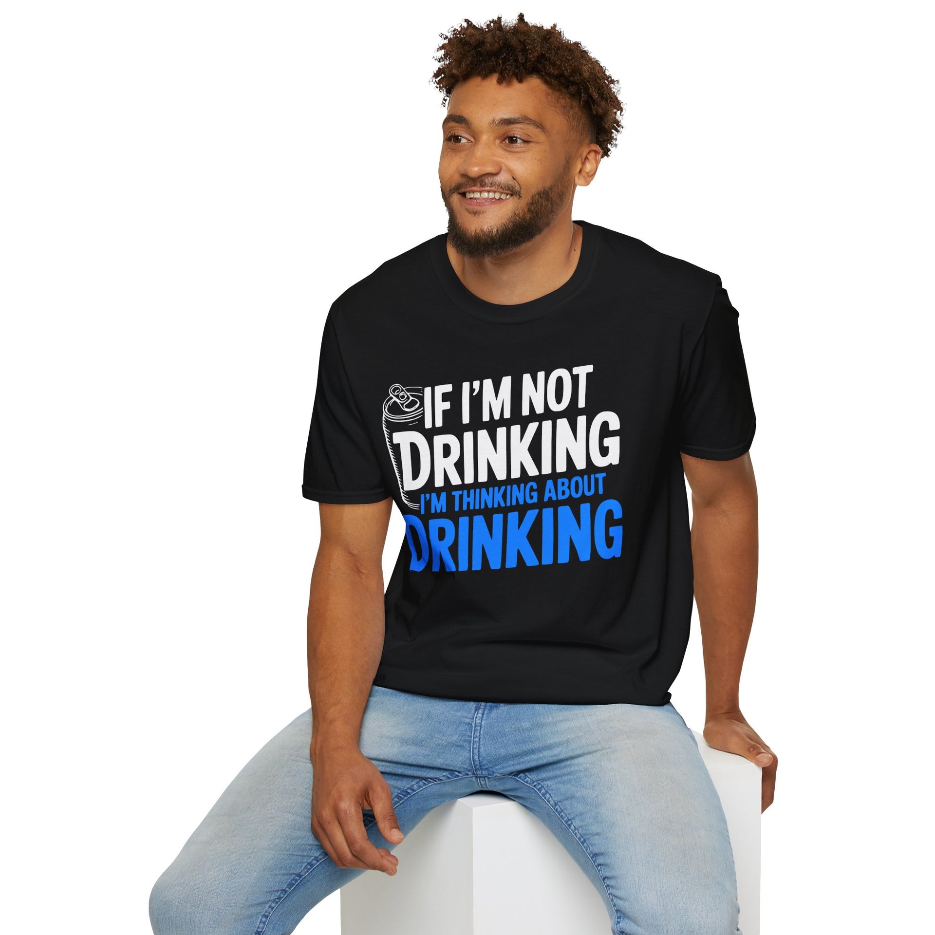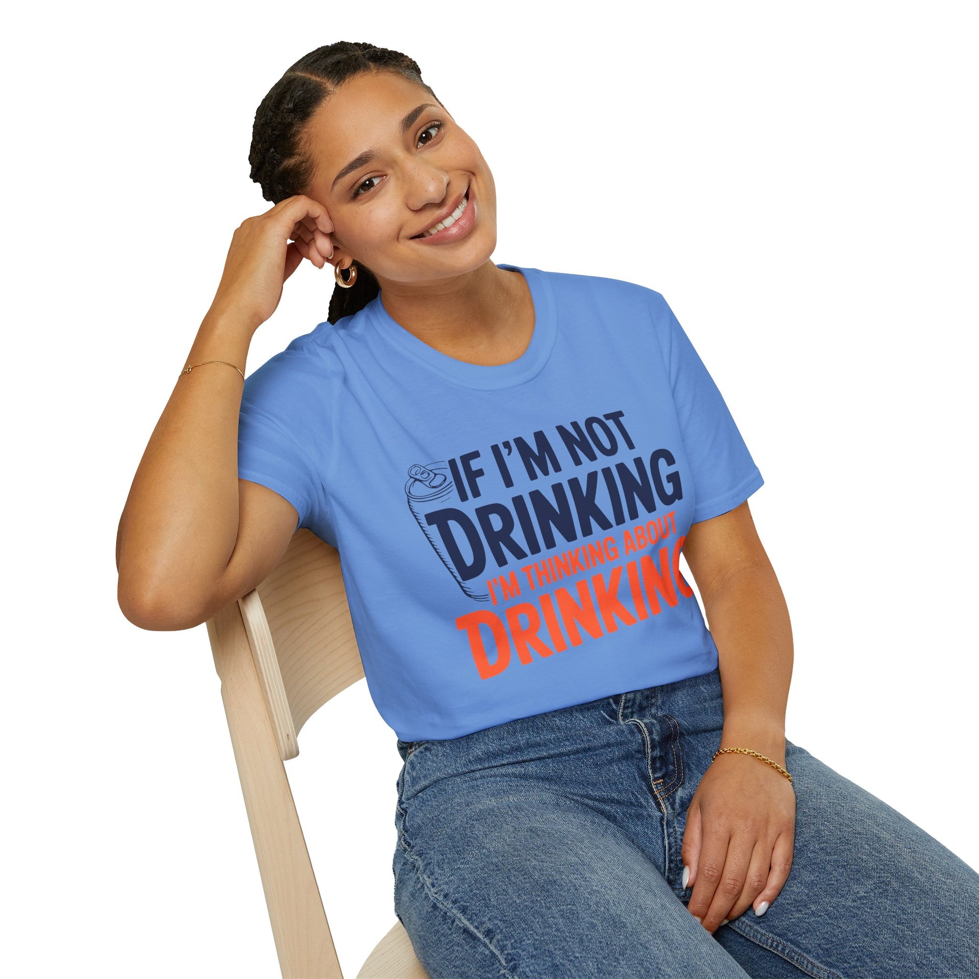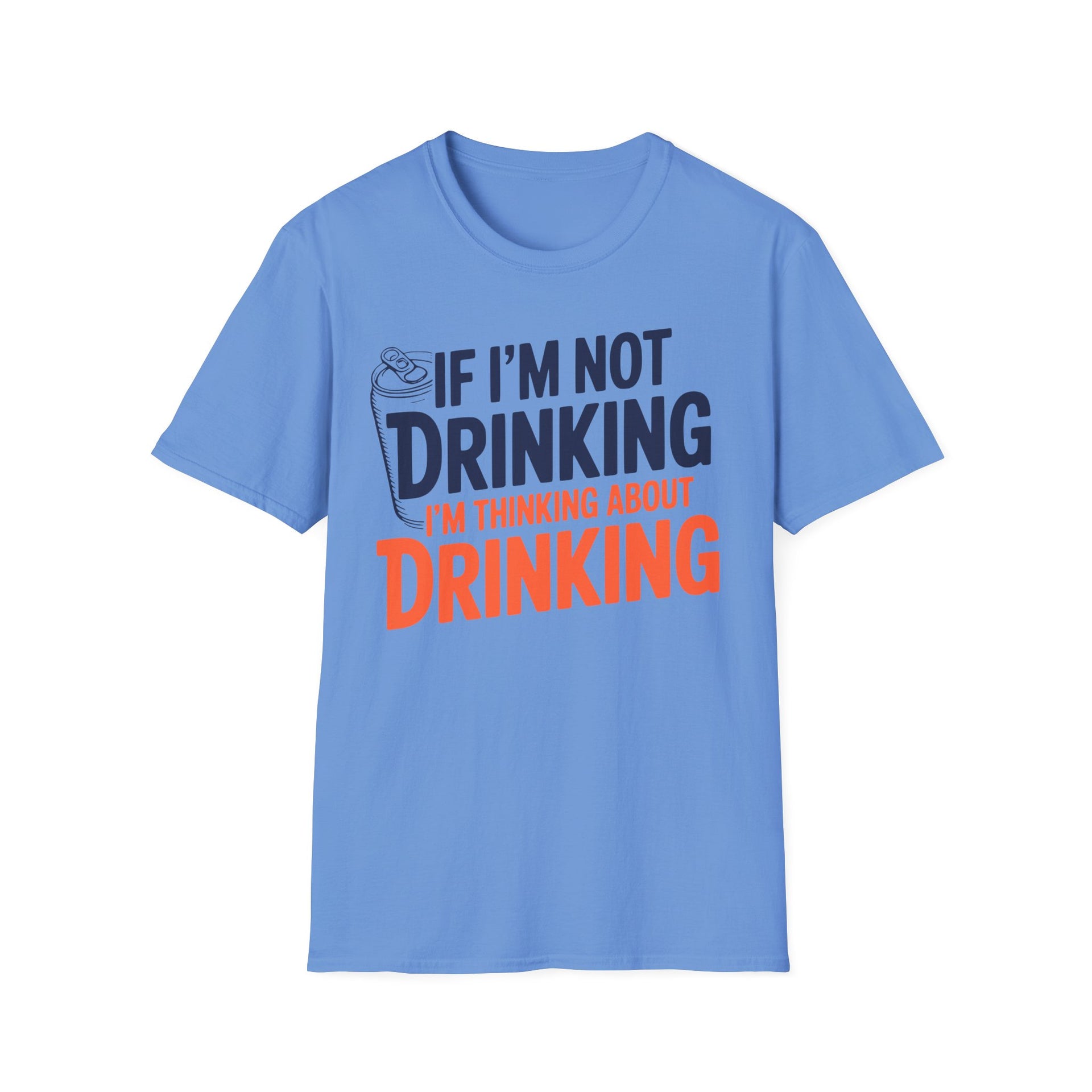 Declare your commitment to good times and great drinks with bold typography stating If Im Not Drinking Im Thinking About Drinking. This ultra-soft tee pairs perfectly with bar nights, backyard hangouts, and casual weekends.