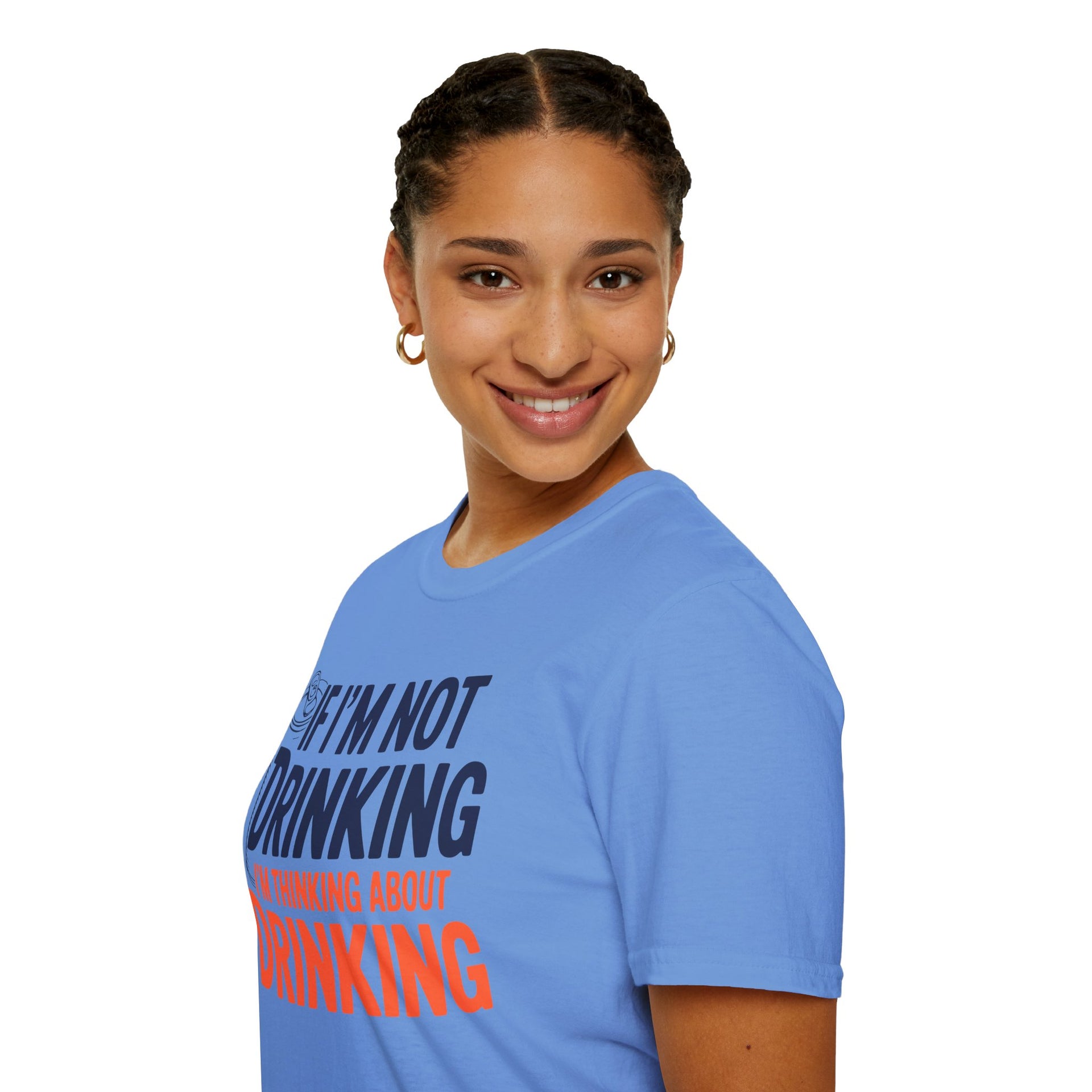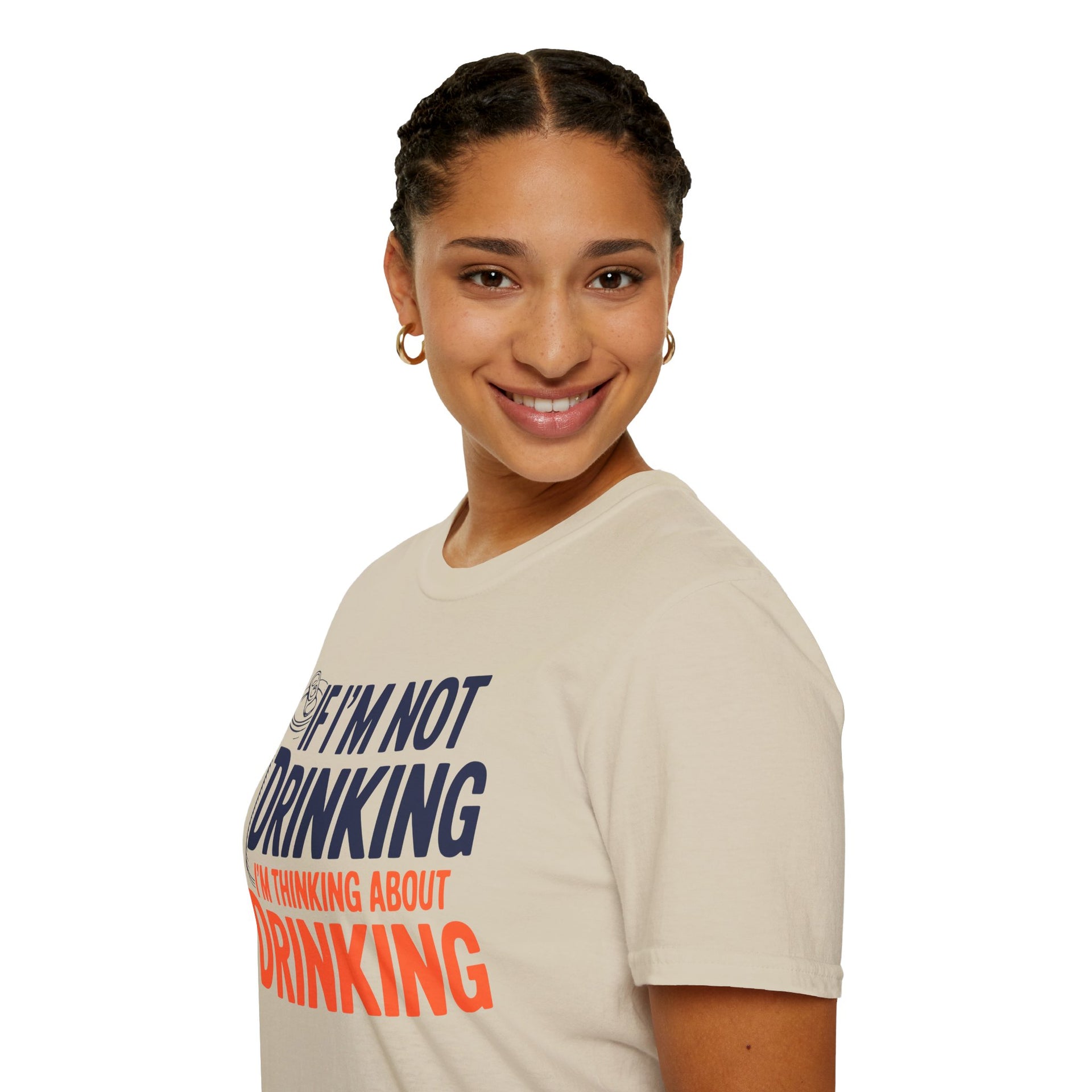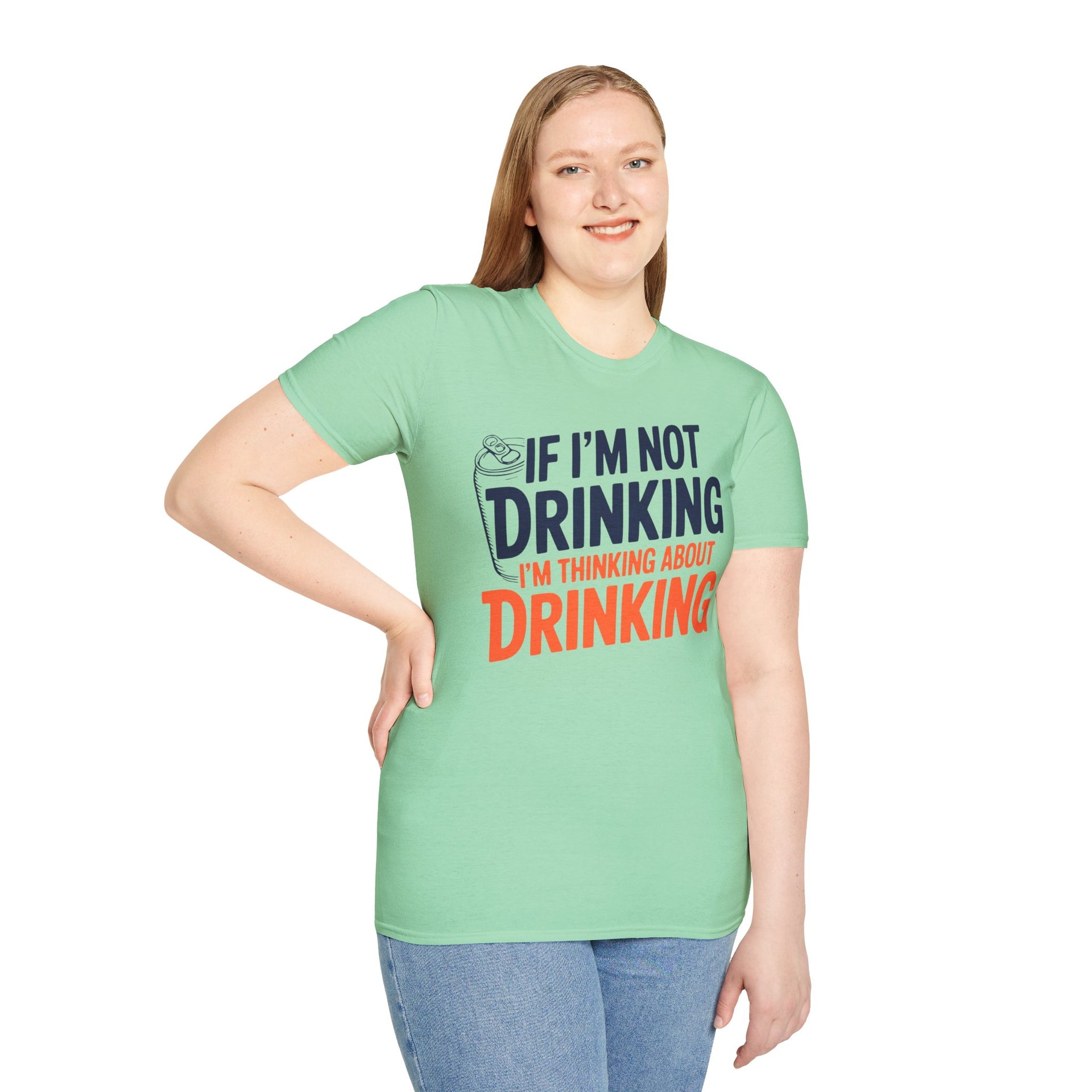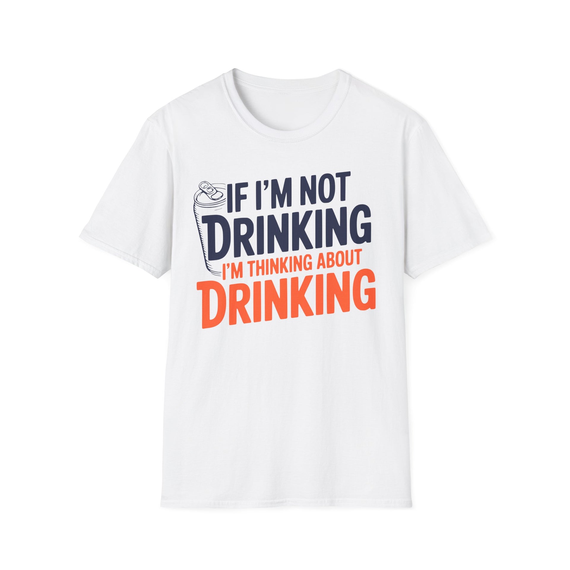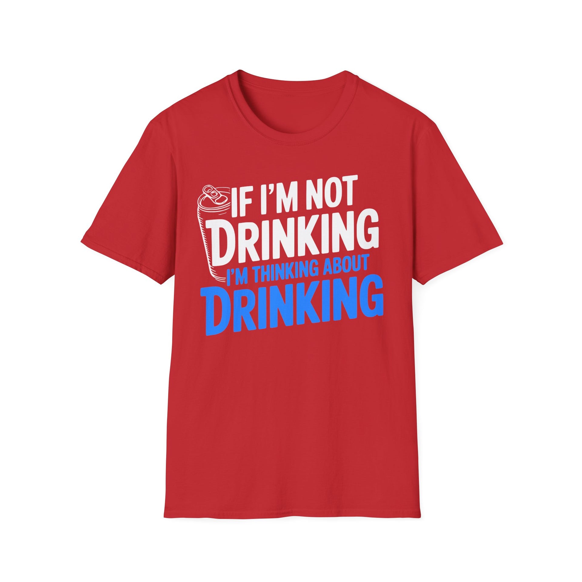Declare your commitment to good times and great drinks with bold typography stating If Im Not Drinking Im Thinking About Drinking. This ultra-soft tee pairs perfectly with bar nights, backyard hangouts, and casual weekends.