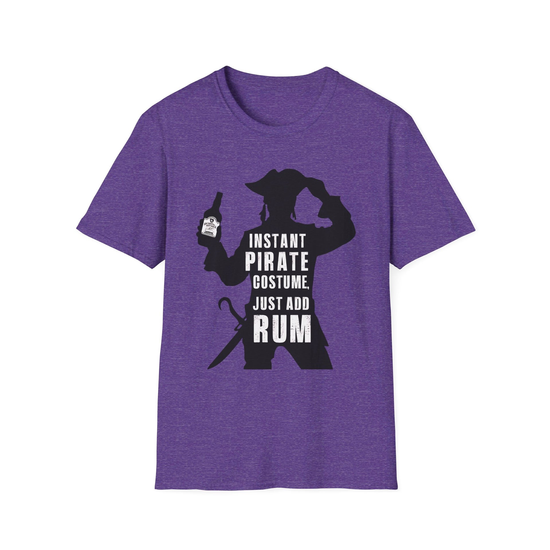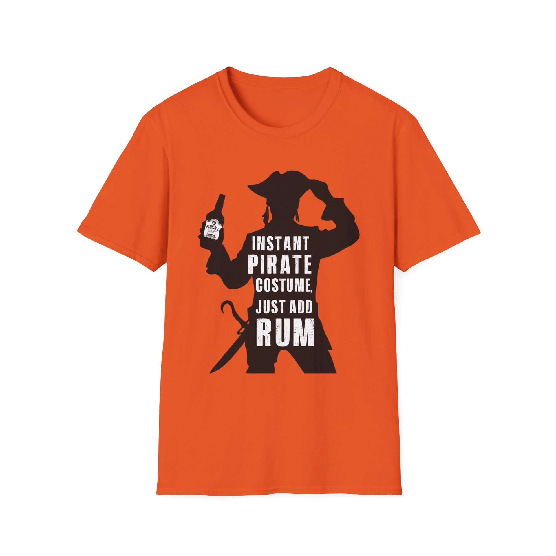 Set sail into Halloween fun with our "Instant Pirate Costume, Just Add Rum" t-shirt! This playful and witty tee is perfect for those who love a no-fuss approach to dressing up. Simply add rum, and you’re ready to embrace your inner pirate with style and humor. Whether you're attending a Halloween party, enjoying a casual night out, or just love the idea of a quick costume, this shirt has got you covered. The bold phrase makes a fun statement that’s sure to get a laugh, making it a must-have for the season.