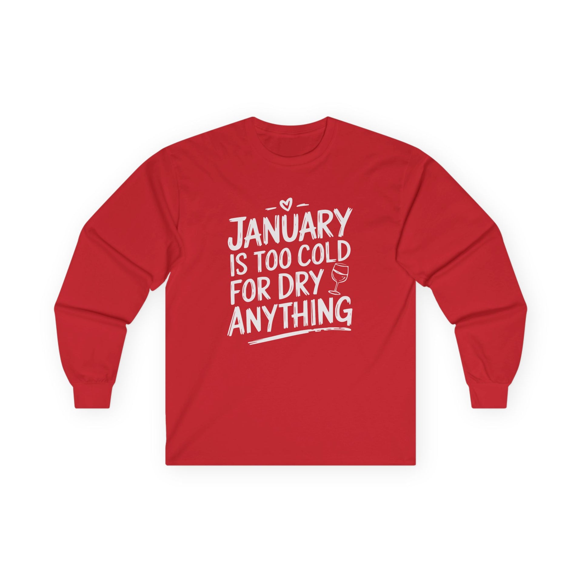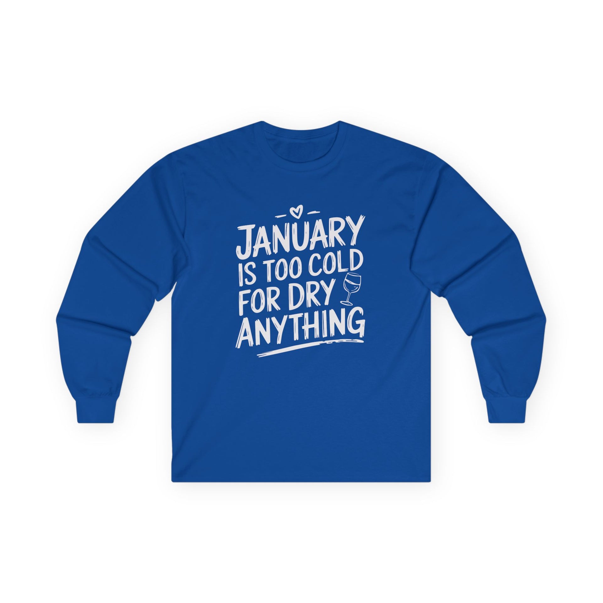 January Is Too Cold for Dry Anything Funny Long-Sleeve Shirt - Humorous Tee for Wine and Bourbon Lovers, Sarcastic Drinking Apparel