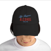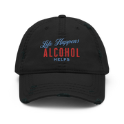 Expand your headwear collection with this fashionable dad hat. With a slightly distressed brim and crown fabric, it’ll add just the right amount of edge to your look. For a quick and easy outfit pair it with slacks, your favorite jeans, and a sports tee.