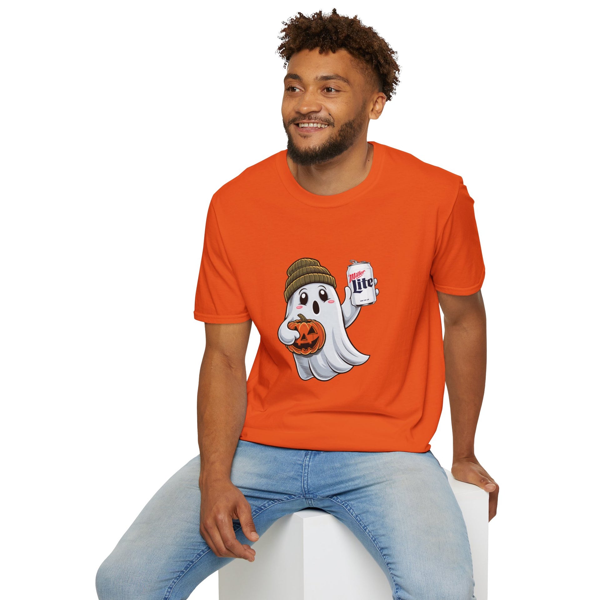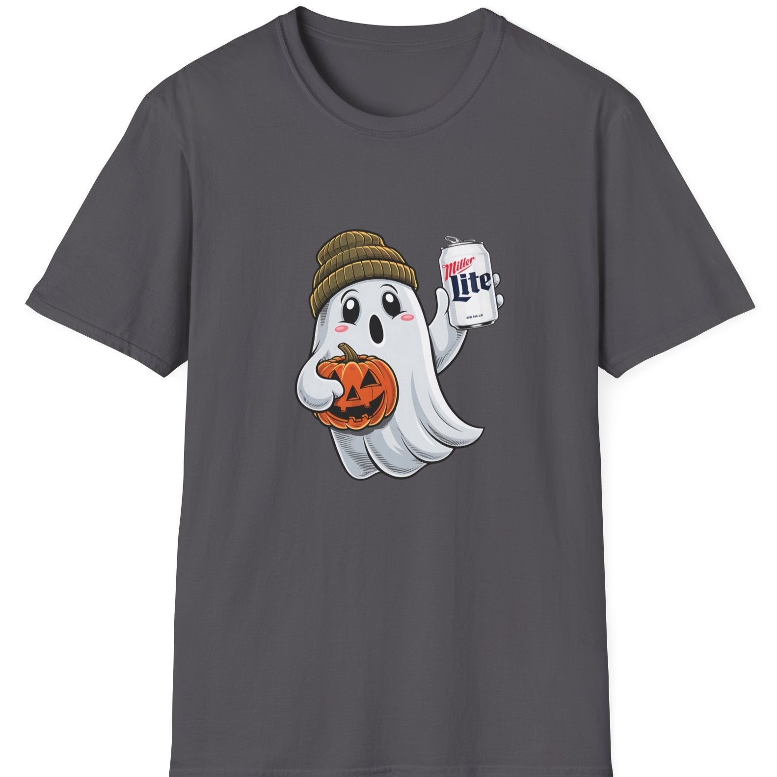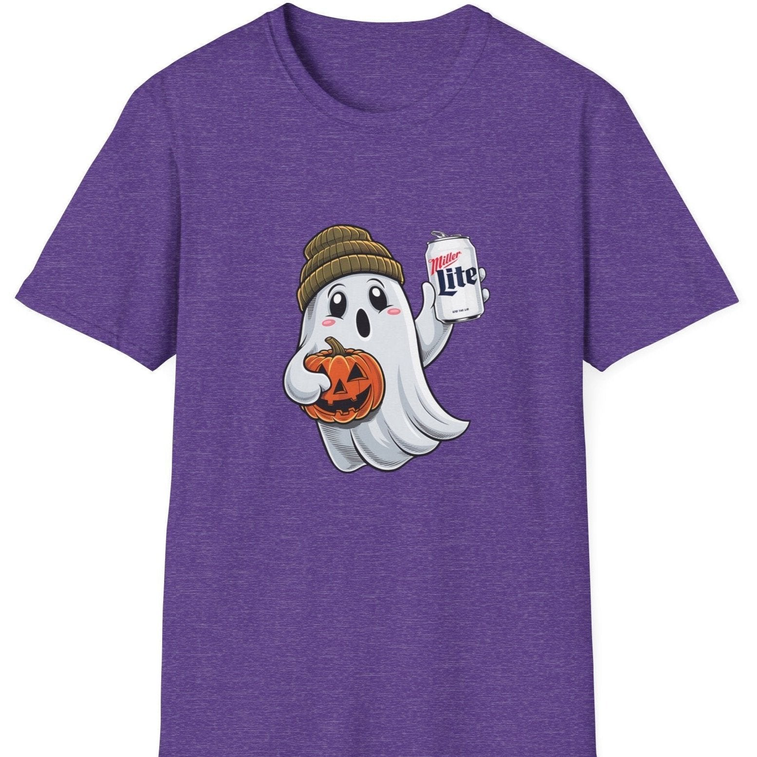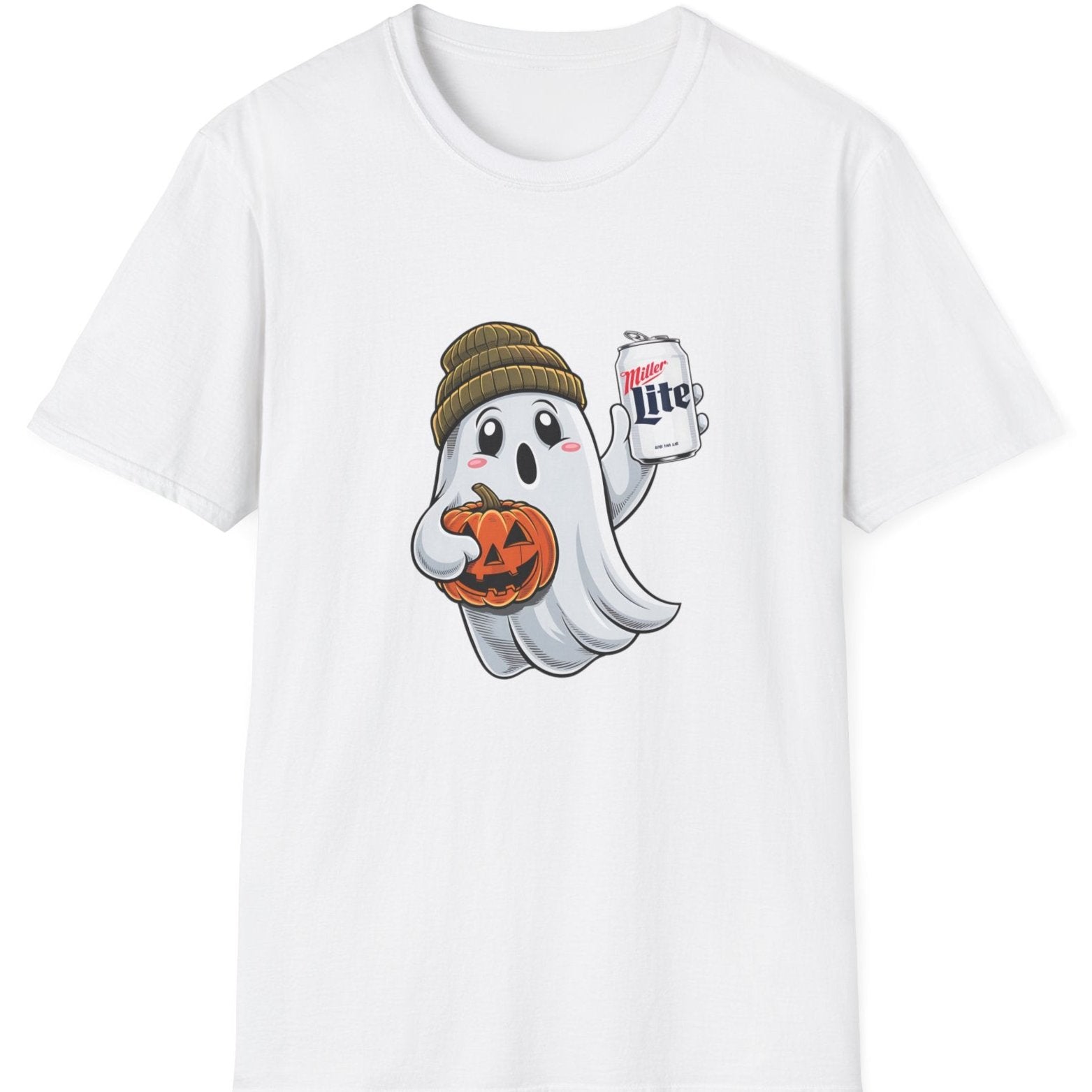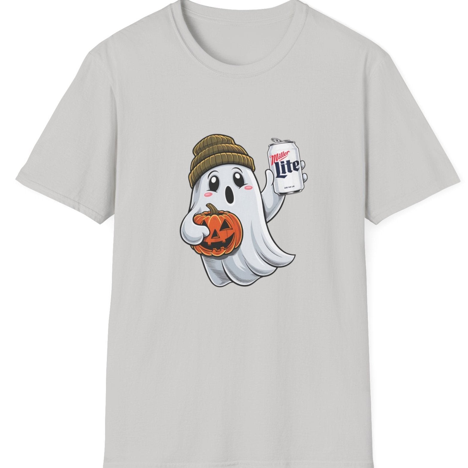 - Playful Halloween Design: Features a ghost wearing a beanie and holding a Miller Lite, adding a laid-back, humorous vibe to your spooky season wardrobe.