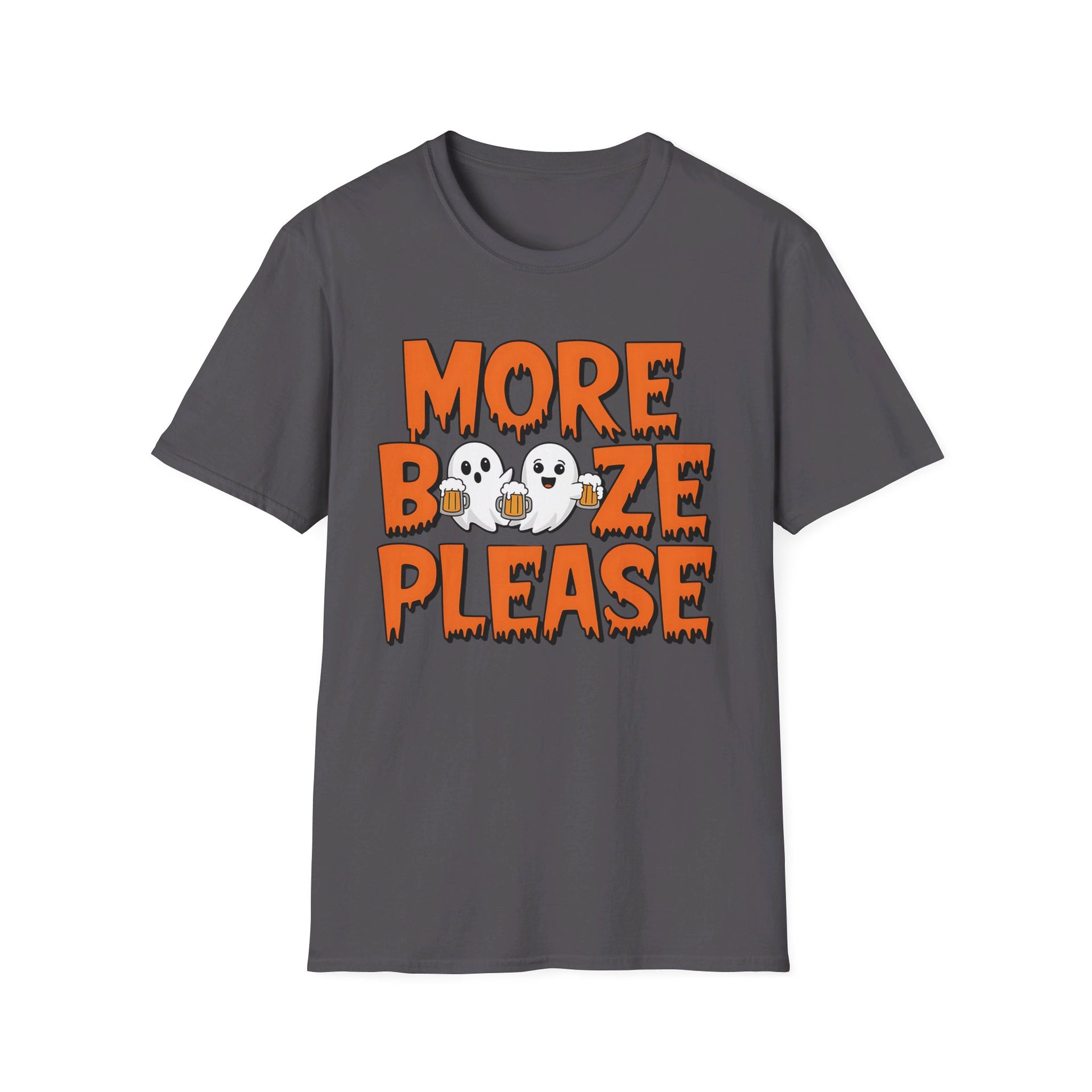 Step up your Halloween game with our "More Booze Please" t-shirt! Perfect for those who know how to keep the party going, this tee is a fun and cheeky addition to your spooky season wardrobe. Whether you're at a Halloween bash, enjoying a night out with friends, or just looking to add some humor to your evening, this shirt says it all. The playful phrase is a lighthearted way to let everyone know you're ready for more fun—and more drinks!