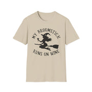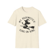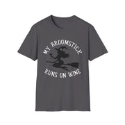 Fly into the Halloween season with a bit of flair in our "My Broomstick Runs on Wine" t-shirt! Perfect for those who love a good glass of vino and a touch of humor, this tee is a must-have for your Halloween wardrobe. Whether you're heading to a festive party, enjoying a cozy night in, or just showing off your love for wine, this shirt delivers a playful message that's sure to get some laughs. It’s the ideal choice for anyone who believes a little wine can work some magic.