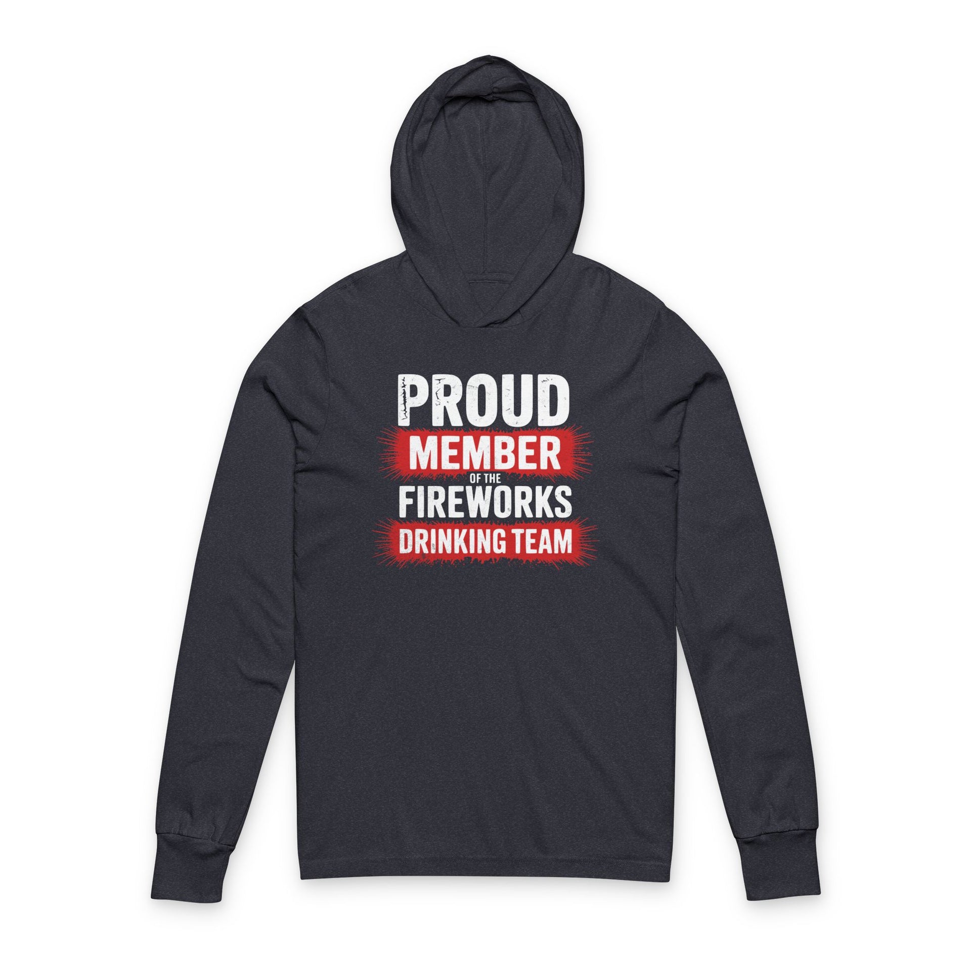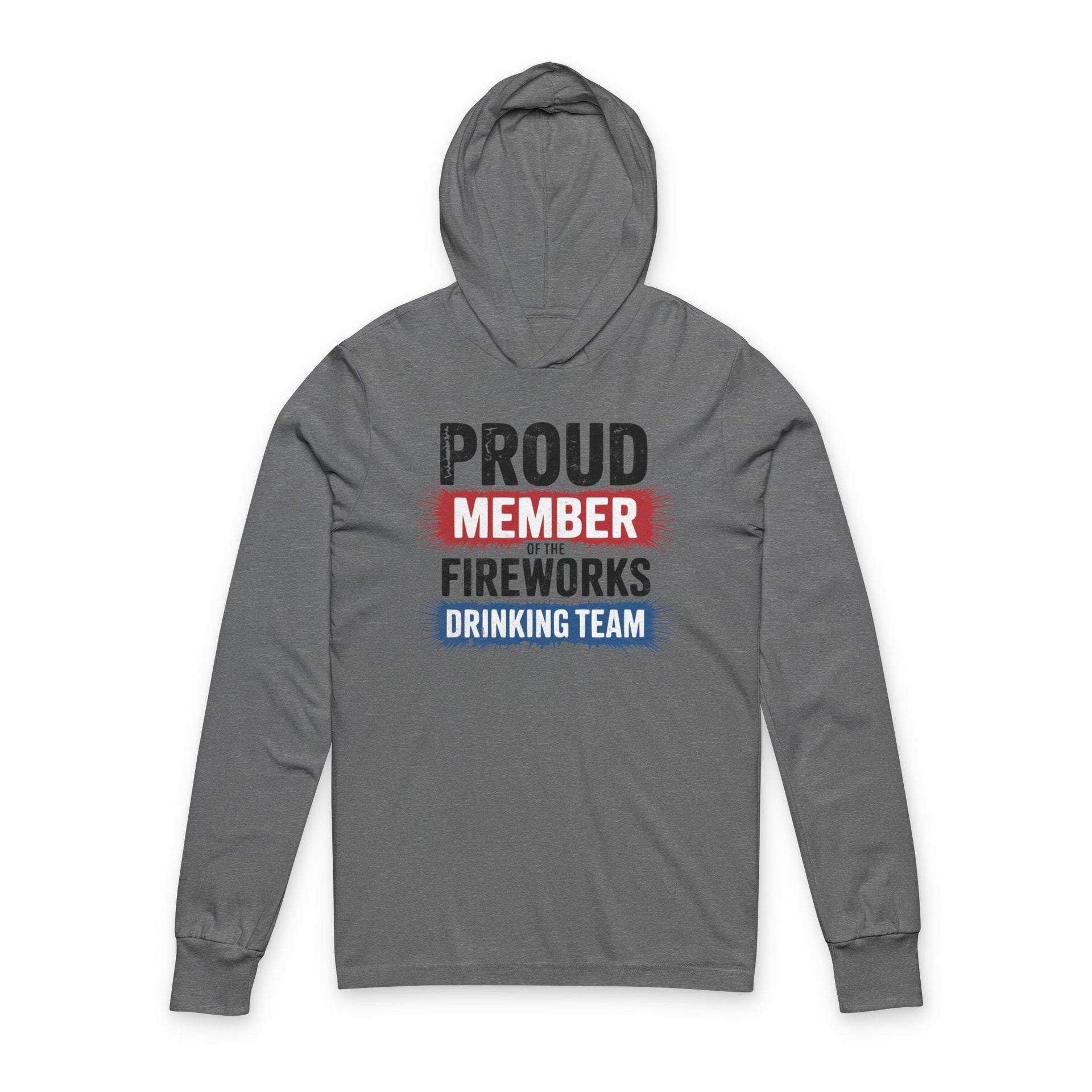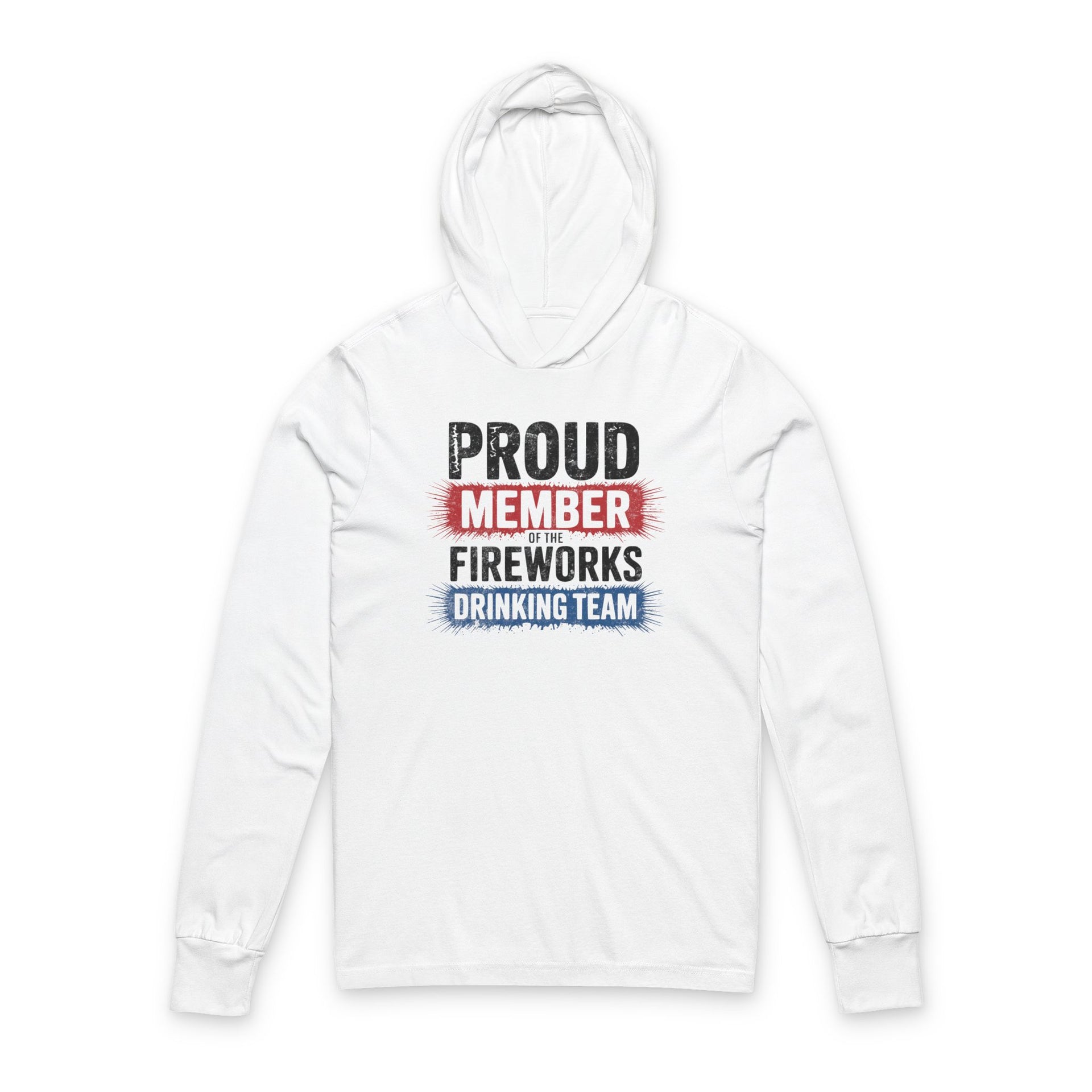 Join the ultimate party crew this Independence Day in a cozy lightweight hoodie featuring explosive fireworks sparks and bold typography declaring Proud Member of the Fireworks Drinking Team.