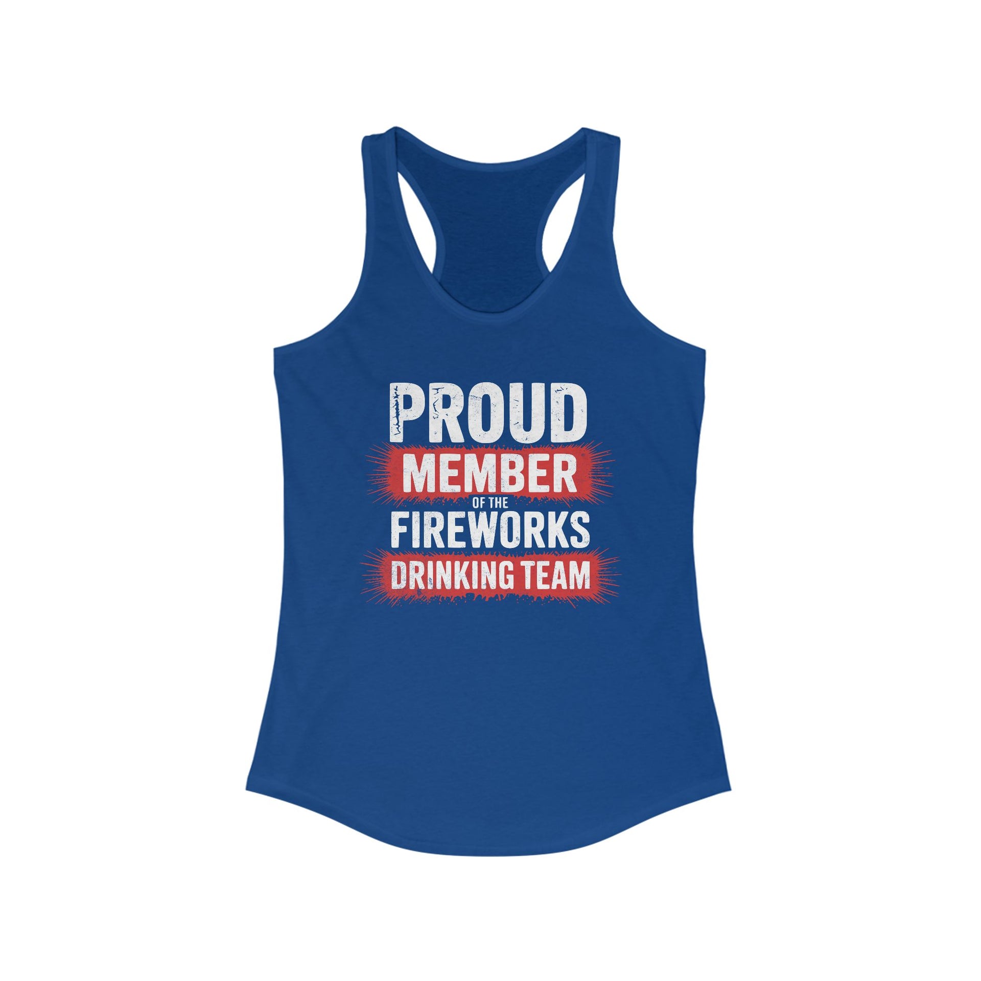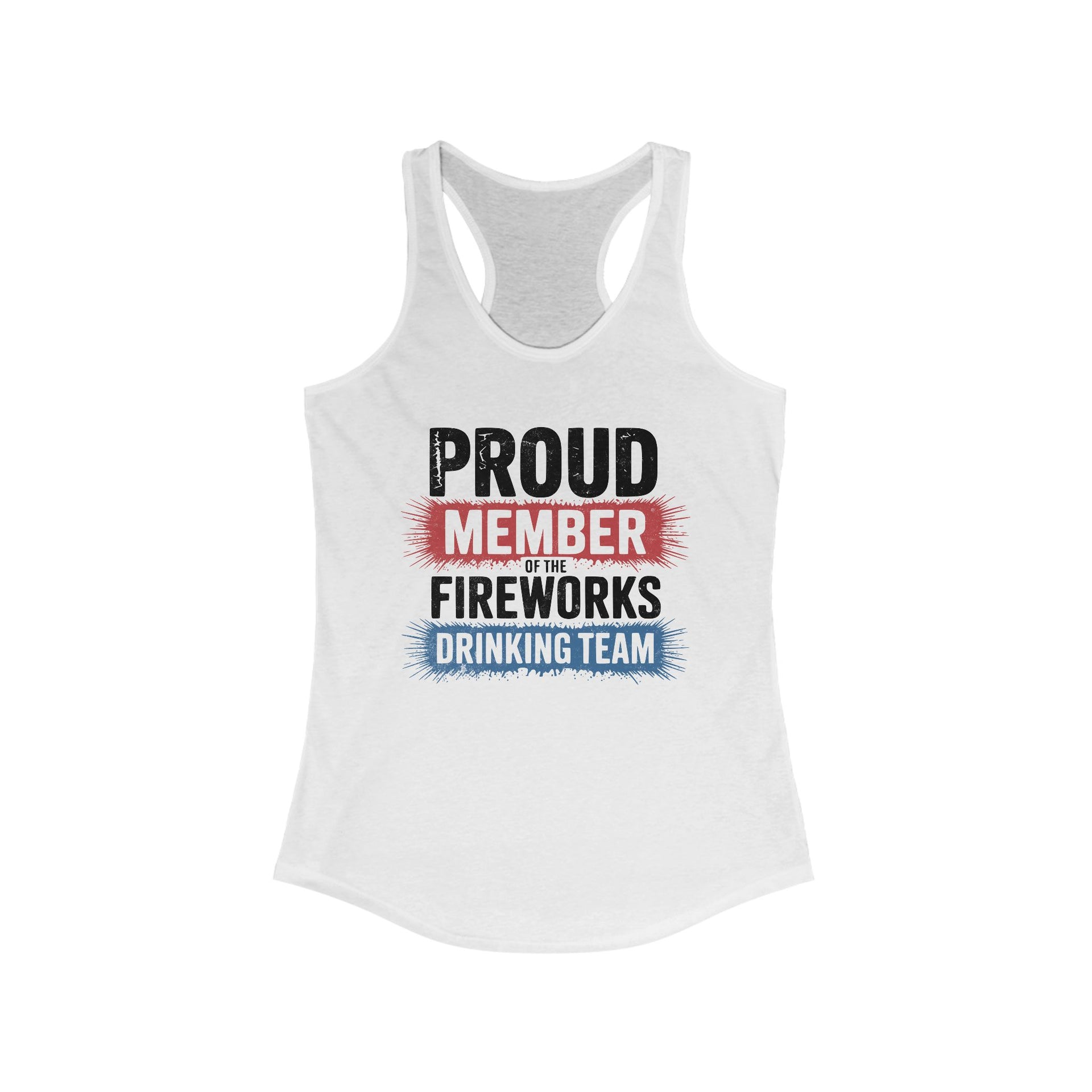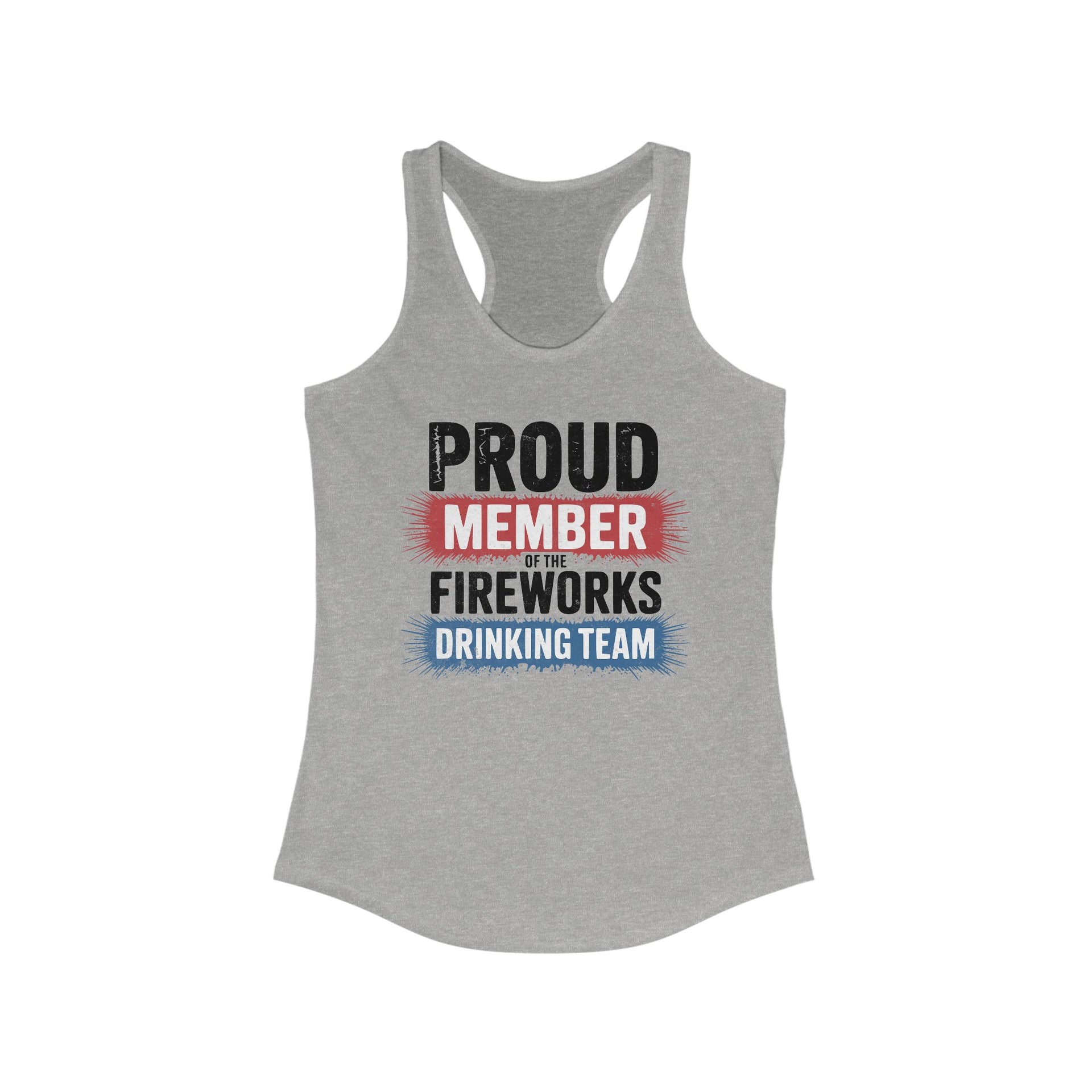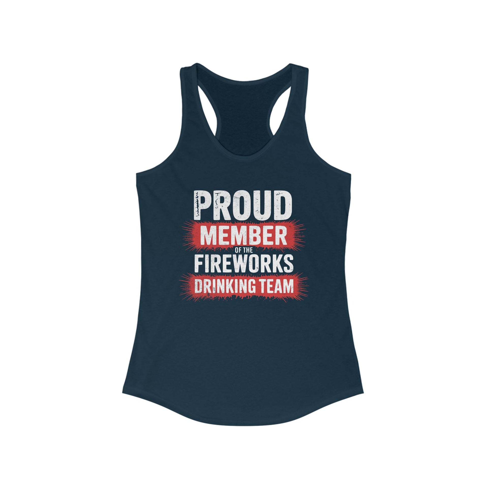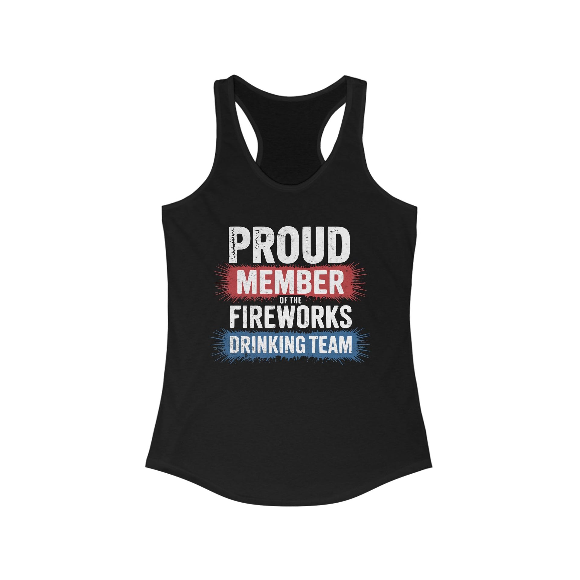 4th of July – Proud Member of the Fireworks Drinking Team – Patriotic Soft Racerback Tank Top