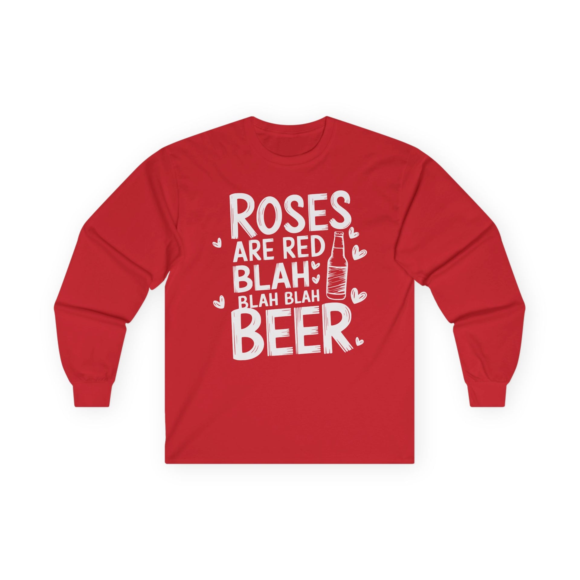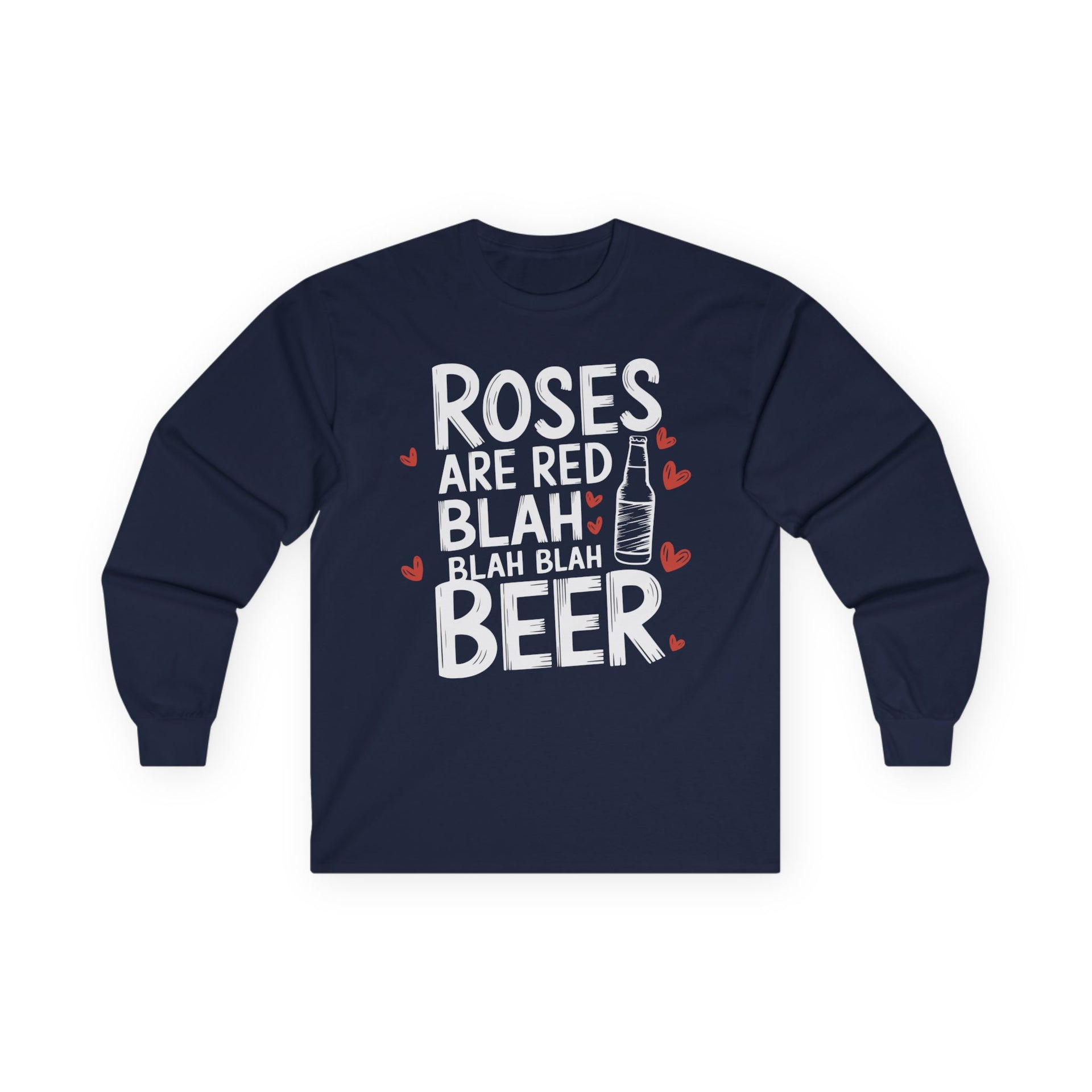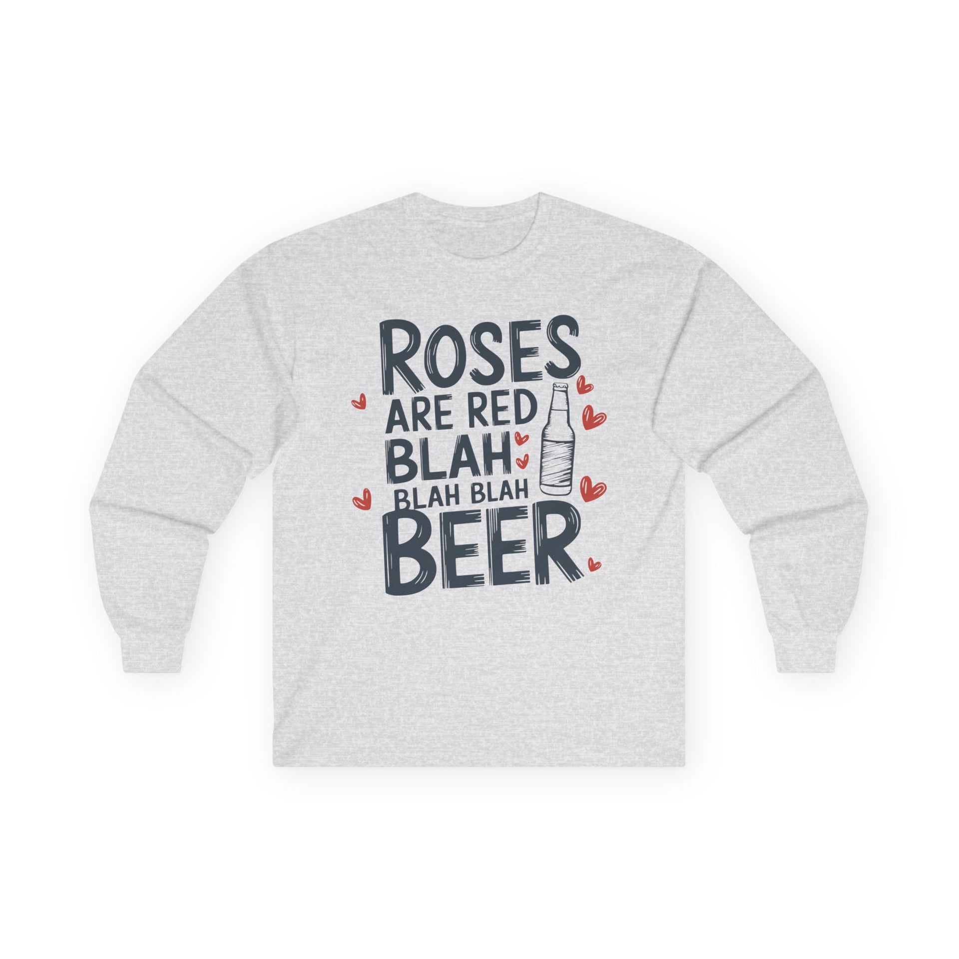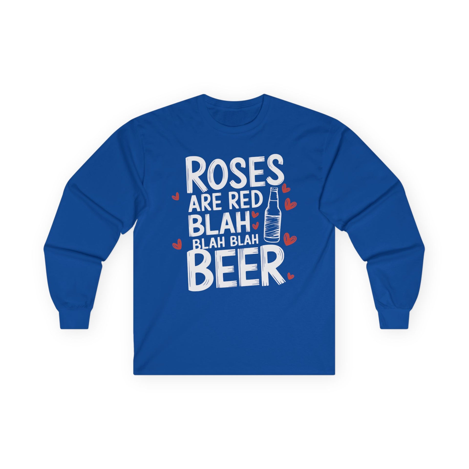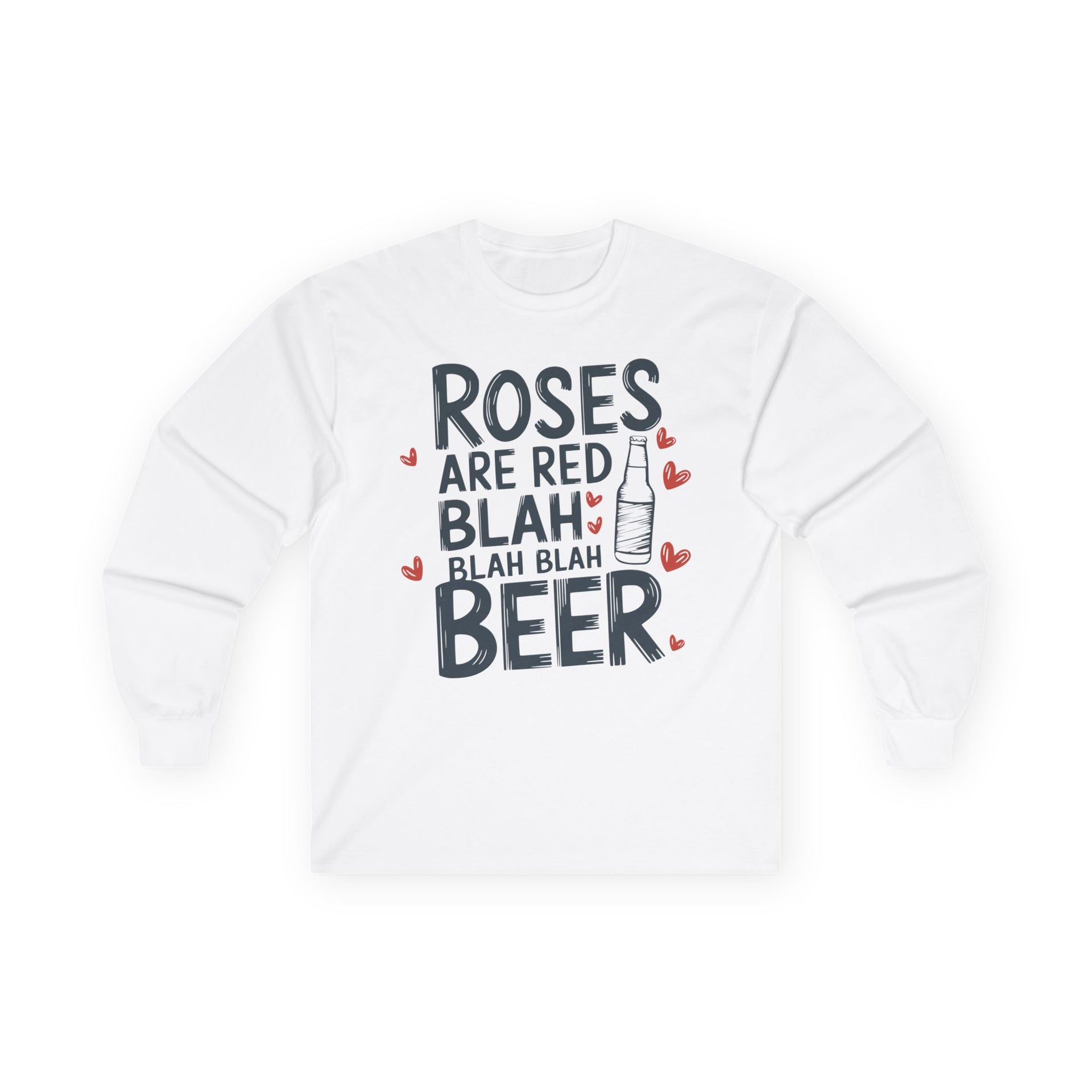 Roses Are Red, Blah Blah Blah, Beer Funny Valentine’s Long-Sleeve Shirt - Cute Beer Lover Tee, Perfect Gift for Him or Her