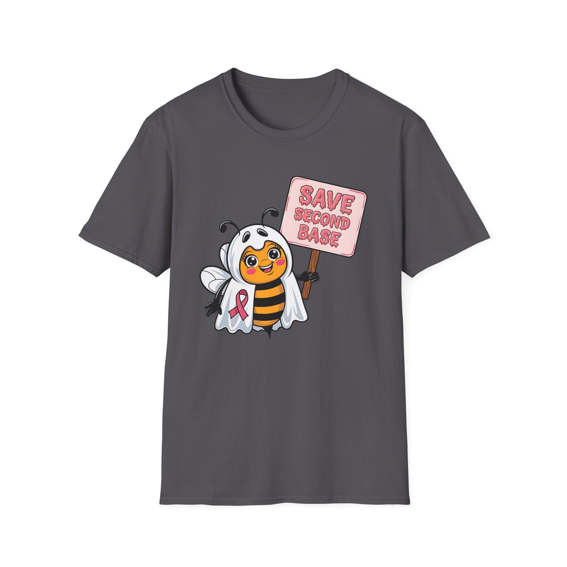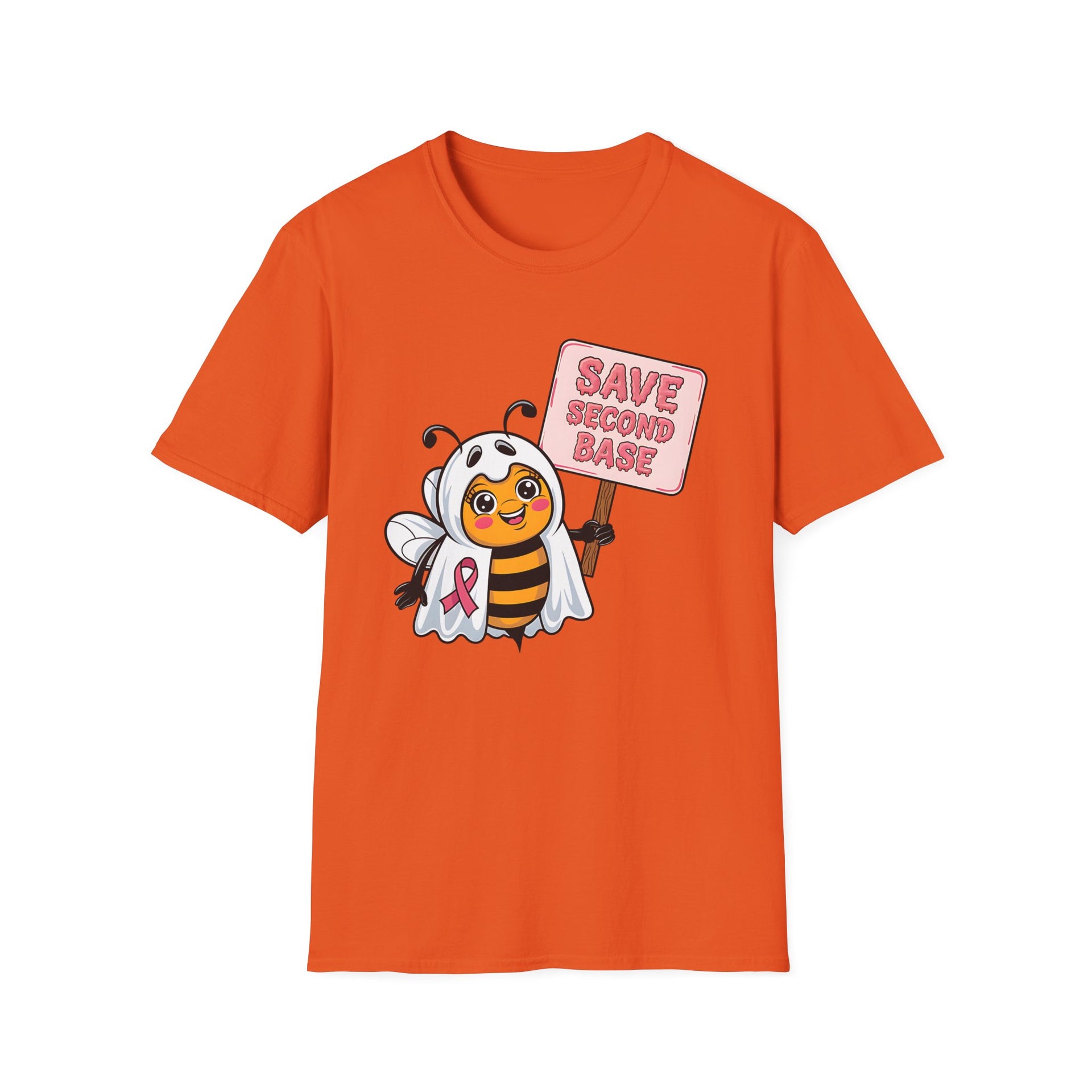 Save Second Base Halloween T-Shirt – Breast Cancer Awareness Ghost Bee Design
