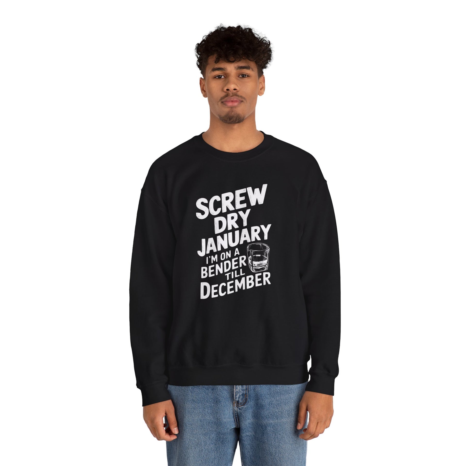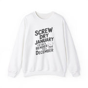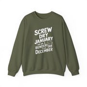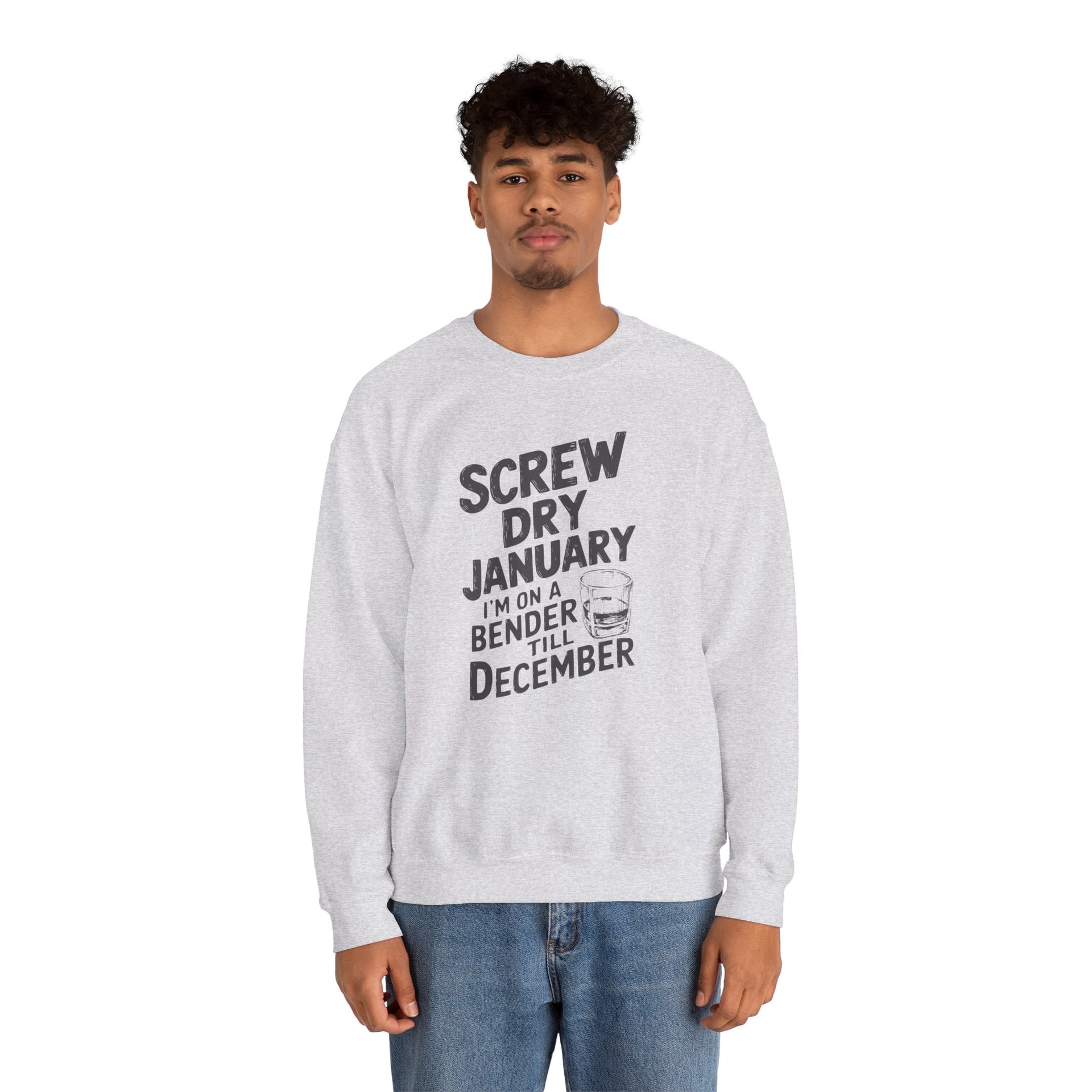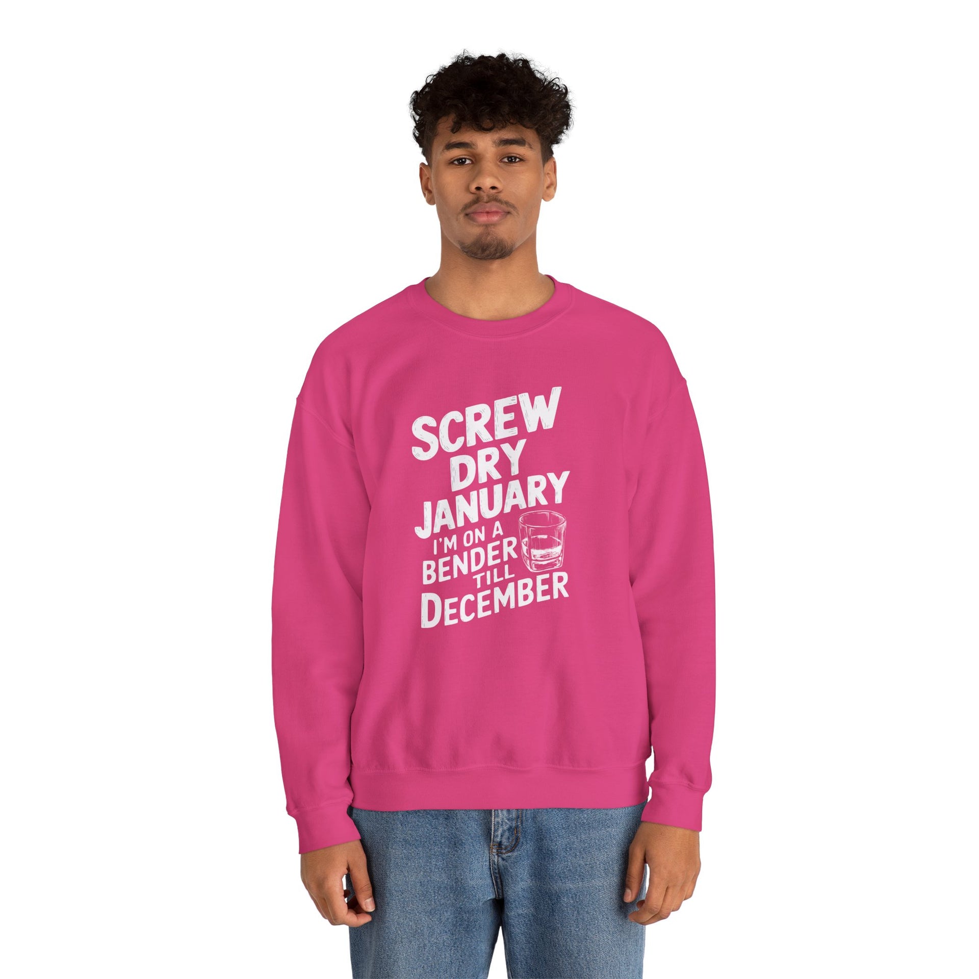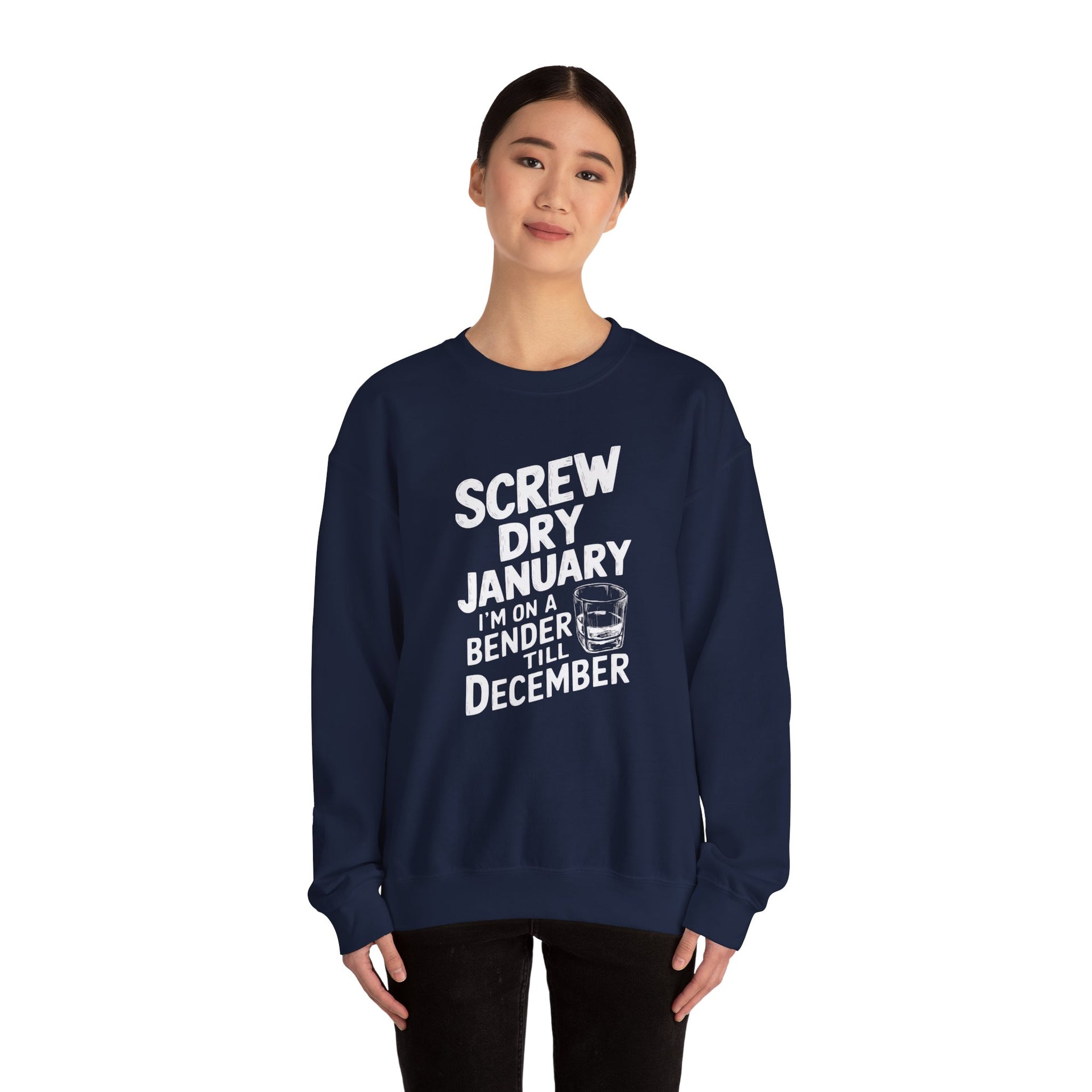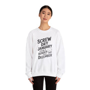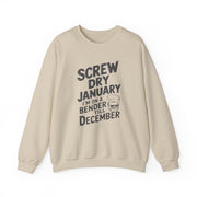 Screw Dry January, I’m on a Bender Till December Funny Sweatshirt - Drinking Humor Pullover, Wine and Beer Lover Apparel, Gift for Beverage Enthusiasts