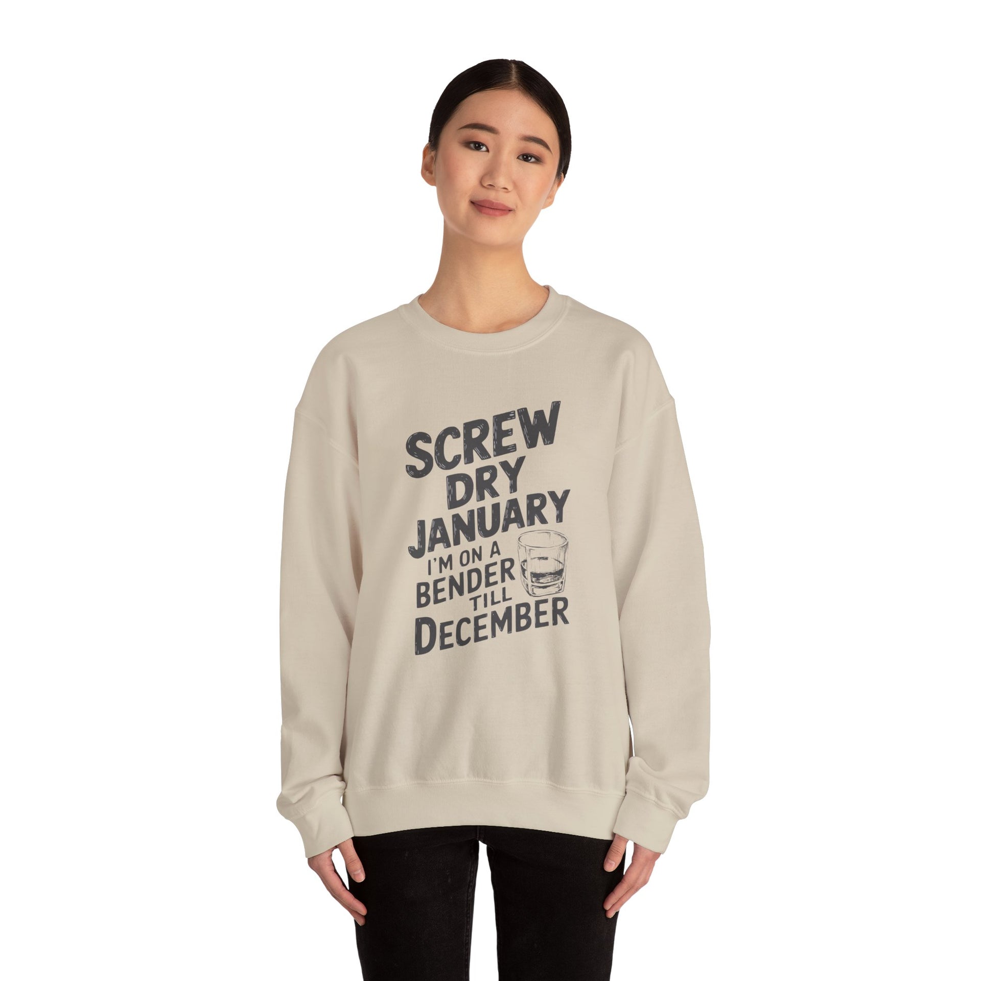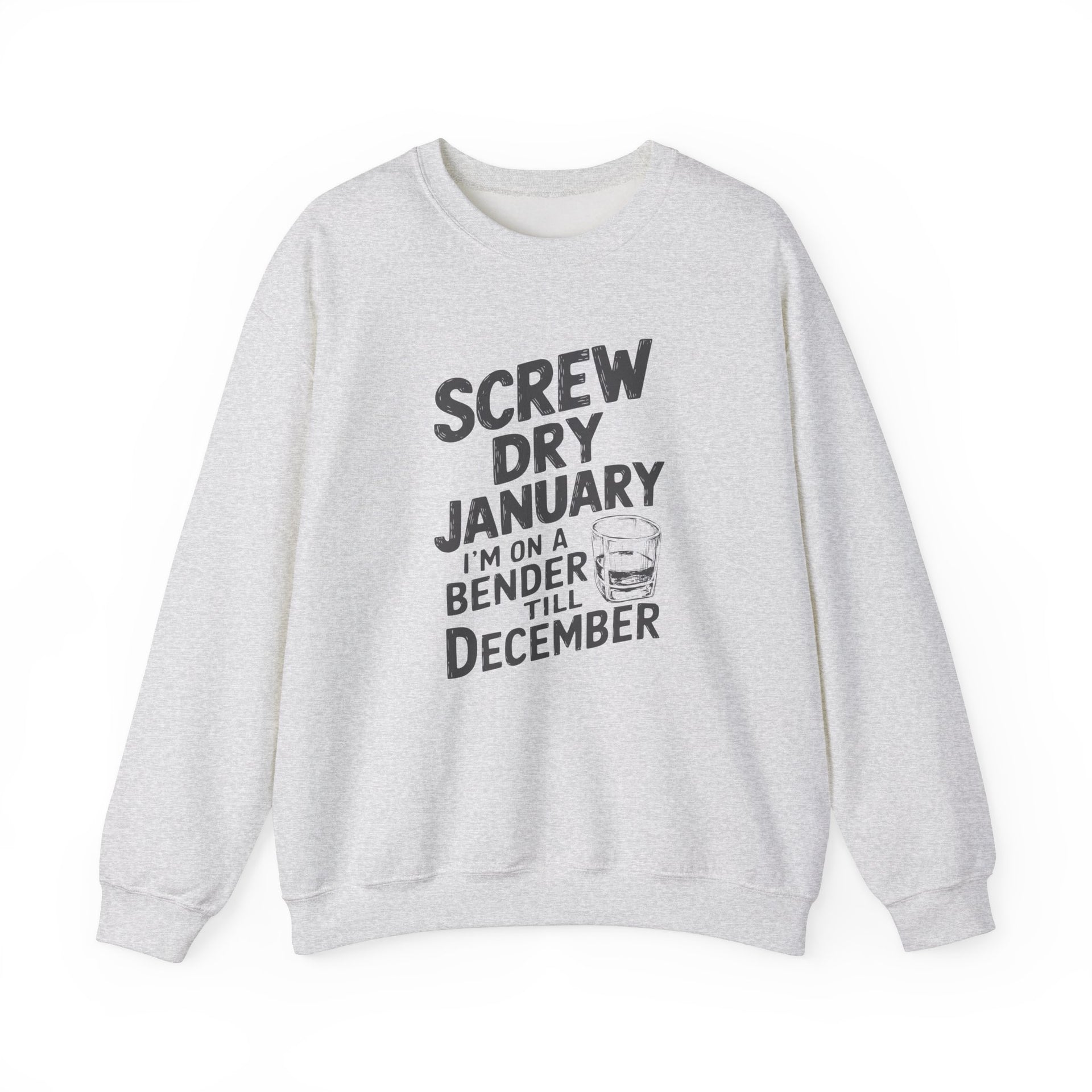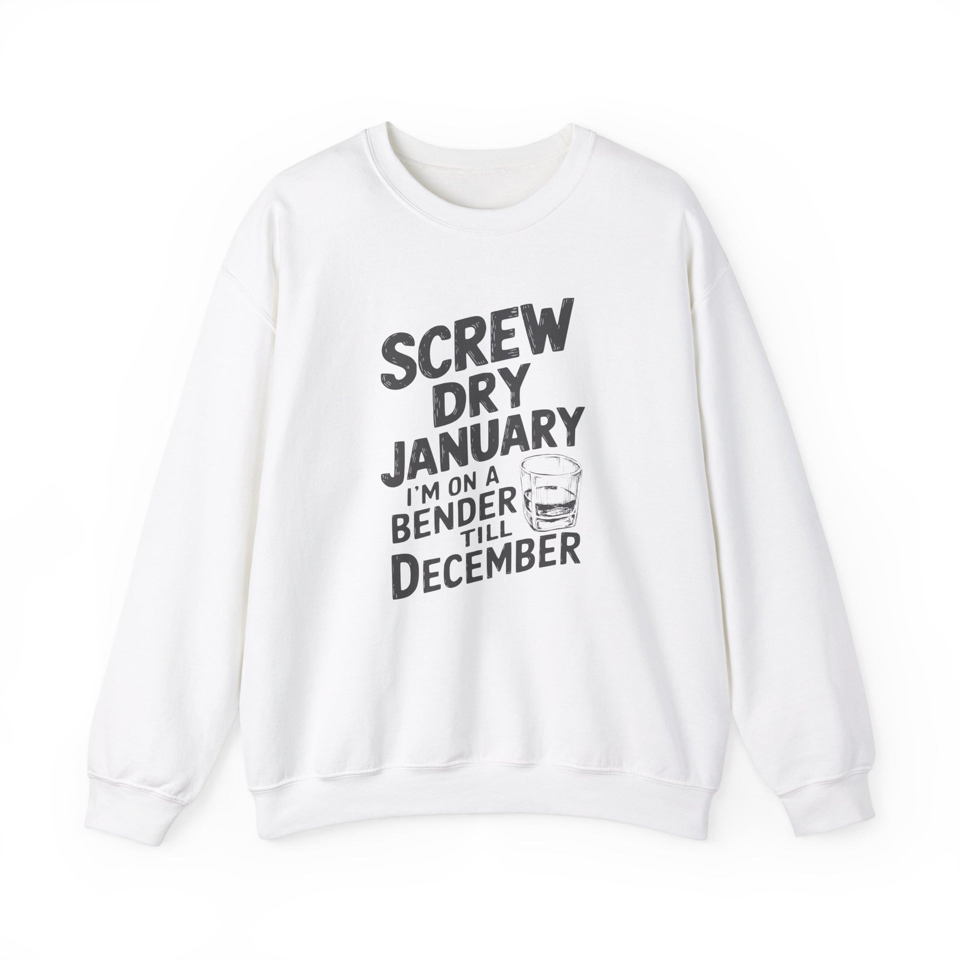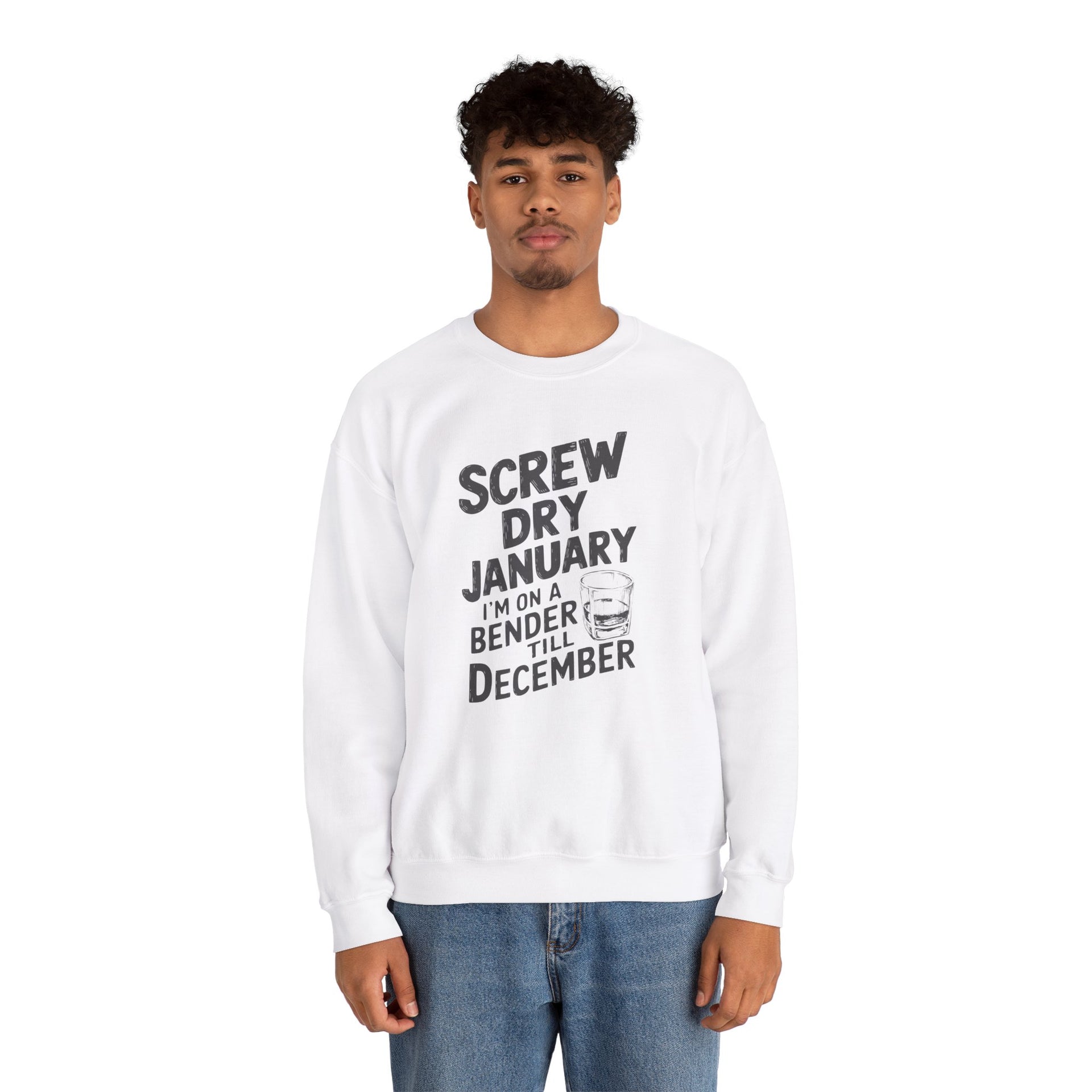 Screw Dry January, I’m on a Bender Till December Funny Sweatshirt - Drinking Humor Pullover, Wine and Beer Lover Apparel, Gift for Beverage Enthusiasts