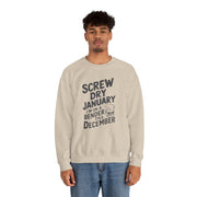 Stay cozy and share a laugh with the "Screw Dry January, I’m on a Bender Till December" sweatshirt! Perfect for wine, beer, and bourbon lovers, this pullover combines comfort, humor, and style for those who embrace fun and good drinks year-round.