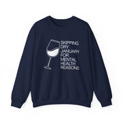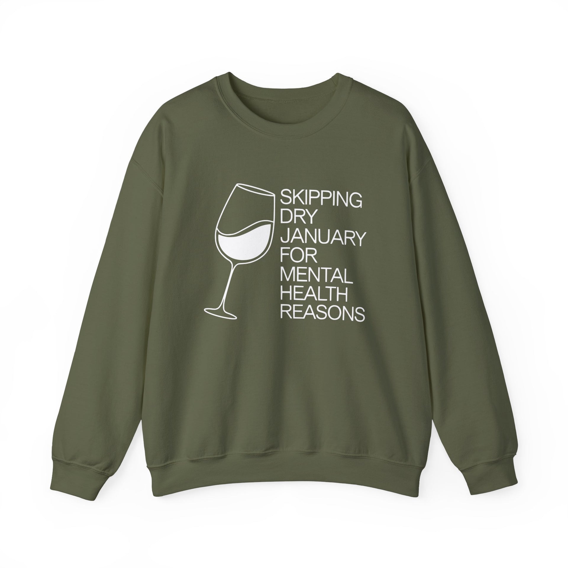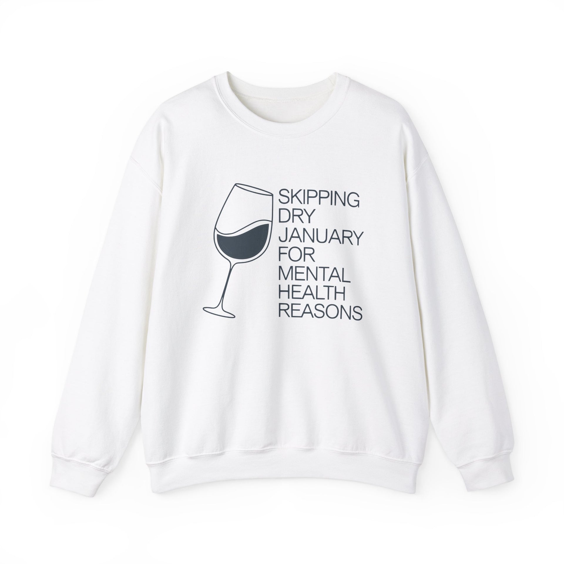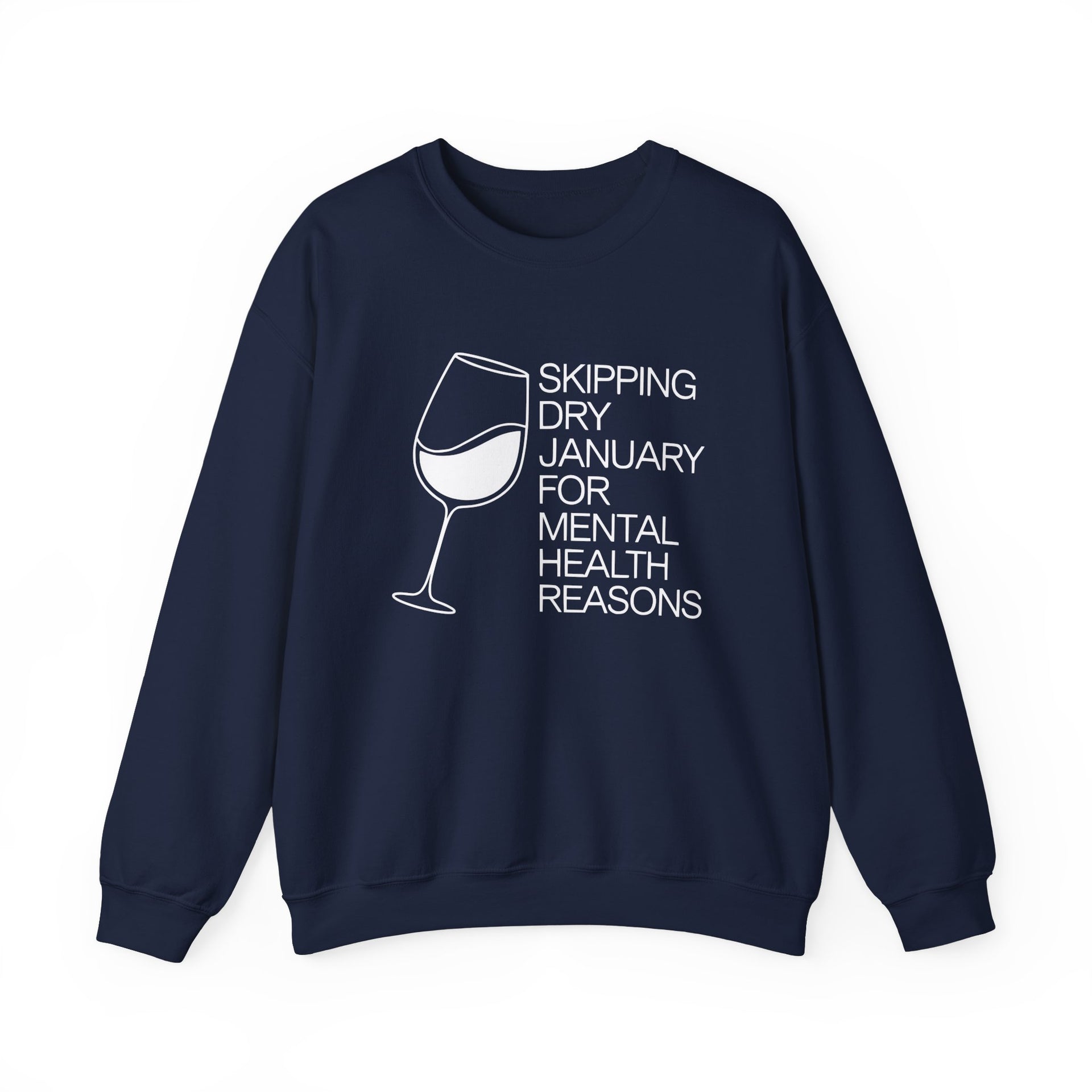 Skipping Dry January for Mental Health Reasons Funny Sweatshirt - Drinking Humor Pullover, Wine and Beer Lover Apparel, Humorous Gift for Beverage Enthusiasts