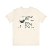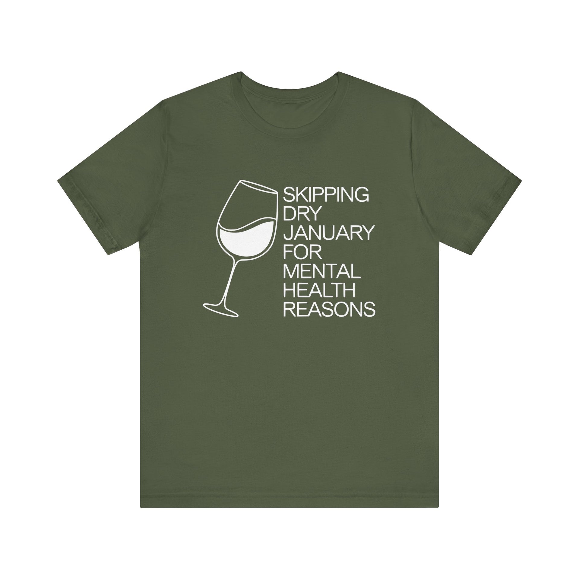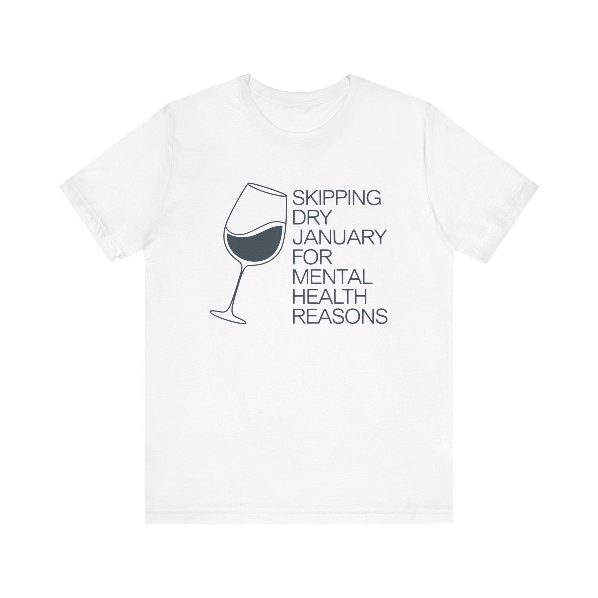 Skipping Dry January for Mental Health Reasons Funny T-Shirt - Drinking Humor Tee, Wine and Beer Lover Apparel, Humorous Gift for Beverage Fans