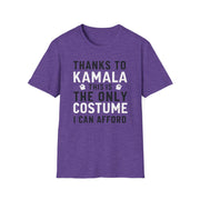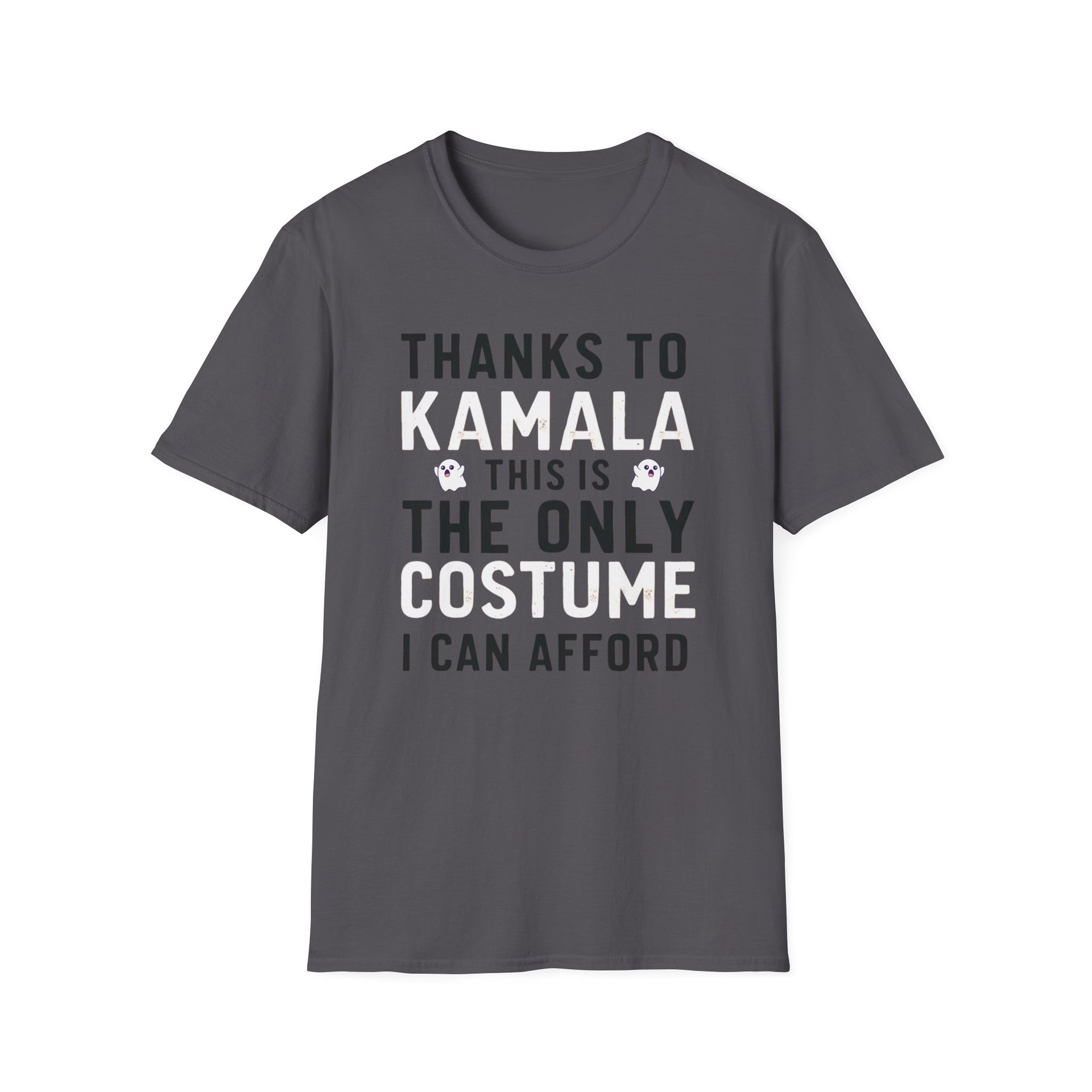Get into the Halloween spirit with a touch of humor and political satire! This bold and witty t-shirt features the phrase, "Thanks to Kamala, This Is the Only Costume I Can Afford." Perfect for those who want to make a statement this spooky season, this shirt combines clever commentary with a fun, laid-back vibe. Made from high-quality, soft cotton, it's comfortable enough to wear all day or night, whether you're trick-or-treating, attending a Halloween party, or just enjoying the fall festivities. Available in a variety of colors, this shirt is sure to be a hit with anyone who enjoys a good laugh and isn't afraid to stand out from the crowd. Get yours now and let your costume do the talking
