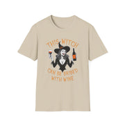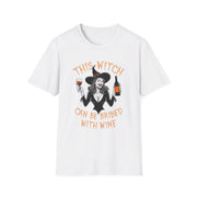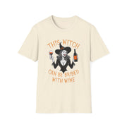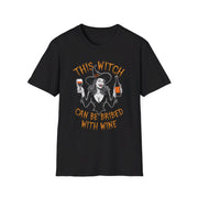 Add a little magic to your Halloween wardrobe with our "This Witch Can Be Bribed with Wine" t-shirt! Perfect for wine lovers who embrace their witchy side, this fun and festive design is sure to be a hit at Halloween parties, gatherings, or any spooky celebration. The playful phrase adds a touch of humor to your outfit, letting everyone know the way to your heart—or your spell book. Whether you’re sipping on your favorite vino or casting spells, this tee is a must-have for a wickedly good time.
