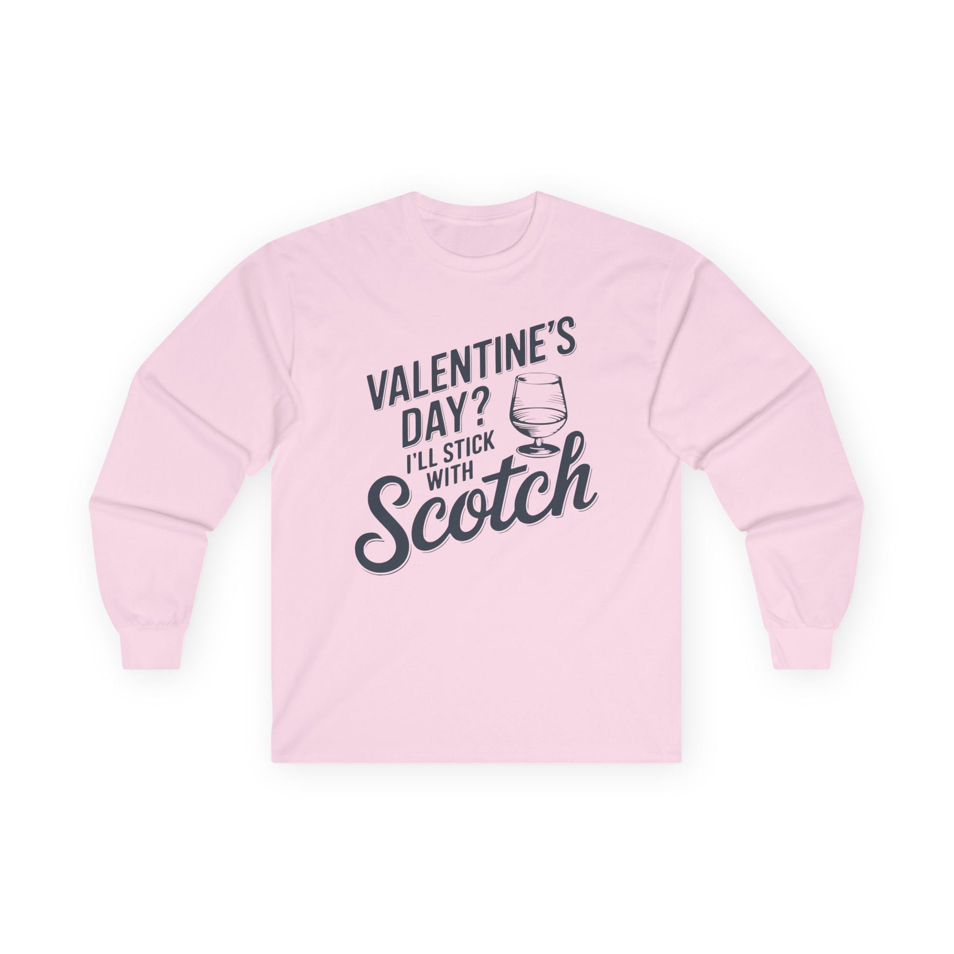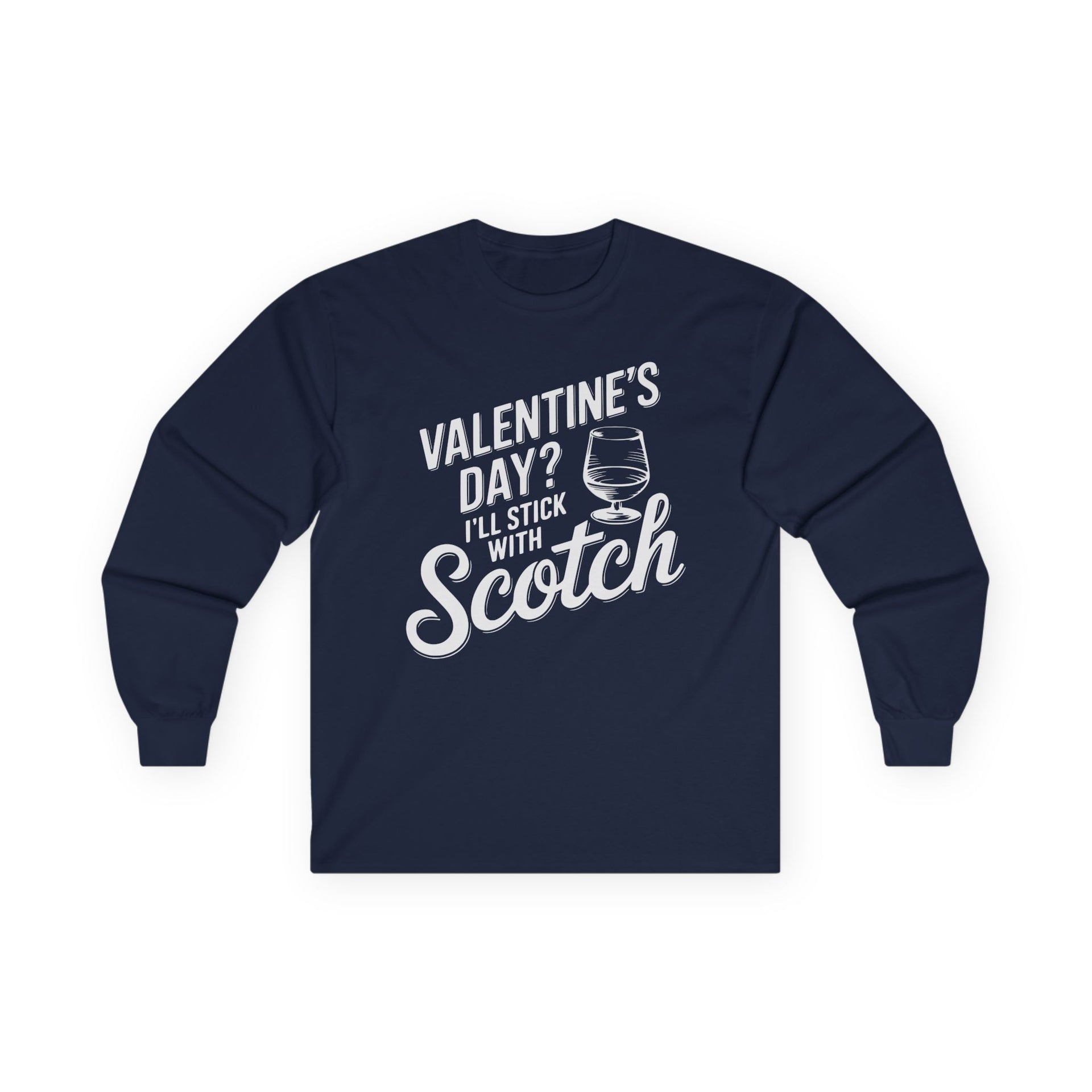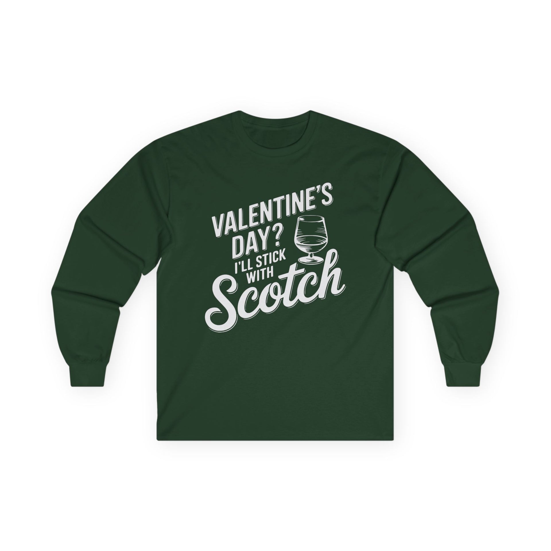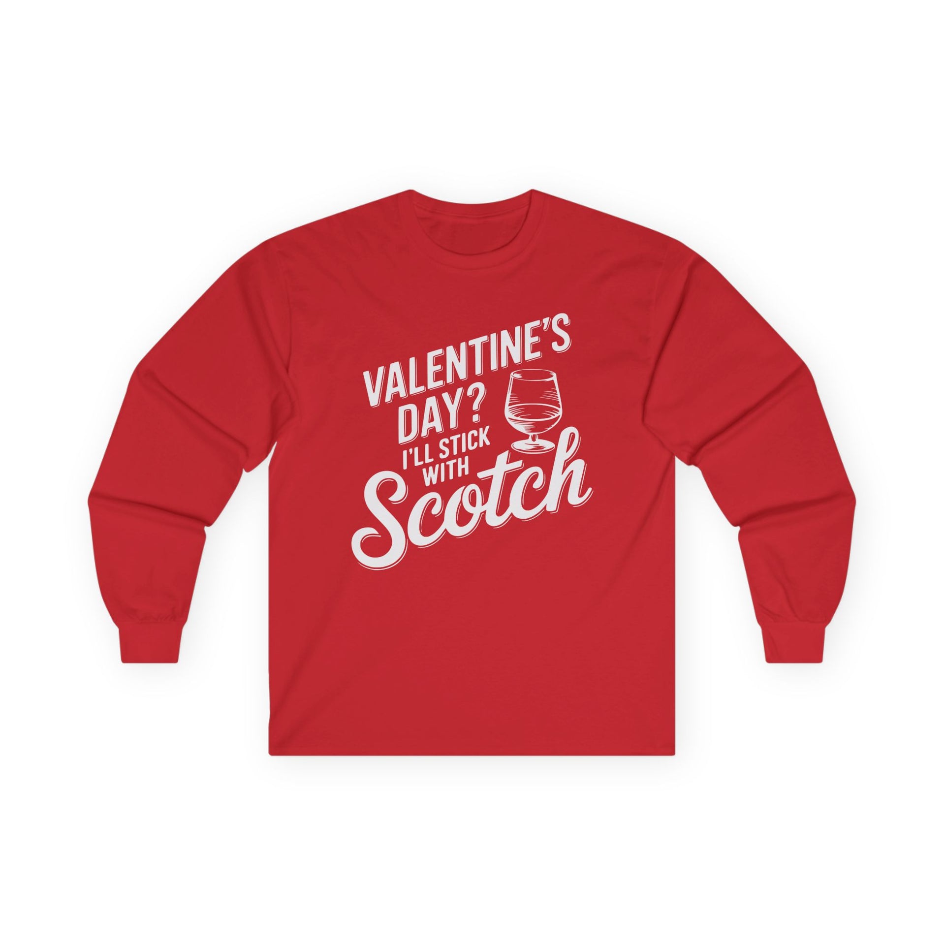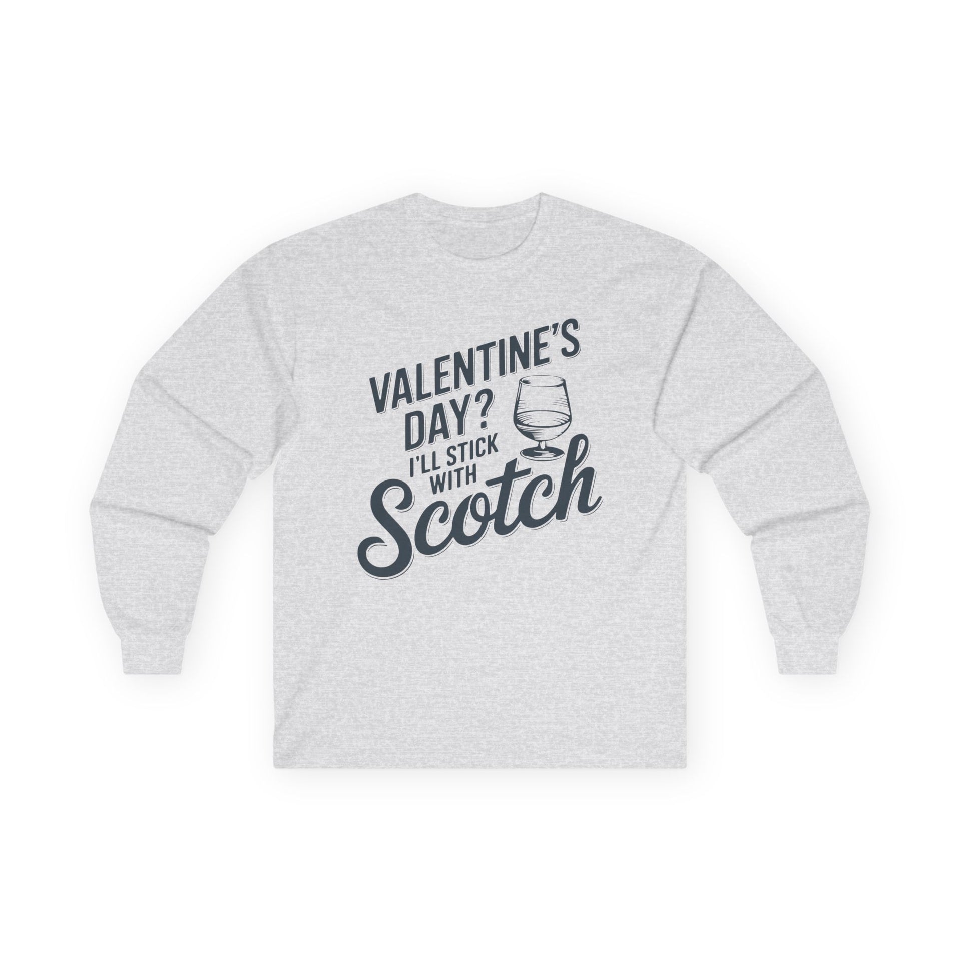 Valentine’s Day? I’ll Stick with Scotch" Funny Long-Sleeve Shirt - Perfect Gift for Whiskey Lovers
