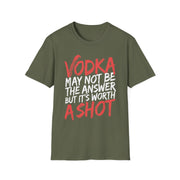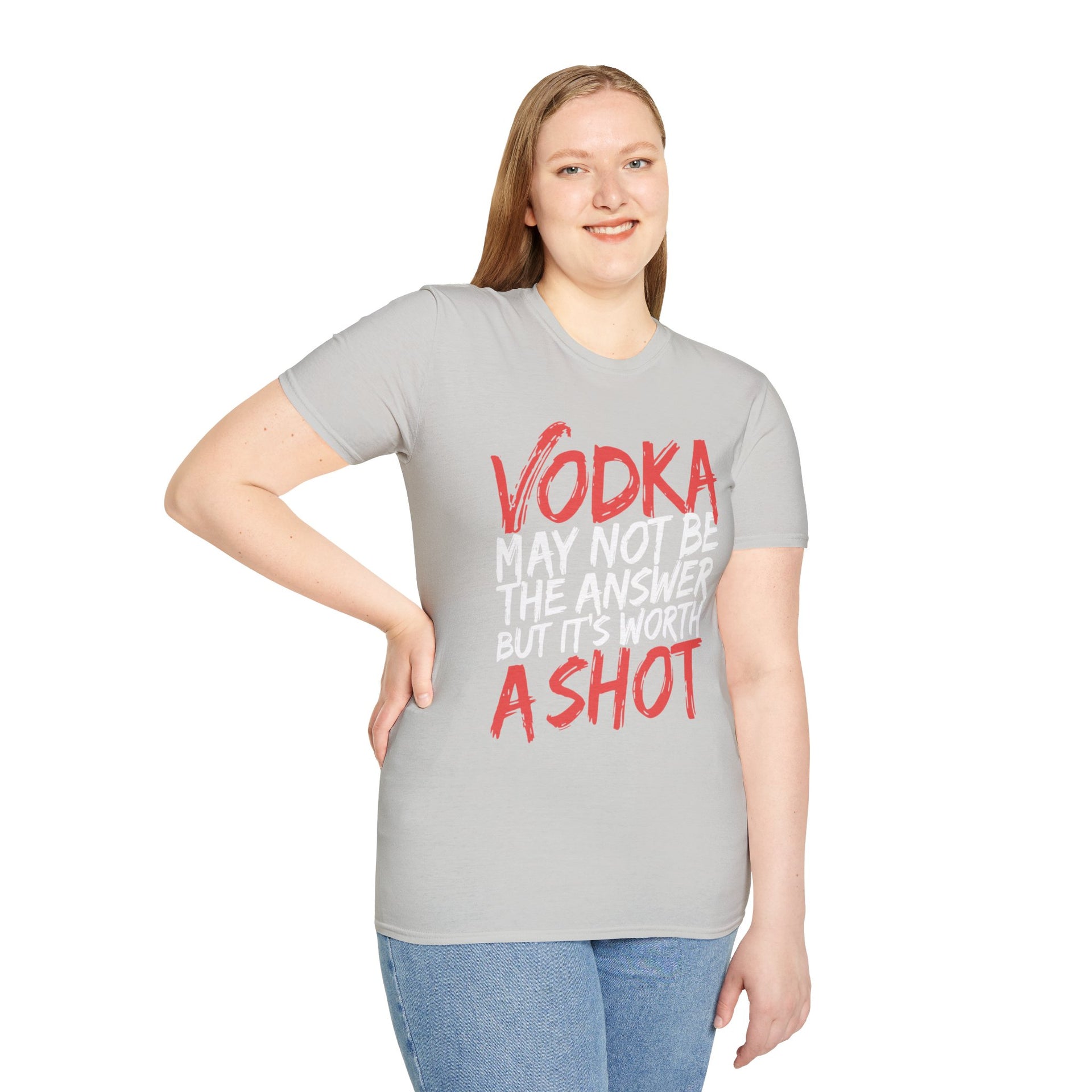 Vodka May Not Be the Answer, But It's Worth a Shot T-Shirt – Funny Drinking Slogan Tee
