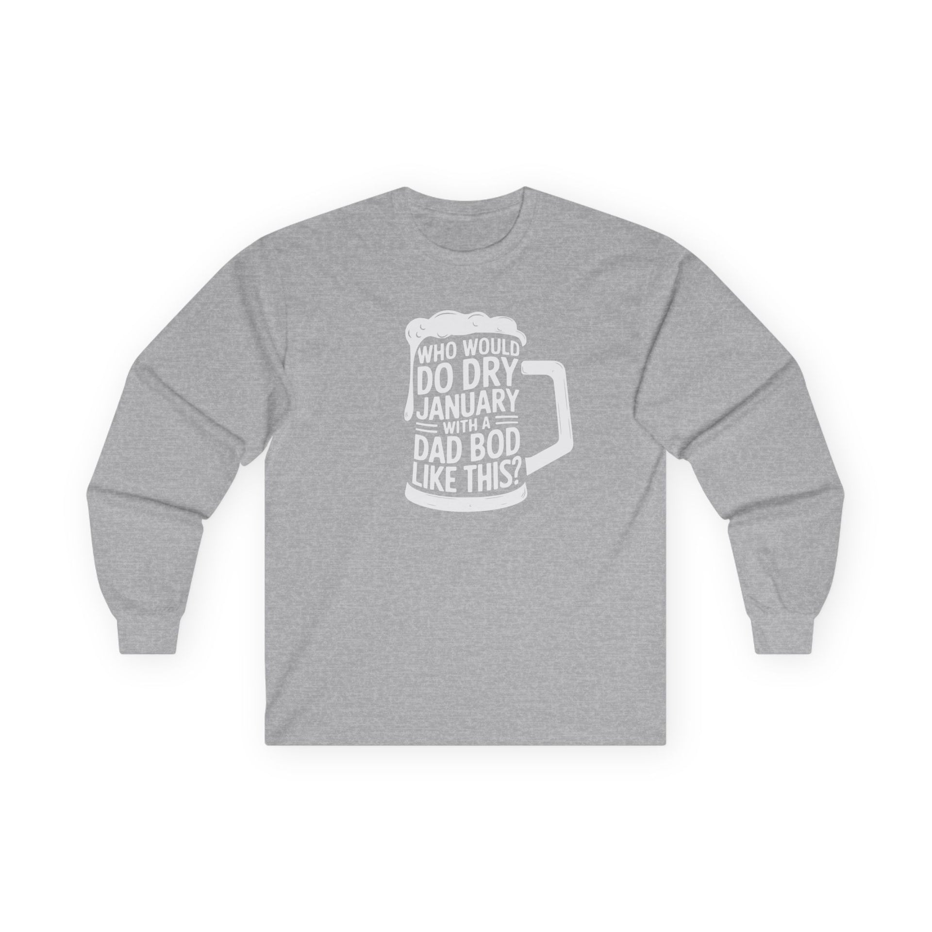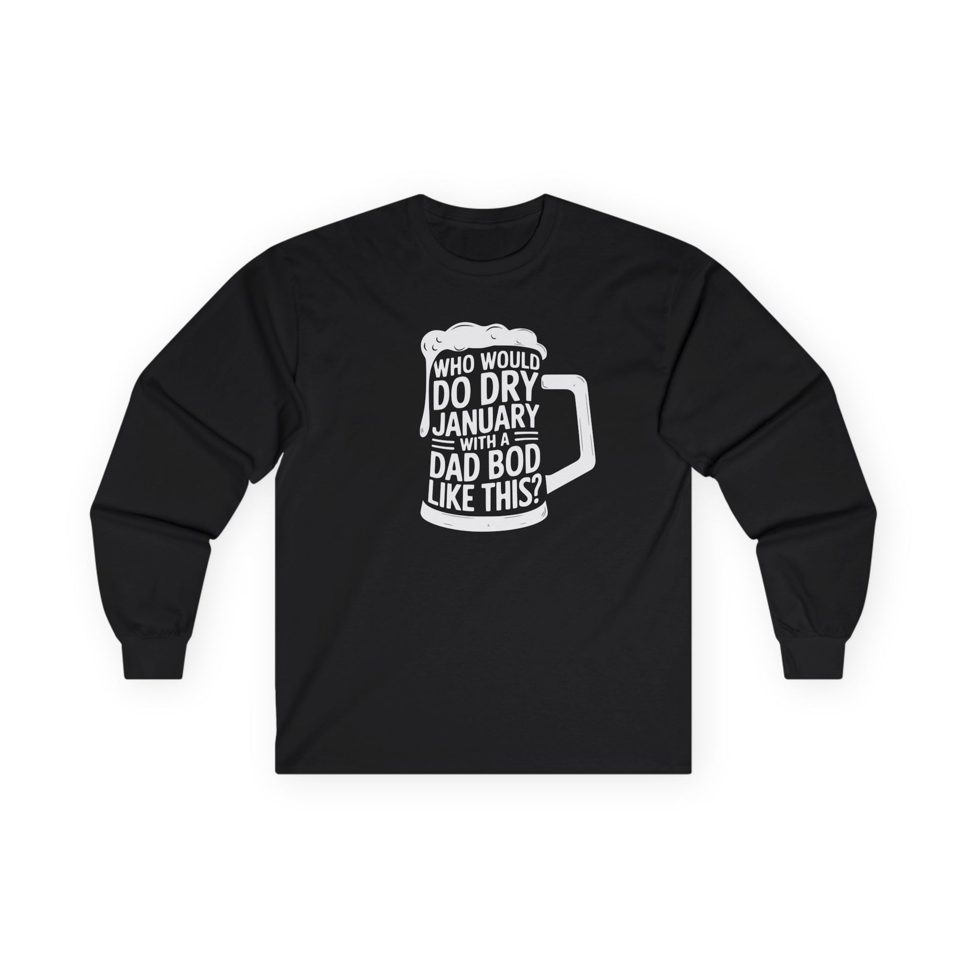 Who Would Do Dry January With a Dad Bod Like This? Funny Long-Sleeve Shirt - Drinking Humor Tee, Dad Bod Apparel, Gift for Wine and Beer Lovers