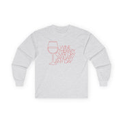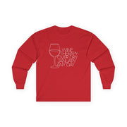 Indulge in your love for wine with our 'Wine Therapy Over Dry January Any Day' unisex long sleeve tee. This humorous and sarcastic long sleeve tee is perfect for wine enthusiasts who prefer a glass of their favorite vintage over abstaining. Crafted from high-quality materials, it offers both comfort and style for any casual occasion. Whether you're treating yourself or searching for a unique gift for a fellow wine lover, this shirt is sure to be a hit. Available in various sizes and colors to suit your personal taste.