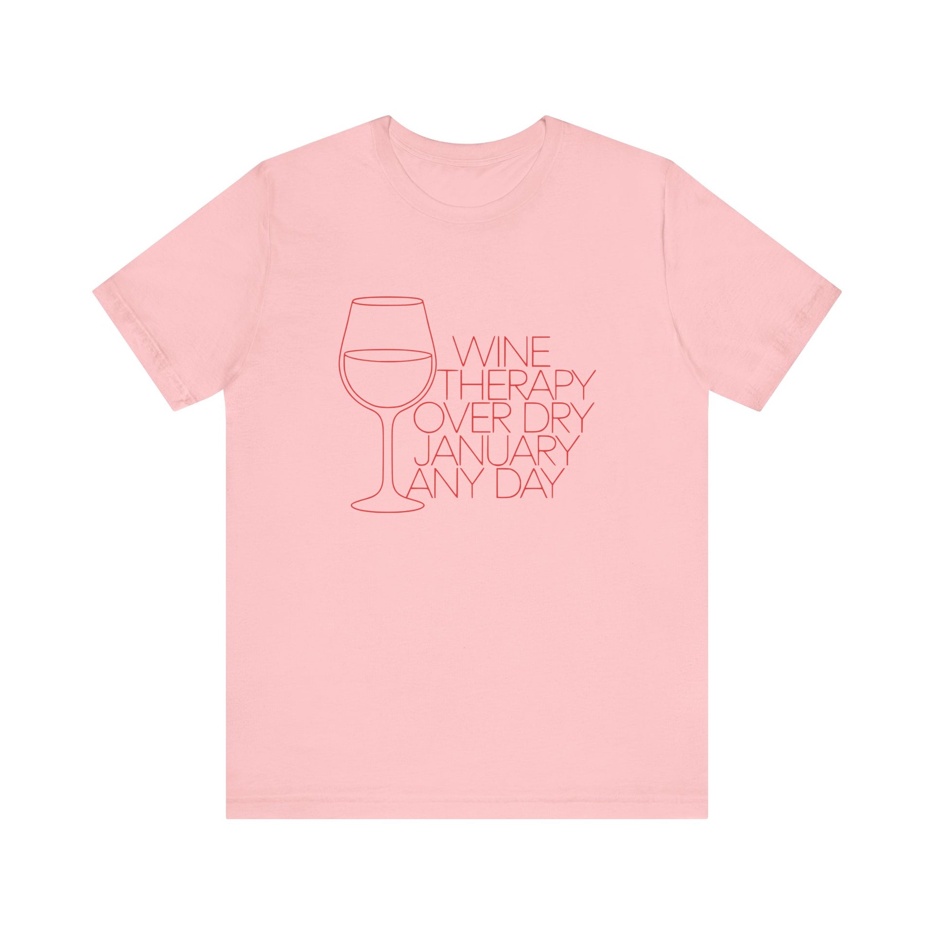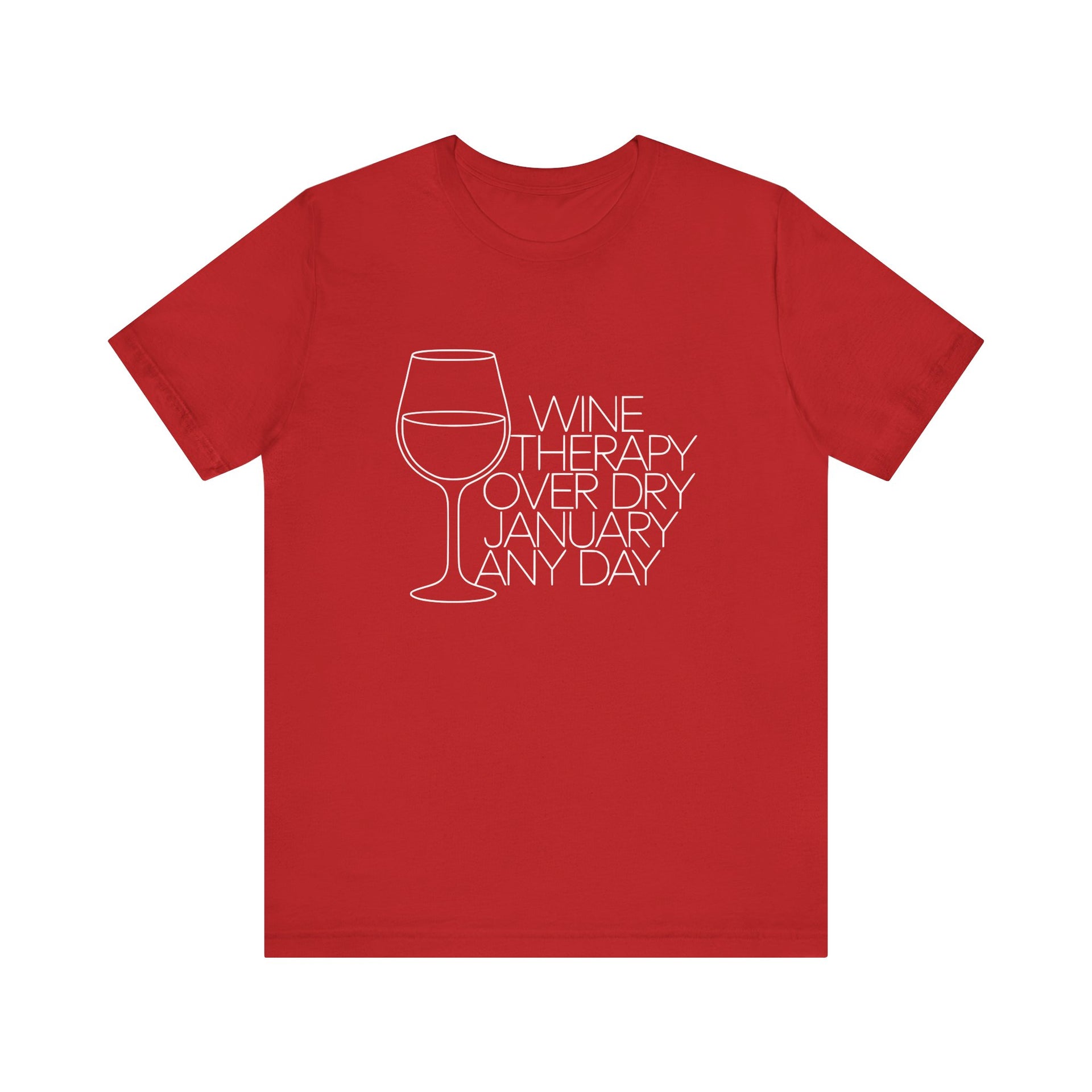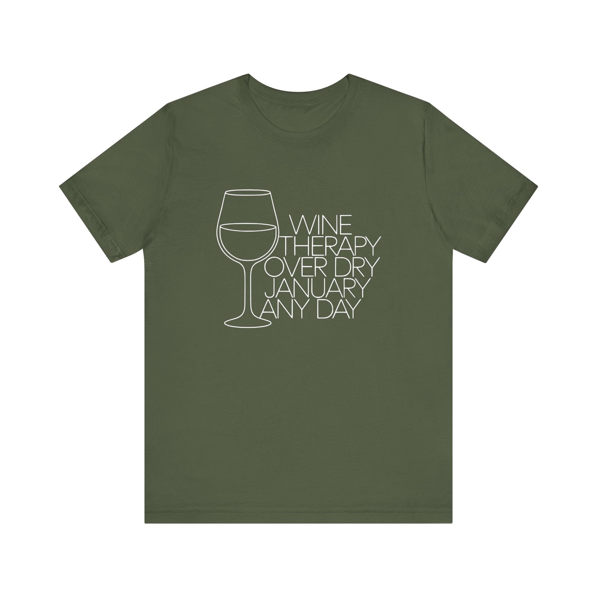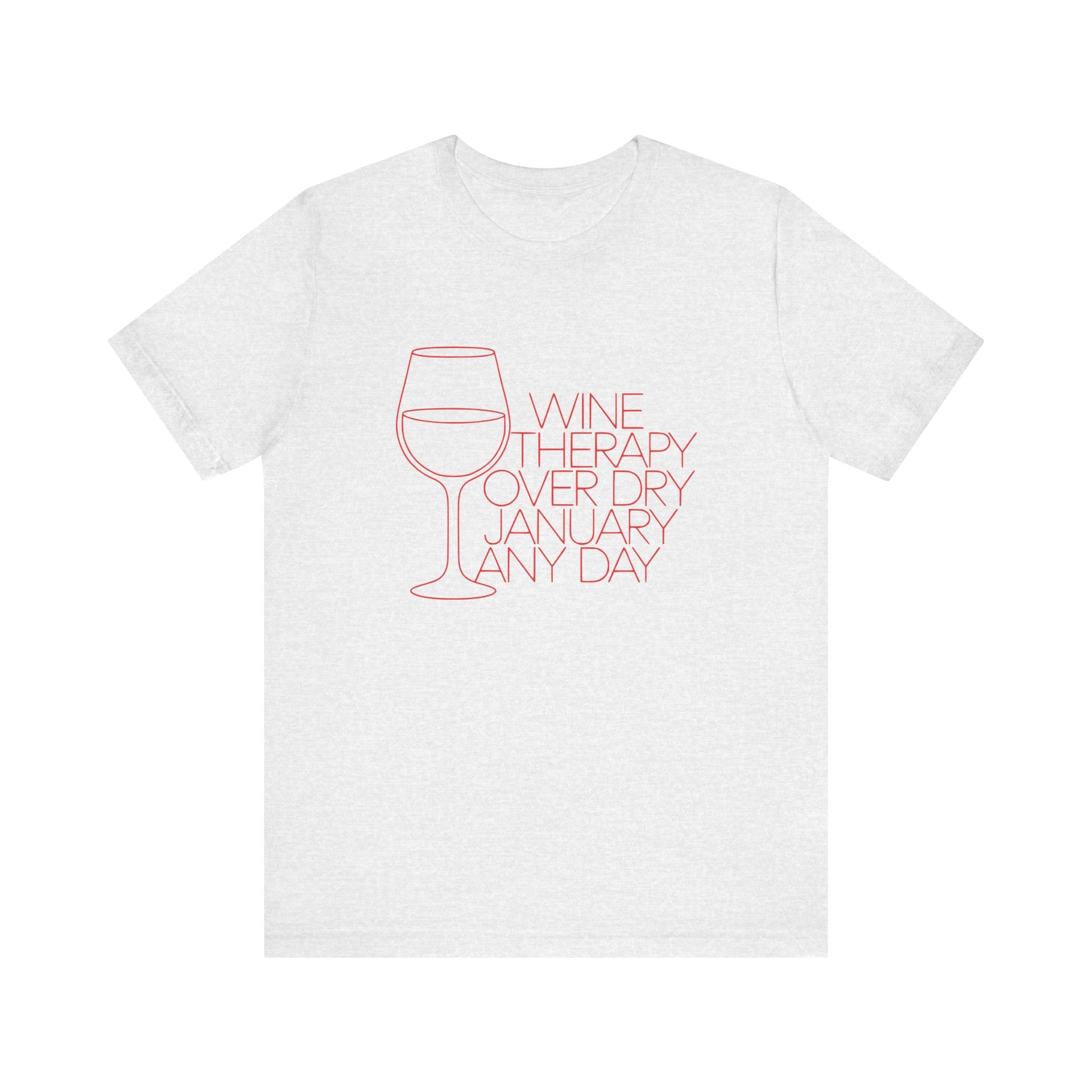 Wine Therapy Over Dry January Any Day T-Shirt | Funny Anti-Dry January Tee | Humorous Drinking Shirt | Sarcastic Alcohol Lover Gift | Unisex Graphic Tee