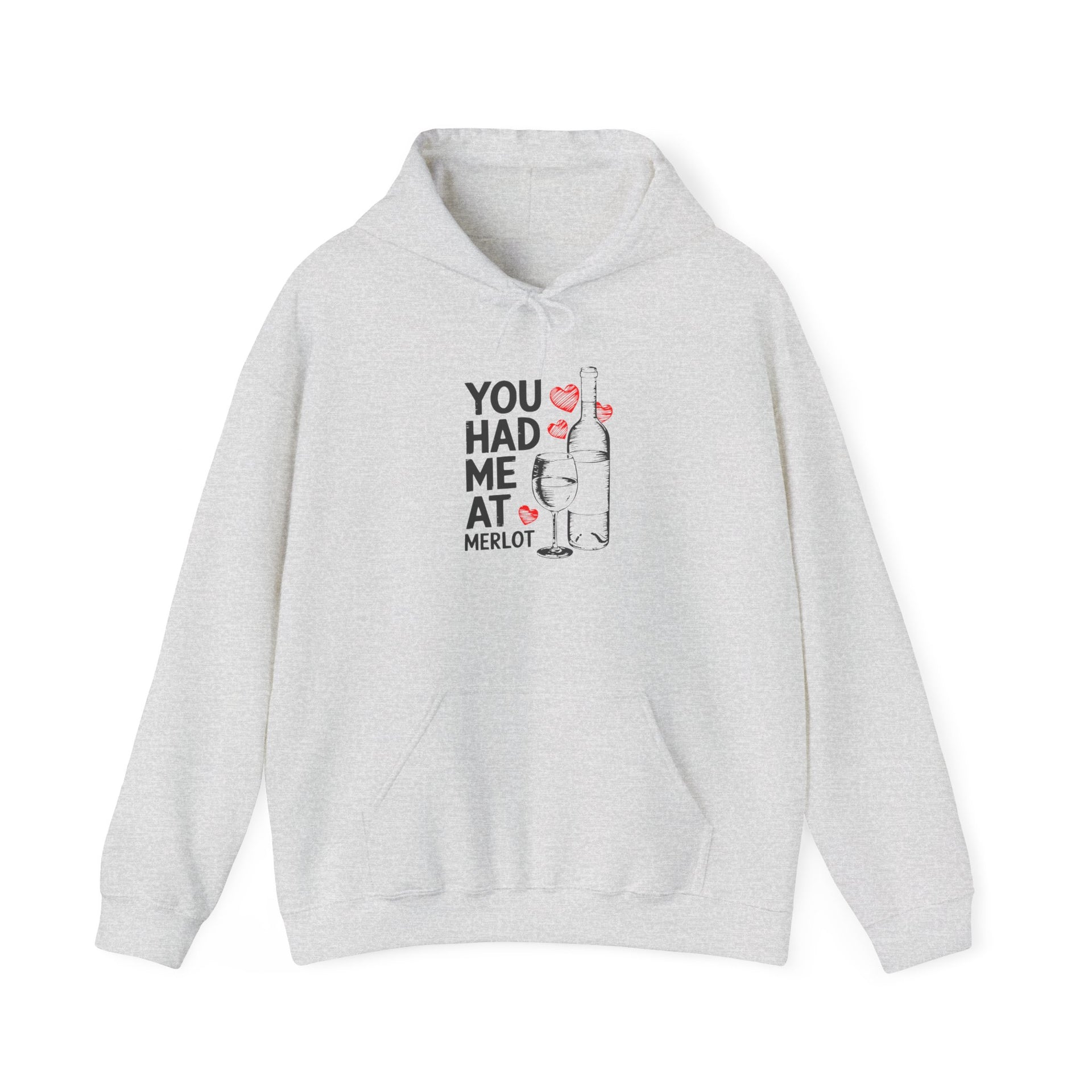 You Had Me at Merlot Funny Valentine’s Hoodie - Romantic Wine Lover Pullover, Gift for Him or Her