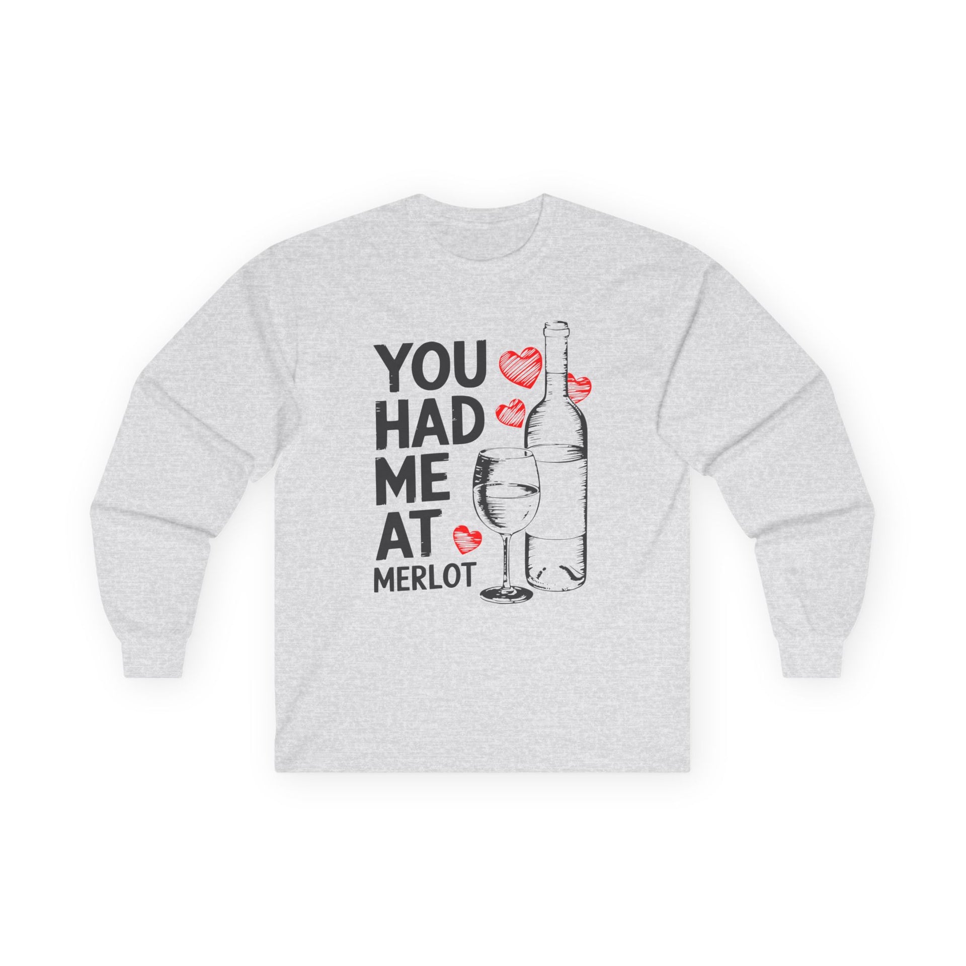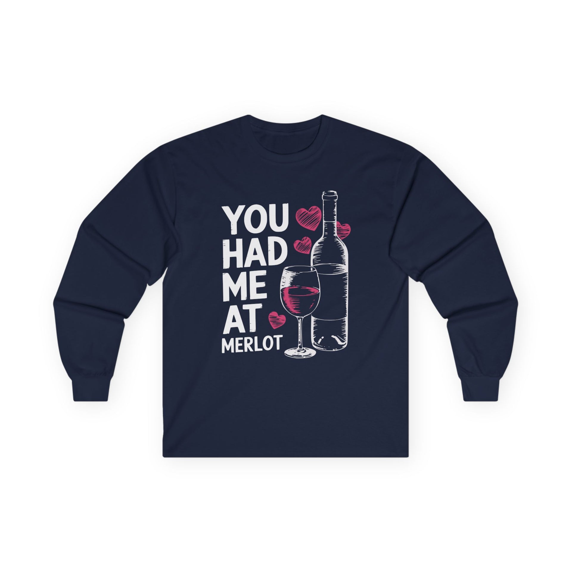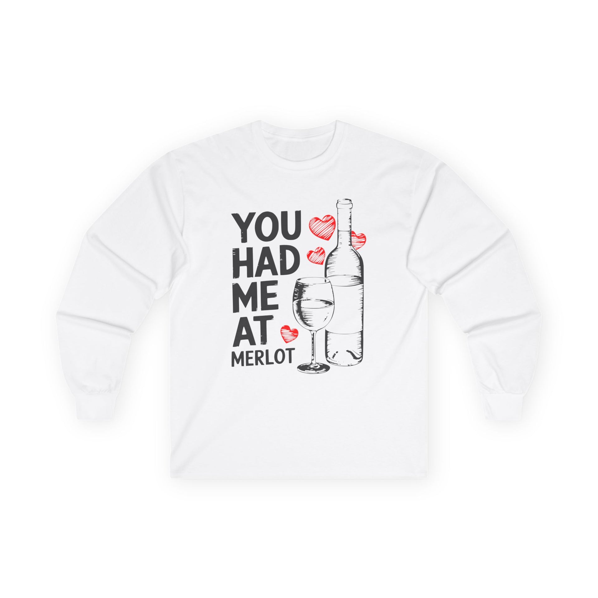 You Had Me at Merlot Funny Valentine’s Long-Sleeve Shirt - Romantic Wine Lover Tee, Gift for Him or Her