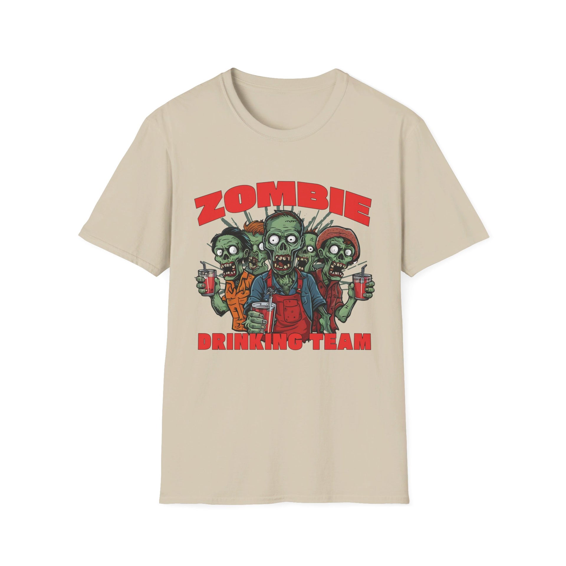 Join the undead in style with our "Zombie Drinking Team" t-shirt! Whether you're a fan of zombie lore or just love a good time, this shirt is the perfect blend of humor and horror. Featuring bold, eye-catching text, this tee is ideal for Halloween parties, pub crawls, or any event where the drinks are flowing. Made from soft, durable cotton, it's as comfortable as it is fun, making it a go-to choice for any occasion where you want to show off your zombie spirit.