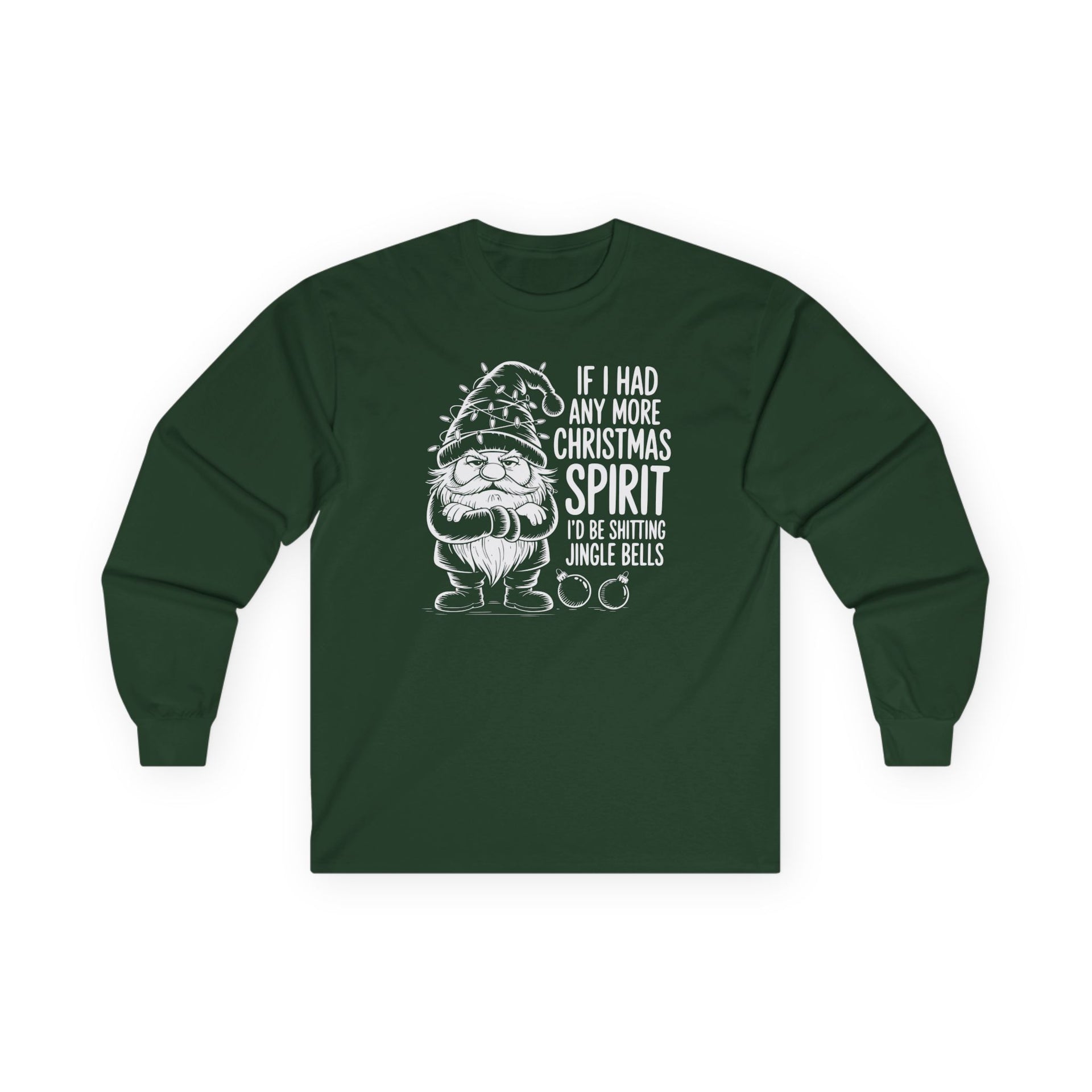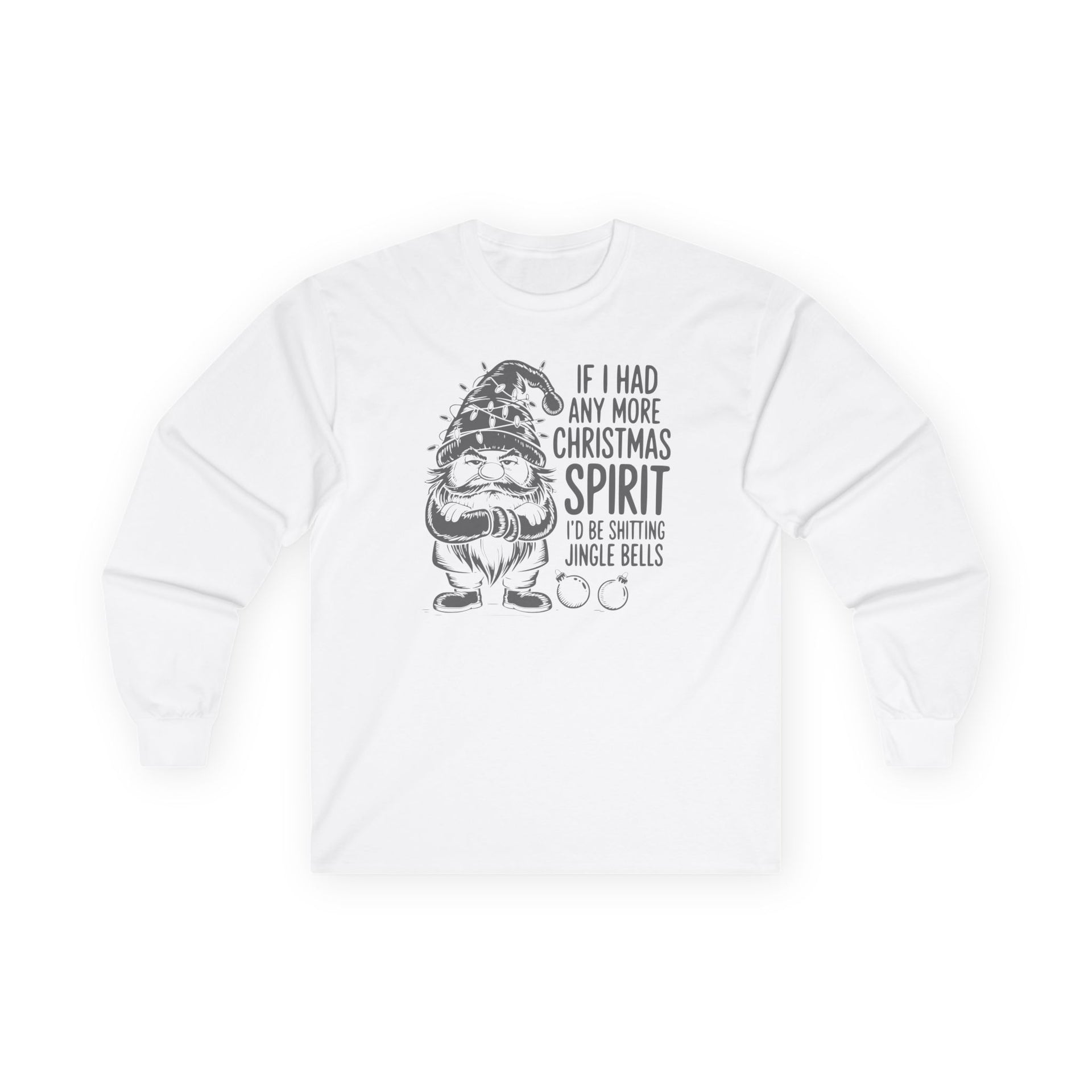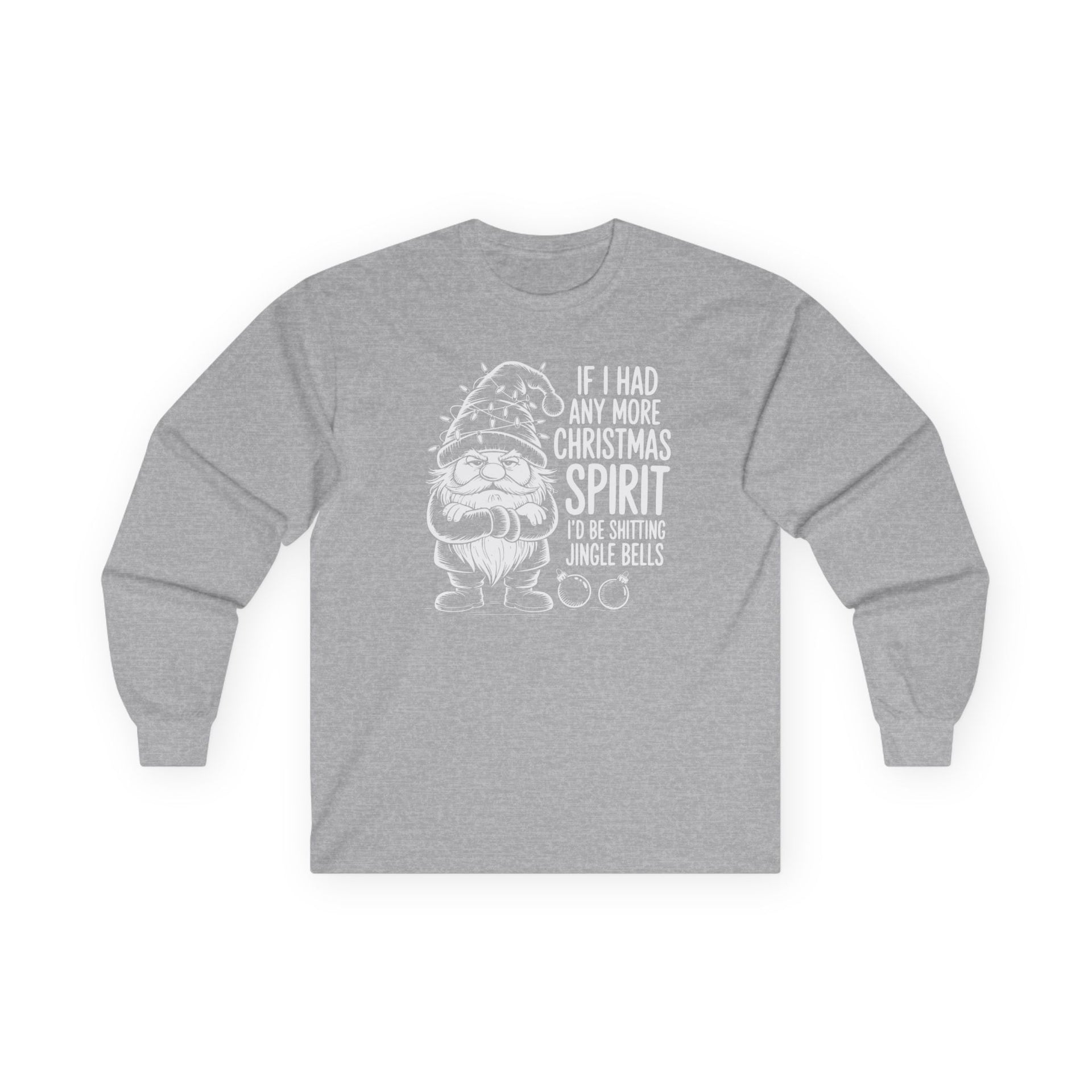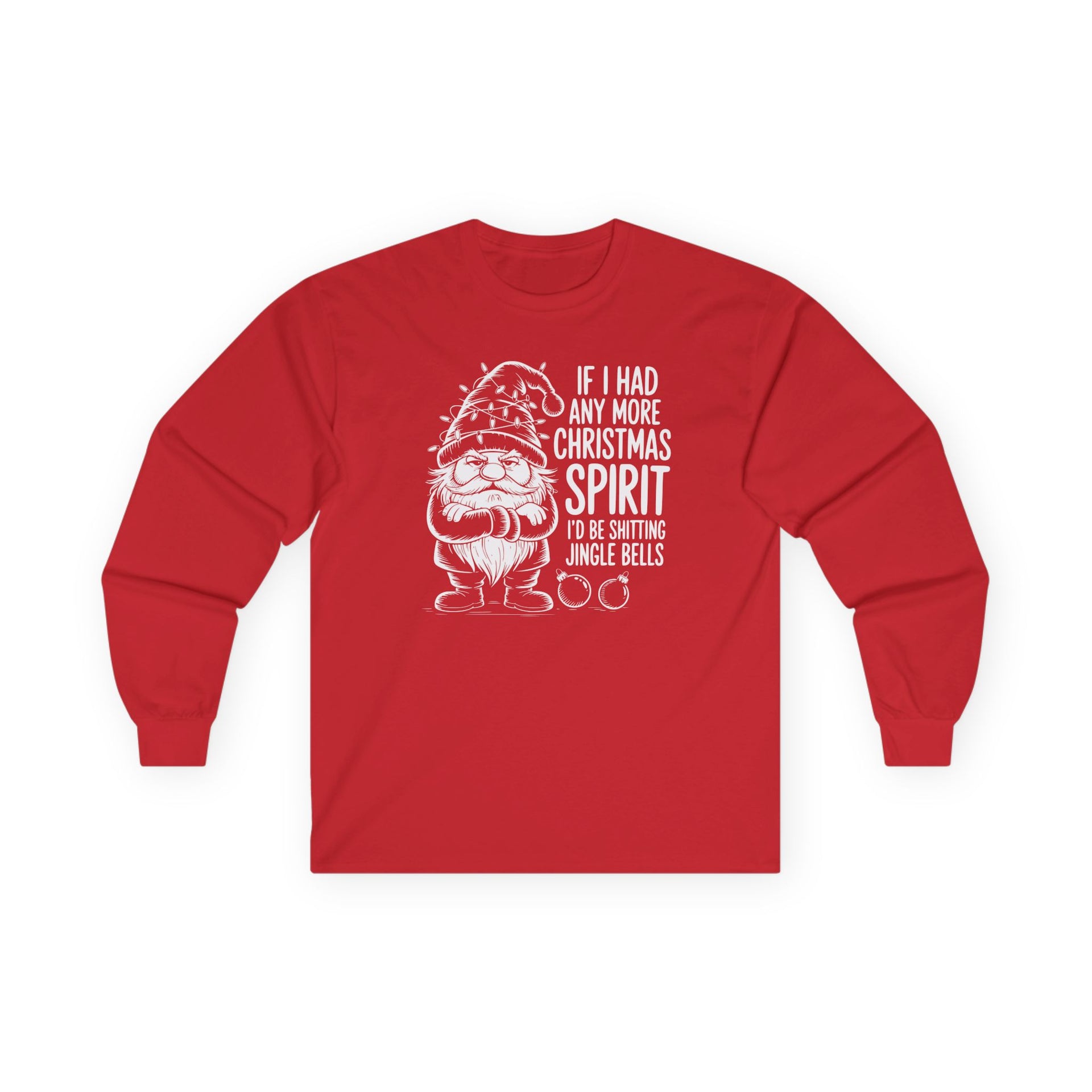 Christmas Gnome Long Sleeve Tee — "If I Had Any More Christmas Spirit I'd Be Jingle Bells" Holiday Shirt